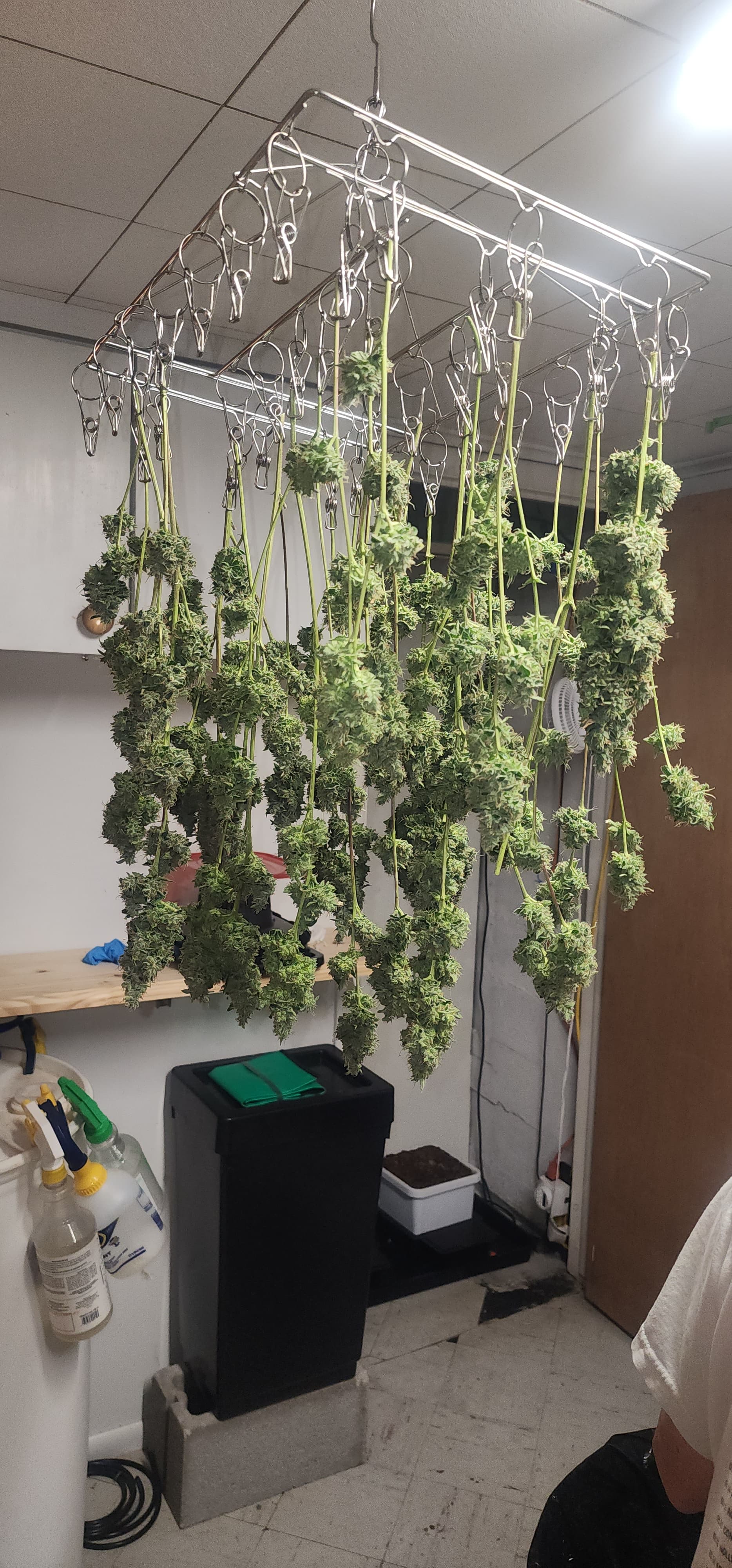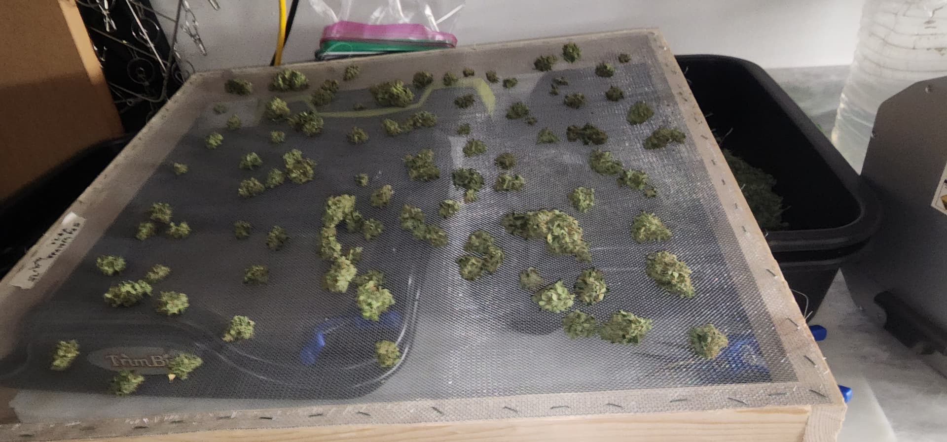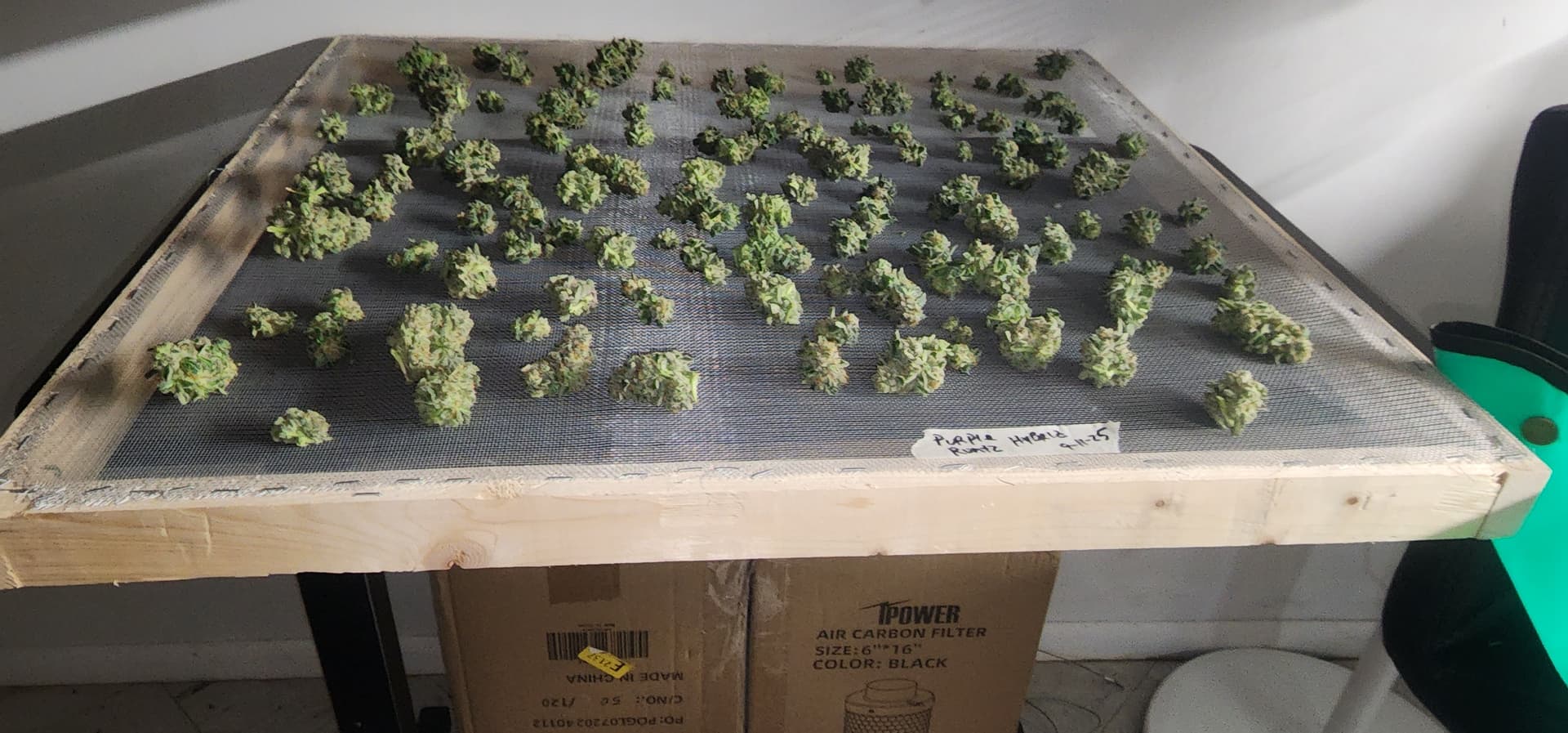 the buds on the drying screens are from a bowl trimmer. I like to hand trim all the big buds and then run the smaller buds and larfy stuff in the bowl trimmer. The bowl trimmer Make a fast trimming job of small buds.I just spent the last 2 hours cleaning up the hydro system. And tent and i plan on running the purple rain strain in it? But well see what happens. Its reall good so i think im doing that one. Here is a rootball Off one of them.
