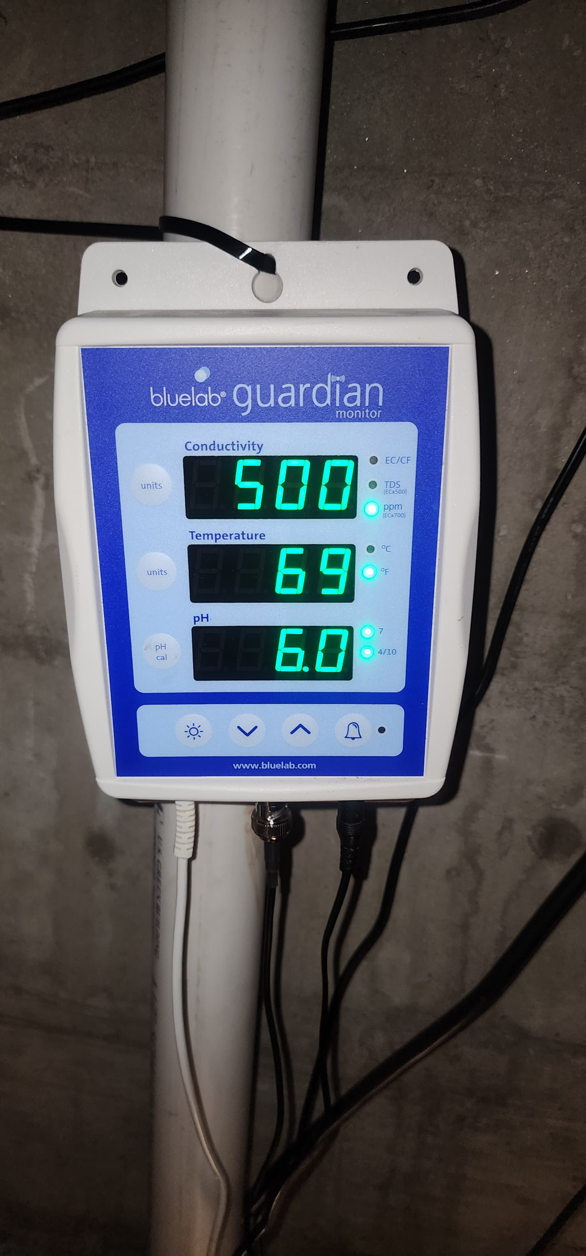 So a longgg time ago a member here traded me a Bluelabs guardian meter for like a bunch of strains. It has a bad PH meter. I so i finally got around to buying a new probe and setting up the meter in my hydro grow. So here it is all set up.
