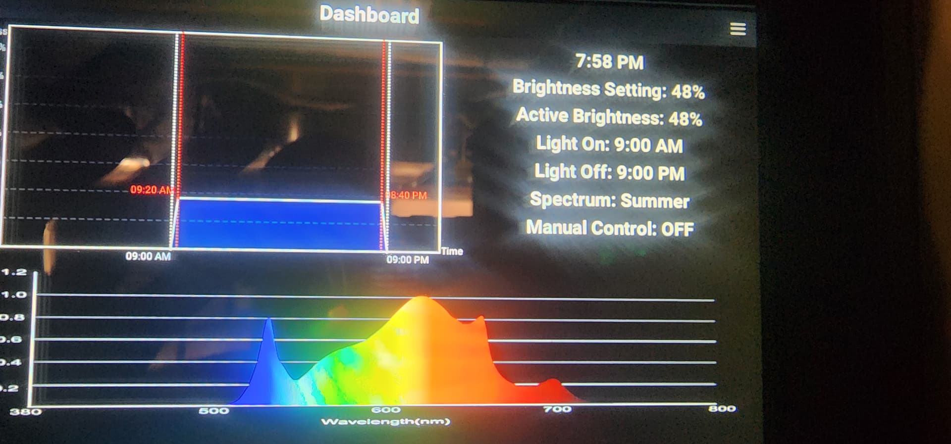 Ok i changed the light mode to summer. I increased the lights power to 48% and i set it flower/flipped also. There starting to grow to fast and need to be flipped because i forsee at least a 50-60% strech ratio to what we have now. Usually i would say 40% but these plants look growing pretty aggressively.