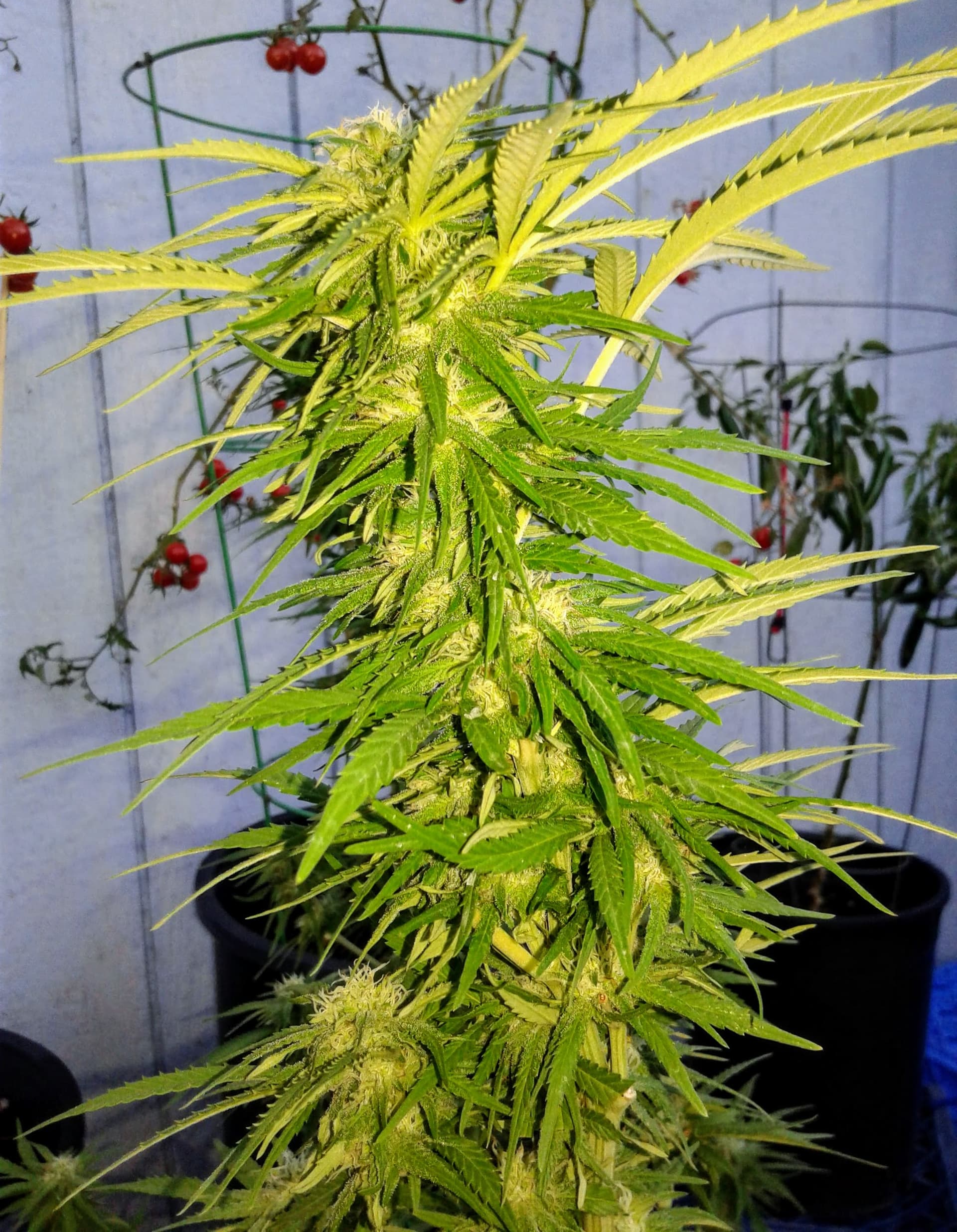 We just brought the two smallest plants into the house to give the three in the shed more airy space. And we left the door open to the shed.