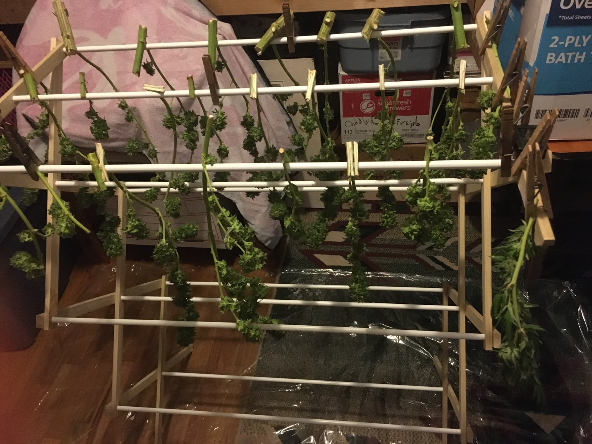 So, does this sound right? I’ll trim off the big leaves (fan), then bud wash, then hang til dry and then do the real trimming. I don’t know. I’m tired.