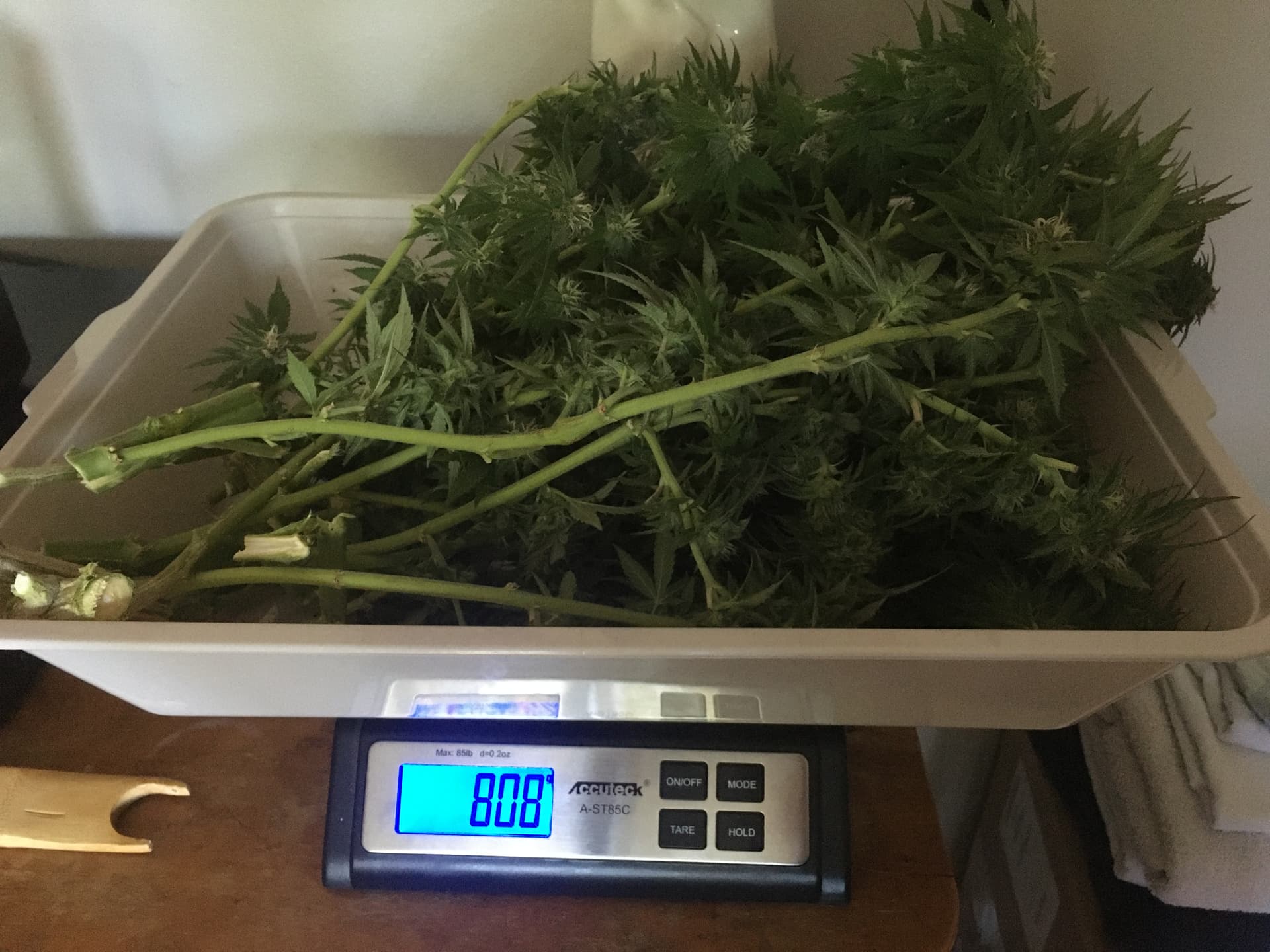 Okay … data … Hash God … day 169 from soil pop up and approximate day 48 of flowering … bad pics of bud rot; pics of trichs; pics of weigh and pics of hang