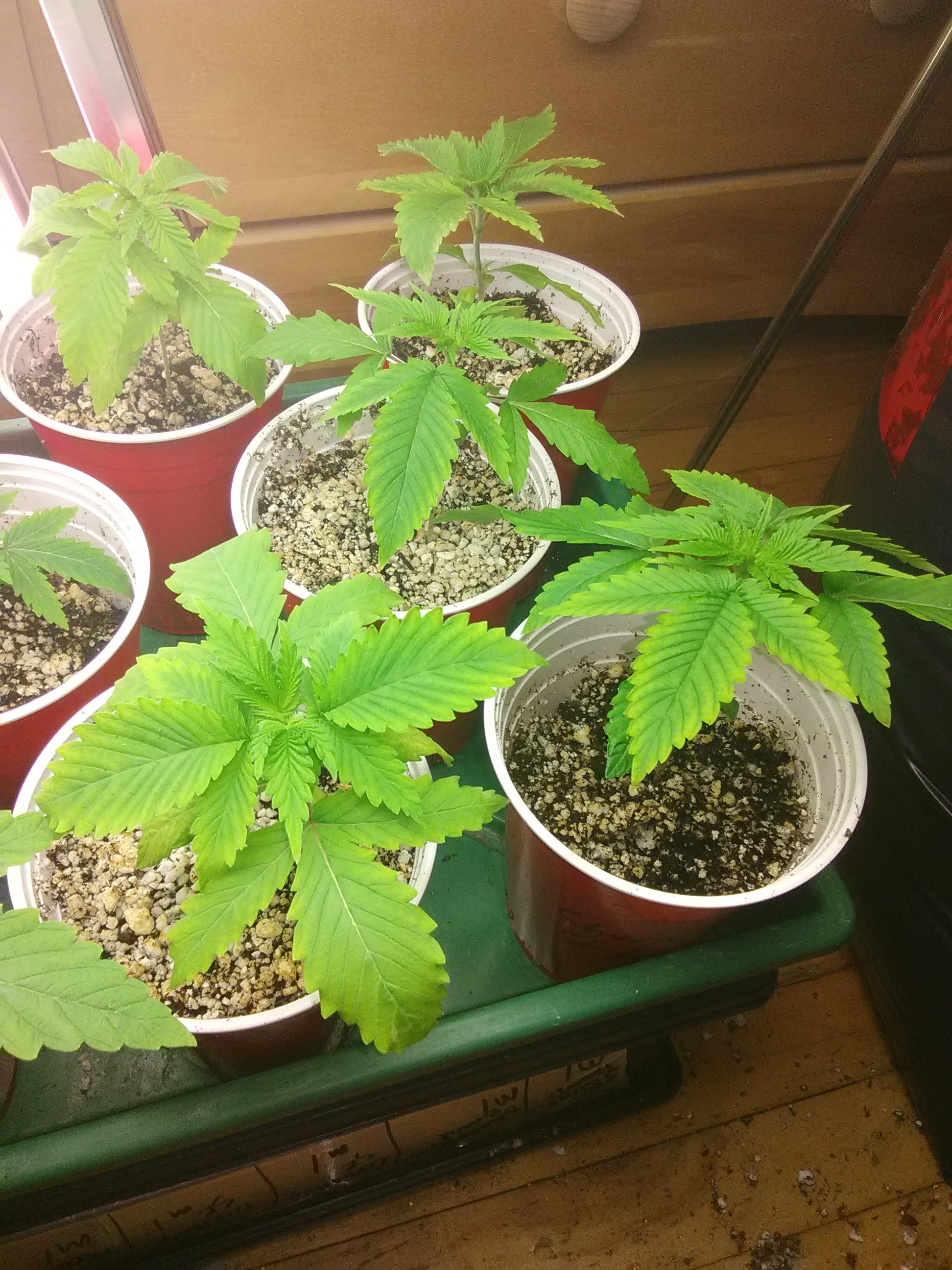 Transplanted into 1 gals last night with vam myco and their first earth juice feed they are HAPPY this am but the phone was dead now lights out il post pics tonight at lights on! Super excited to watch these girlies grow up very excited about these peyote purples also VERY VIGOROUS growers and they LOVE THE EJ