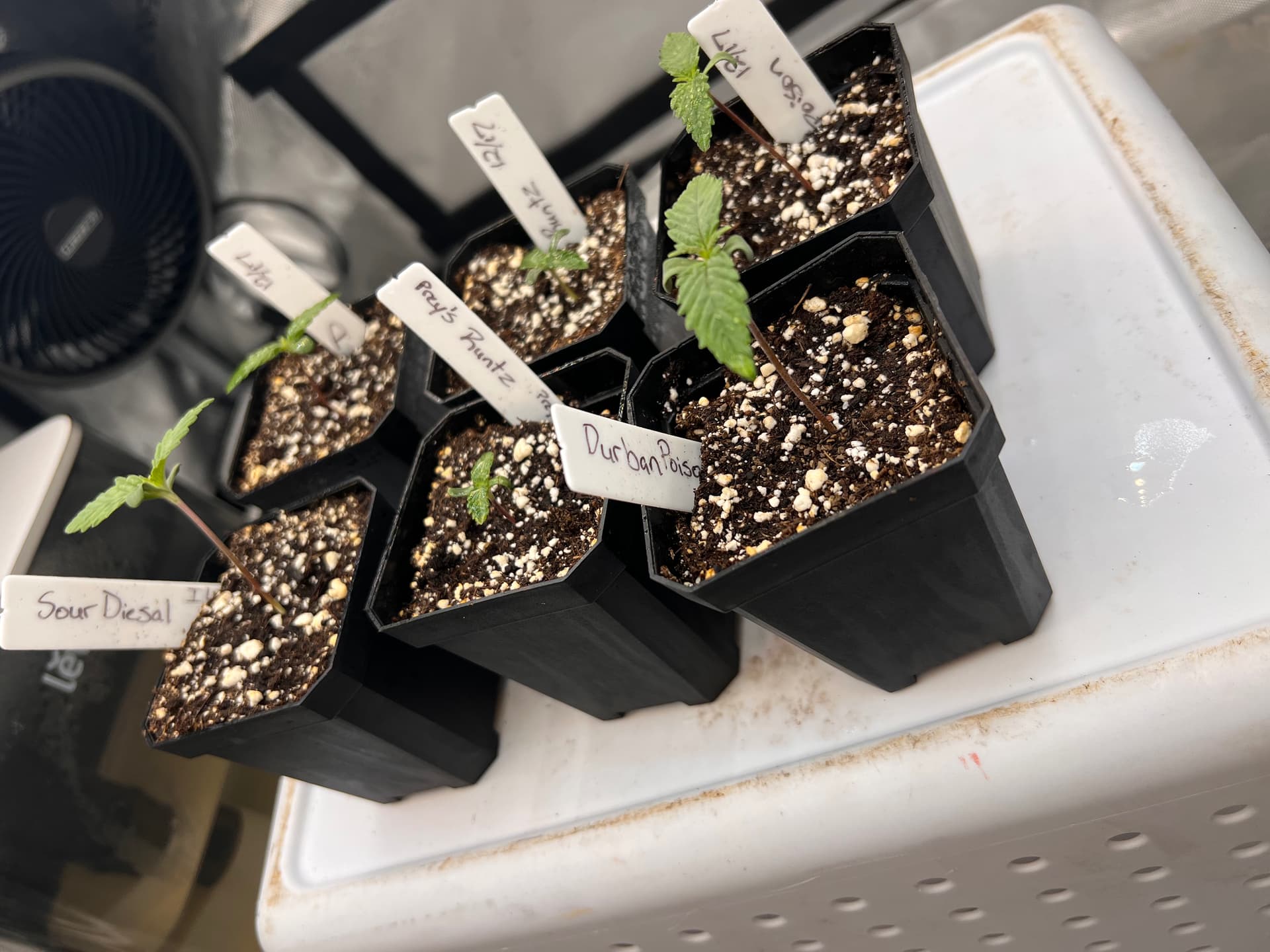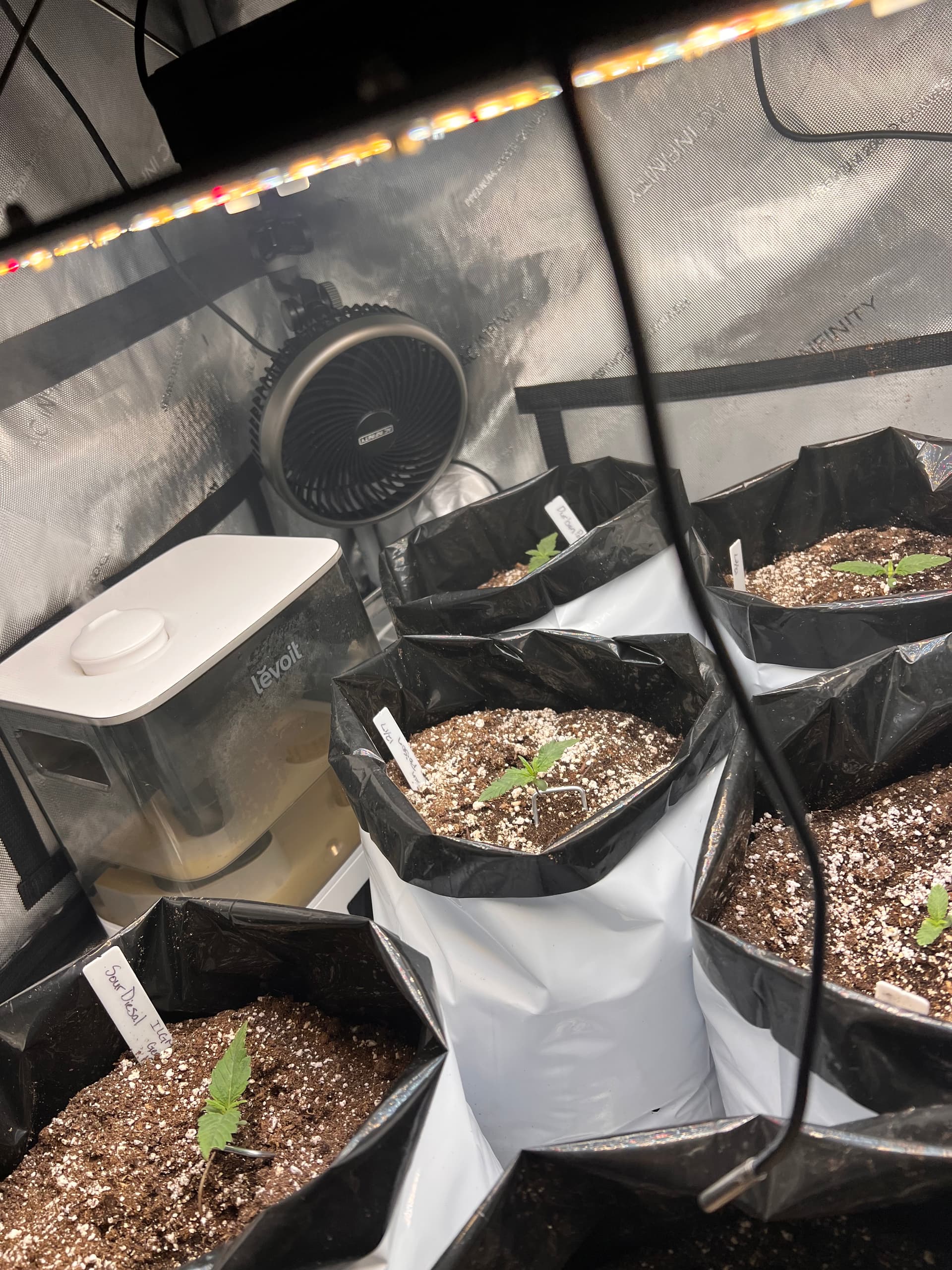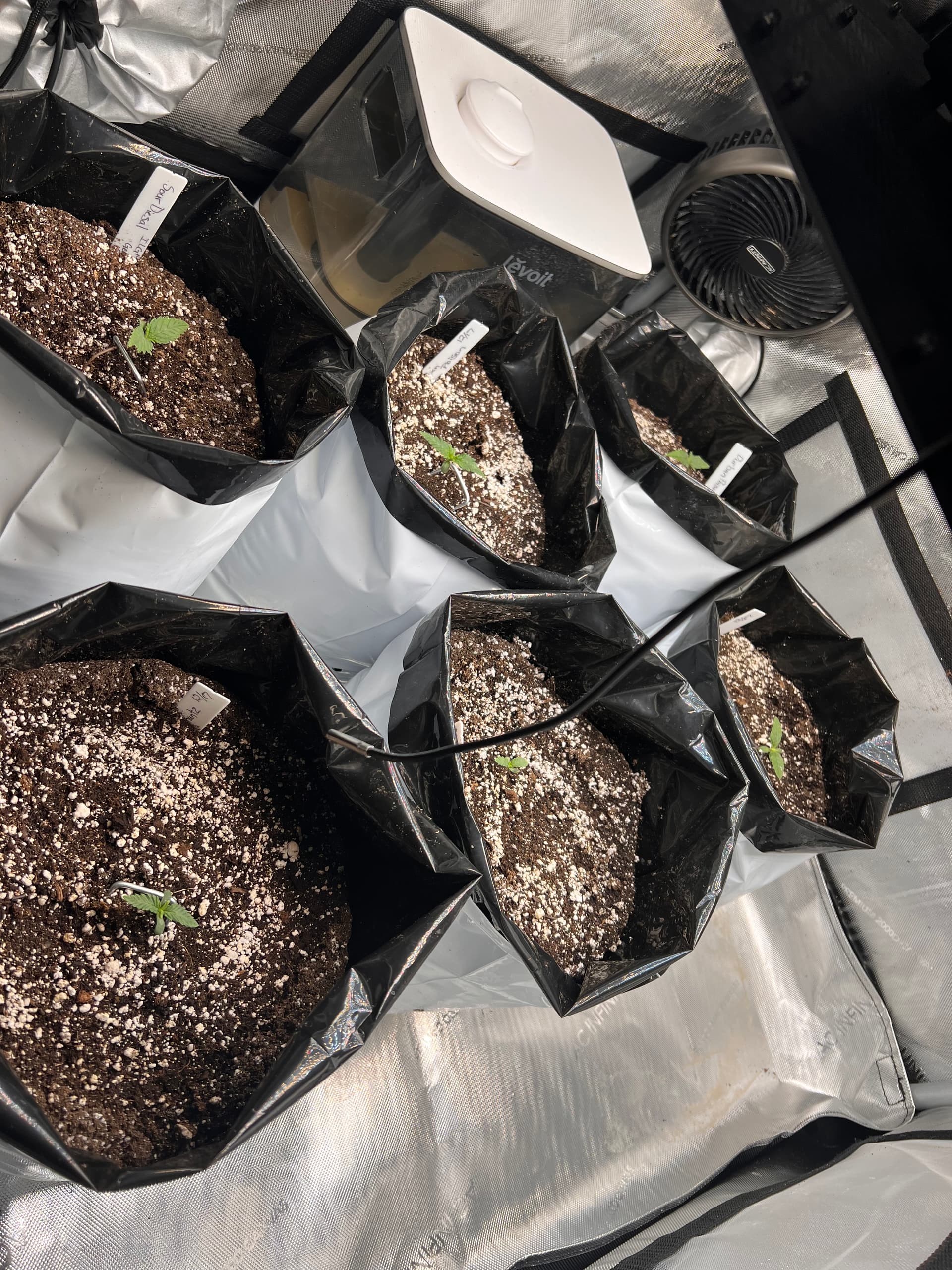 As of right this second they’re in Hp ProMix with a pinch of mykos getting PHed water … they will be moved to 3 gallon bags first with Gia Green Nutes at a 3 tblspoons per gallon of soil an also mixing in gai green worm castings @ 25% by volume …. This is a very simple recipe but I’ve seen very amazing results…. Via MrCanucks grow on YouTube