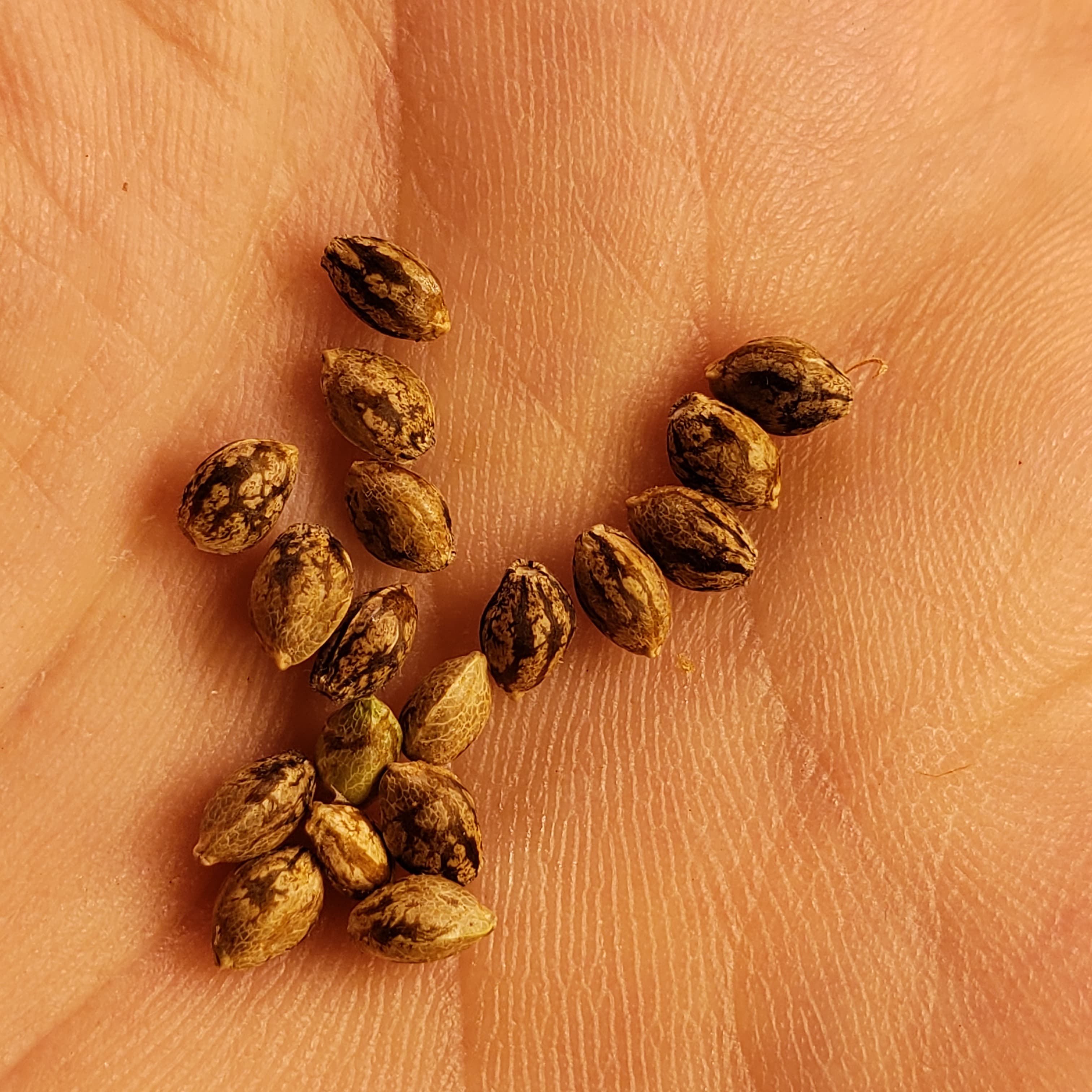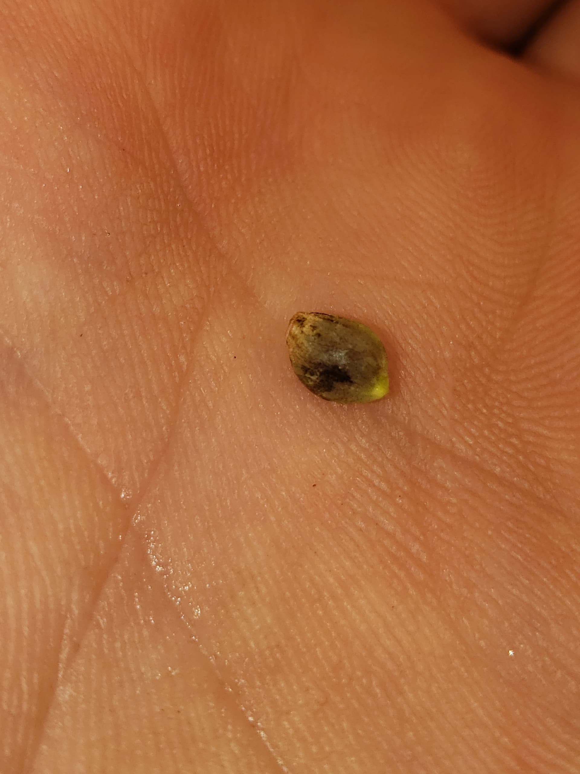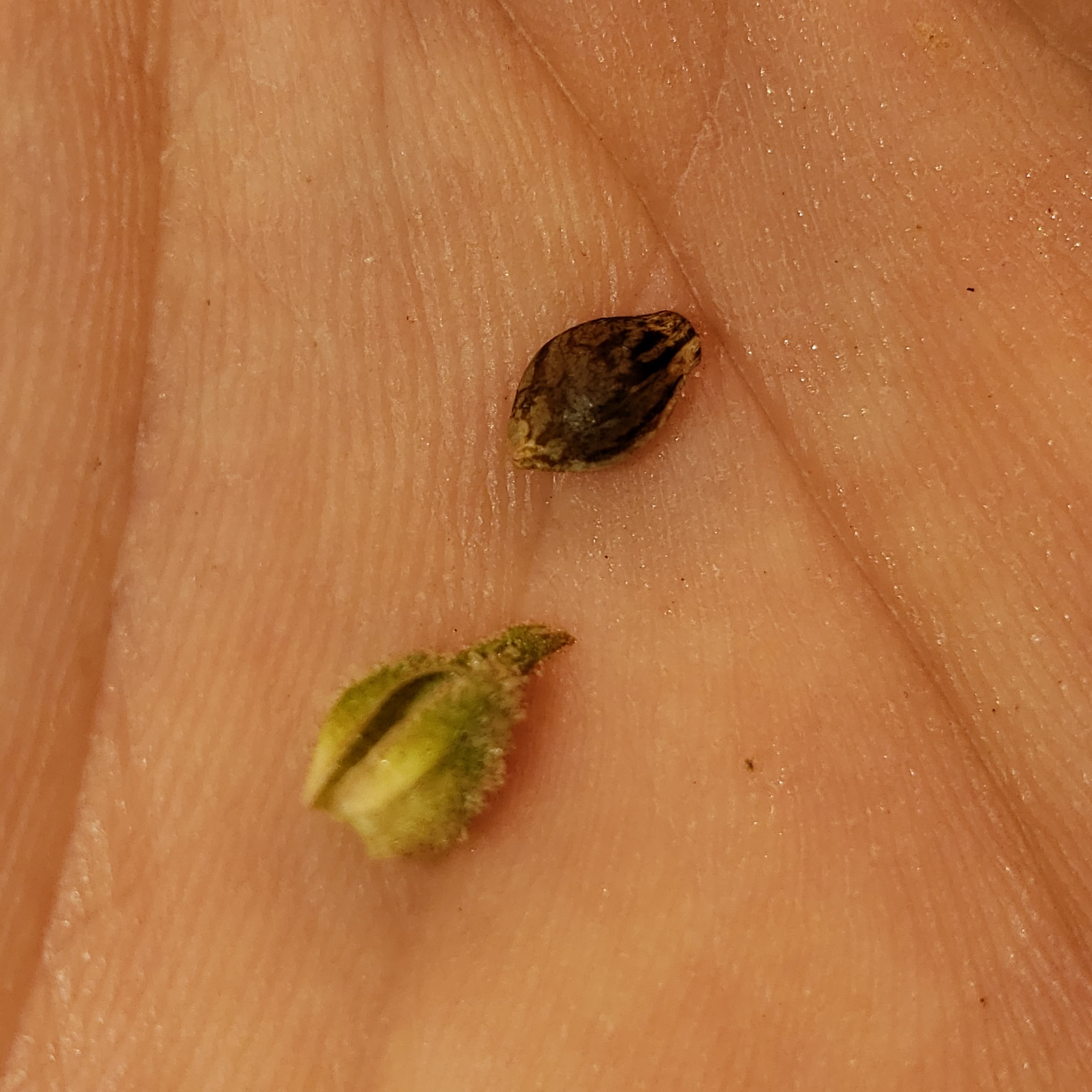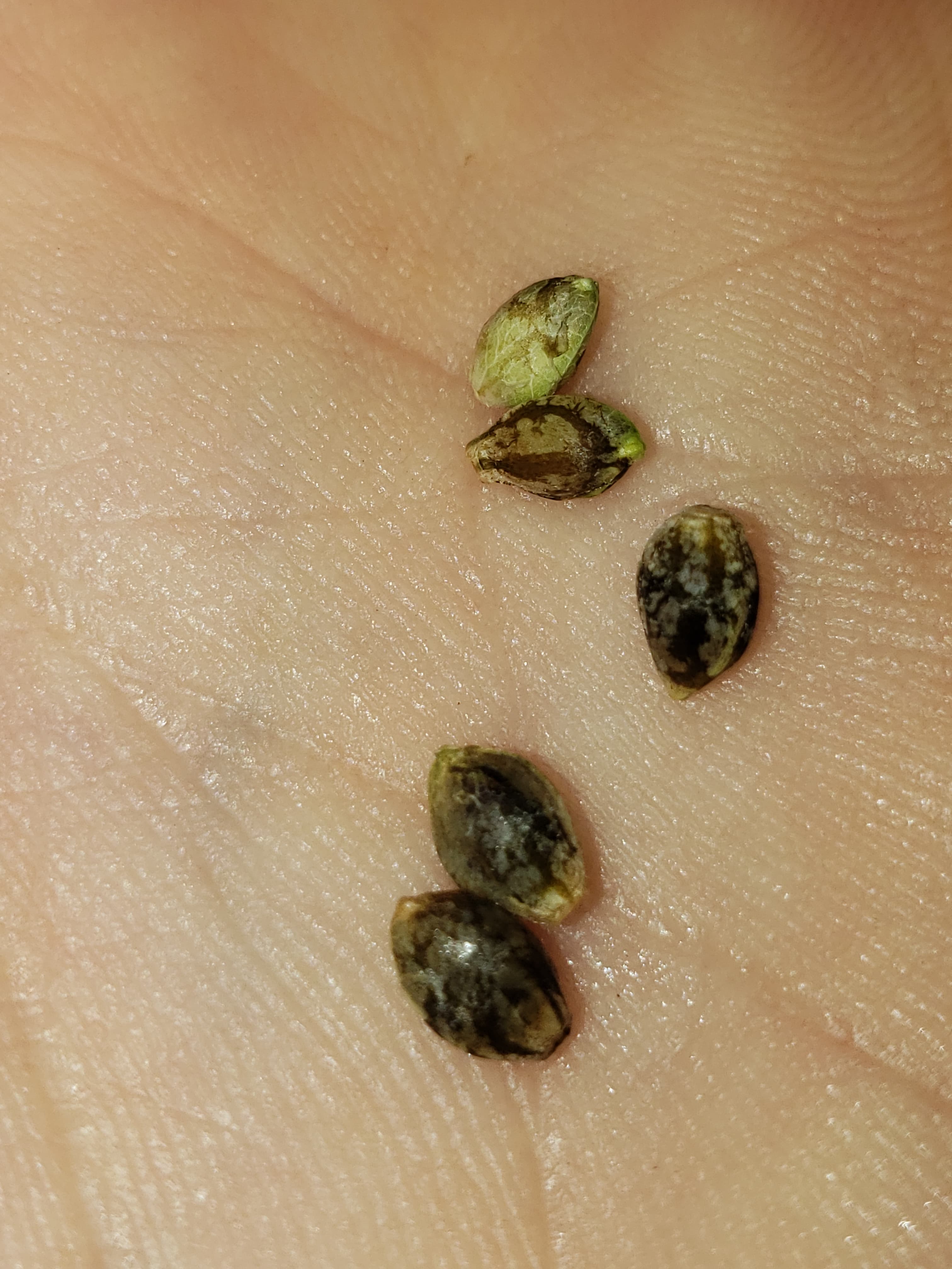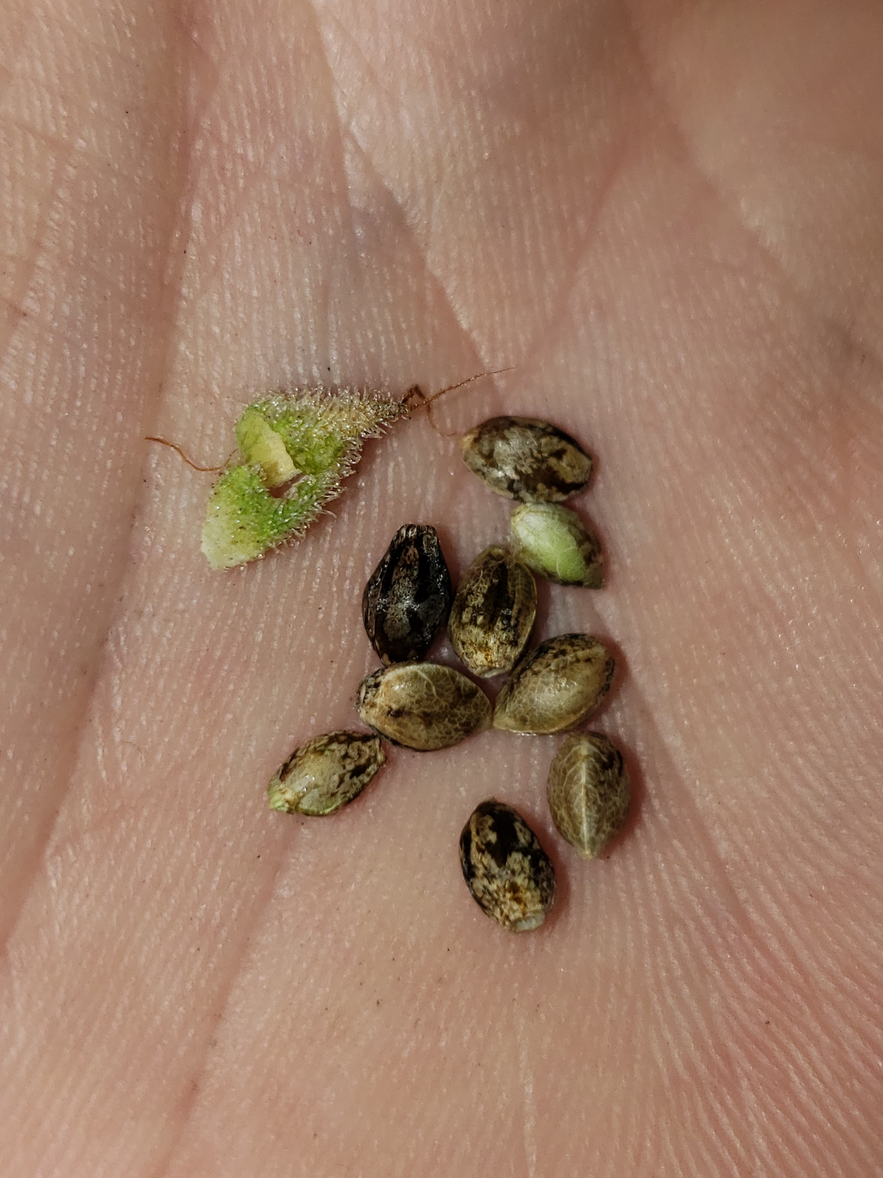 I also put all the ripeness seed checks into my hand and you can see im like about a week to finish. Usually when the pods start to yellow you have good seed that will grow it just needs a little curing time.