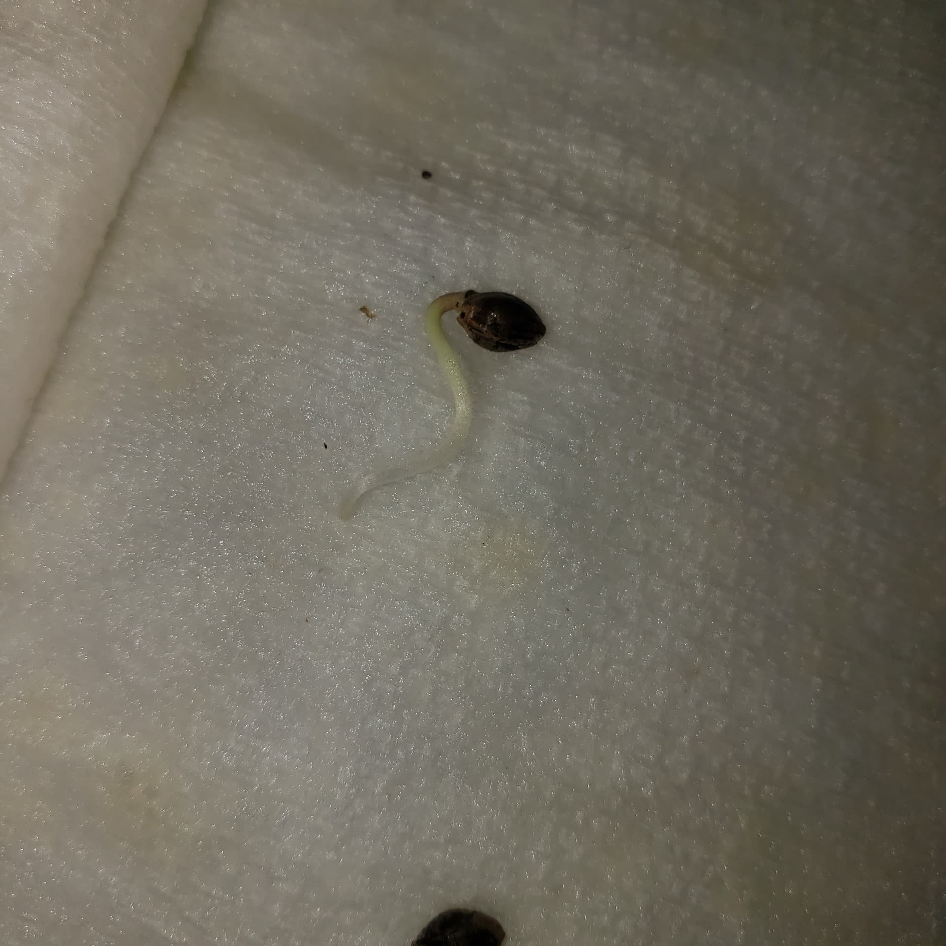 So i used my tiny little pic set to pry the seed shell open just in case it caused an issue. Then i put the tap root in a small hole. I left 1/2" of the plant out of the pro-mix and then i sprinkled about a teaspoon ontop of the seedling to cover it and Lightly patted it down. Then i like to take clonex water from my cloner to water the media to “set” the root from having to move down more and it sprouts out of the media faster. I also soak my paper towel with the same clone juice from Da cloner. So i sprout 95% my seeds this way.