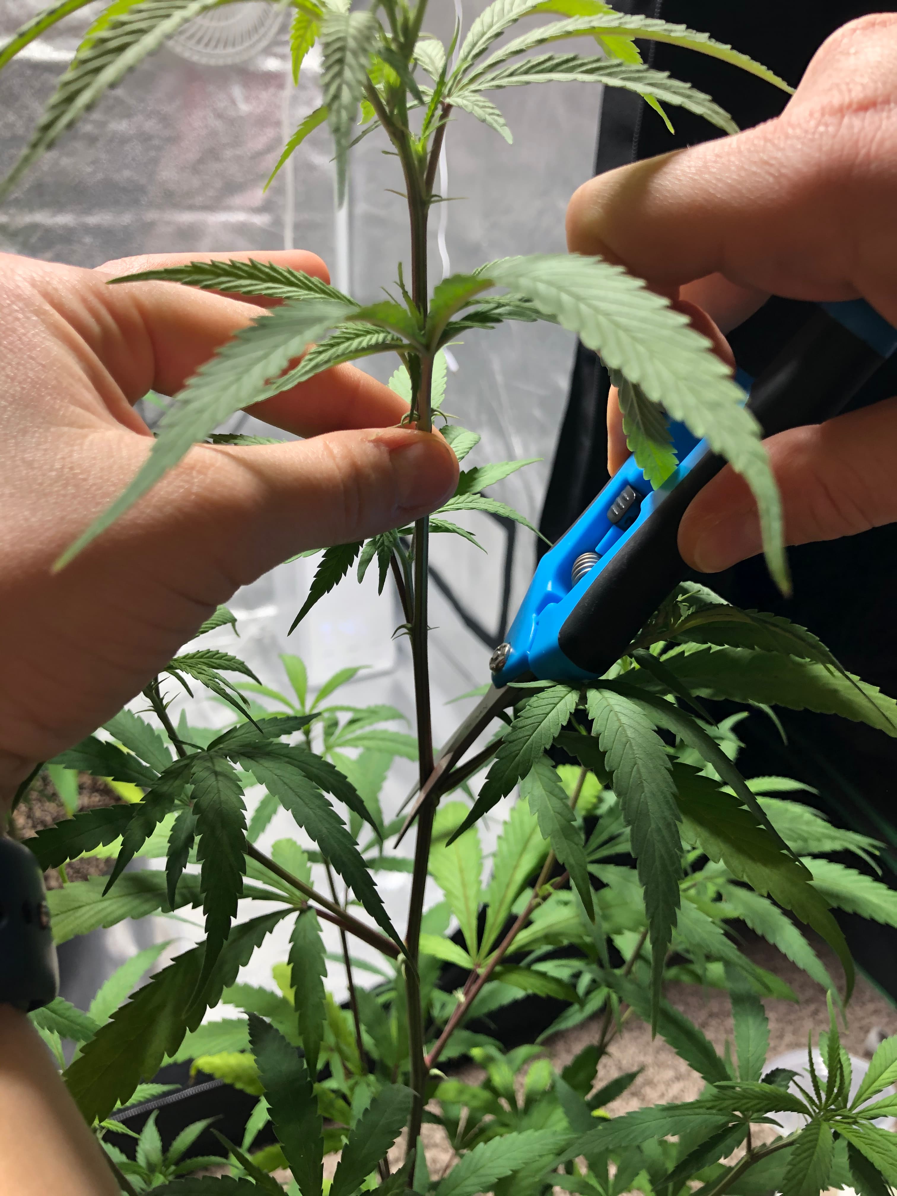 Still waiting on my light, and once I get it, then I will switch the light to flower. Afraid the plants will get too big for the tent, but hopefully the topping will encourage it to grow bushier instead of taller. Excited to see if the clones root. Will update later