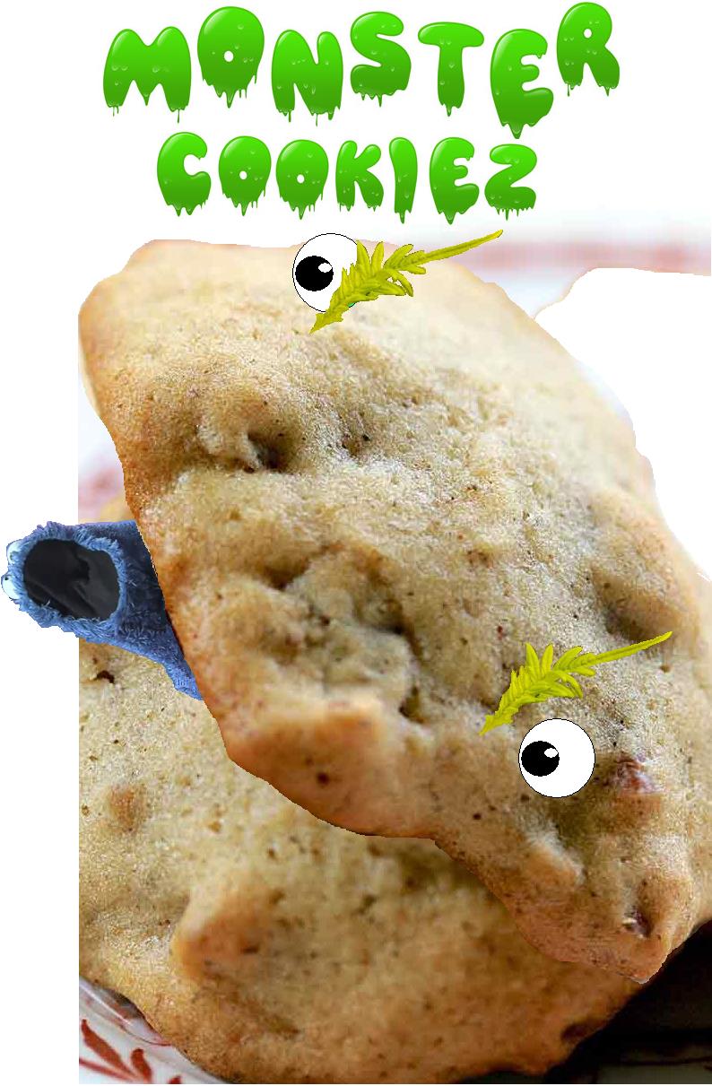 Leaf is from nvr2hi, cookie from google image cookie, monster font from googling monster font