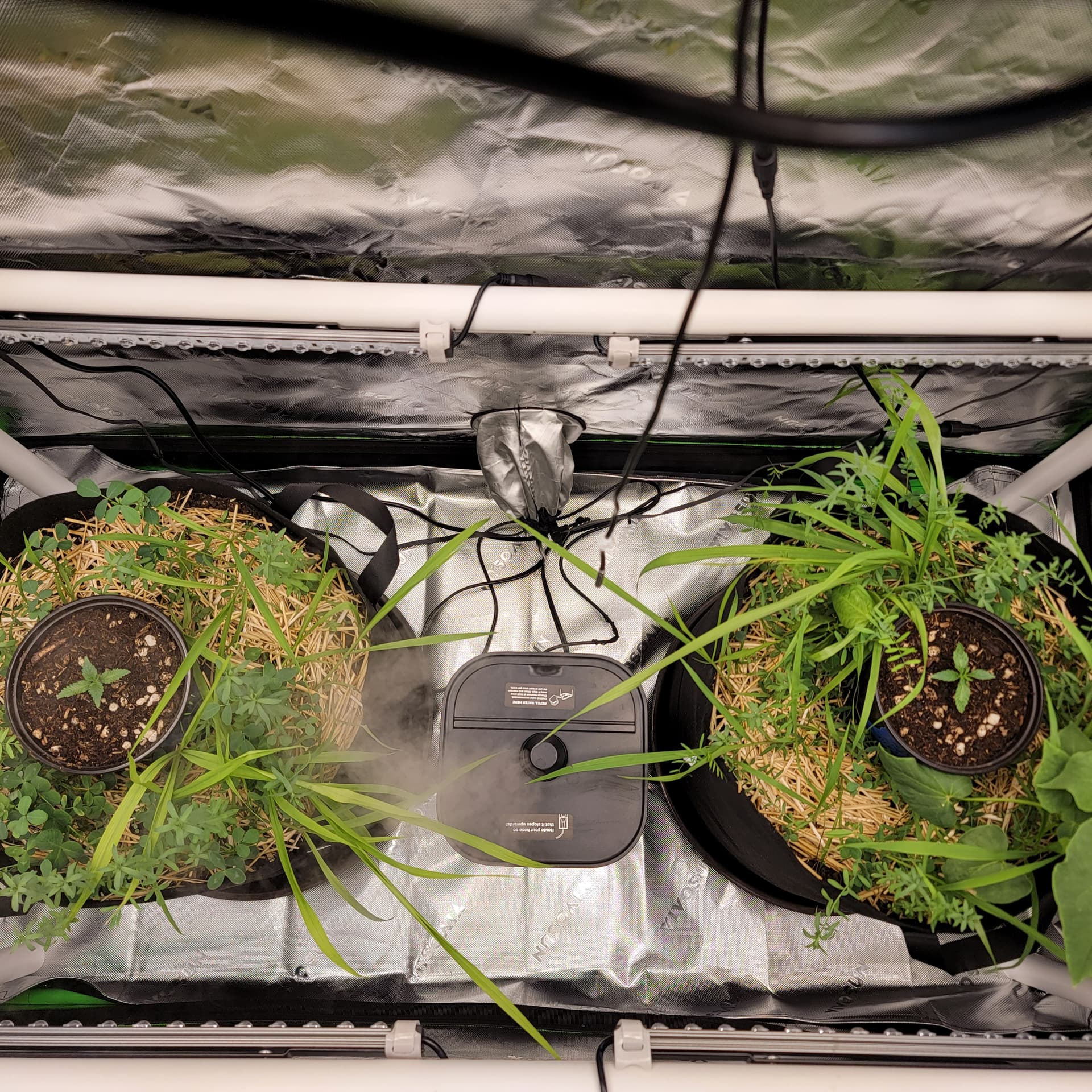 I planted the seeds on September 13th . I soaked 2 coco coins in some water with some rootwise mycrobe complete for 24 hours the night before. Then I squish the top of the coin and little so the seed doesn’t fall to deep lightly cover the top of the seed. And placed it in my humidity dome. I placed the dome in the tent with the cover crop set the timer for 20 hours on 4 hours off . Adjusted the light par to around 200 a little above for the first week. They both started showing first set of true leaves on September 17th, then I transplanted them into small 5”× 4”1/2 nursery plastic pots when the roots started growing through the coco coins. I watered them both once while in the dome with 5ml of water each.