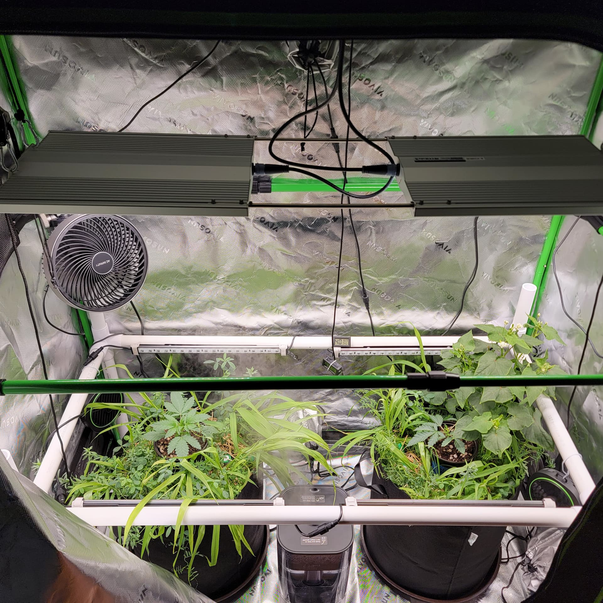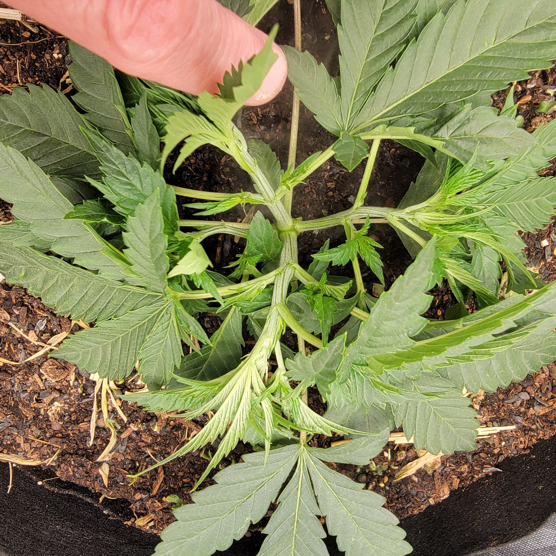 Here are some pictures from today before lights out. Also turns out that my Monkey Slapz didn’t have a top. It self split at the third node,and would explain better why the one on the right is so short. I think I will start to super crop the wedding cake a little so hopefully the Monkey slapz will catch up a little bit. I will better update my journal on the weekend with what I have done to this point. Here are a couple of pictures of where the Monkey Slapz split from