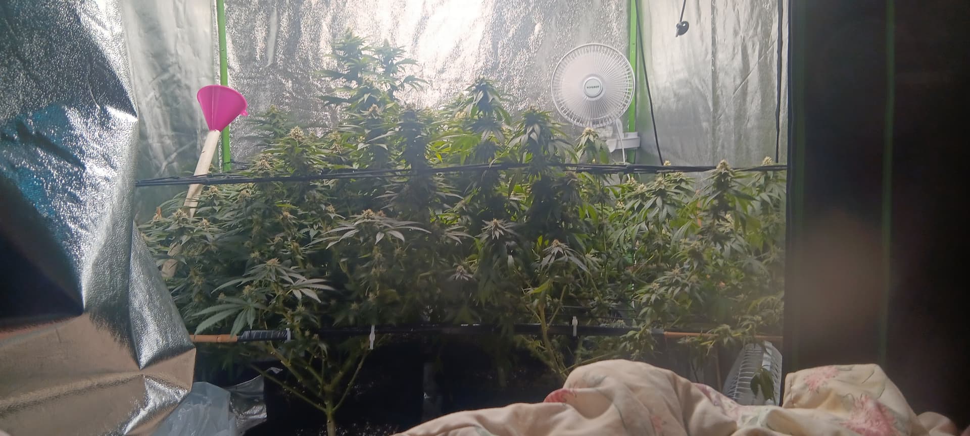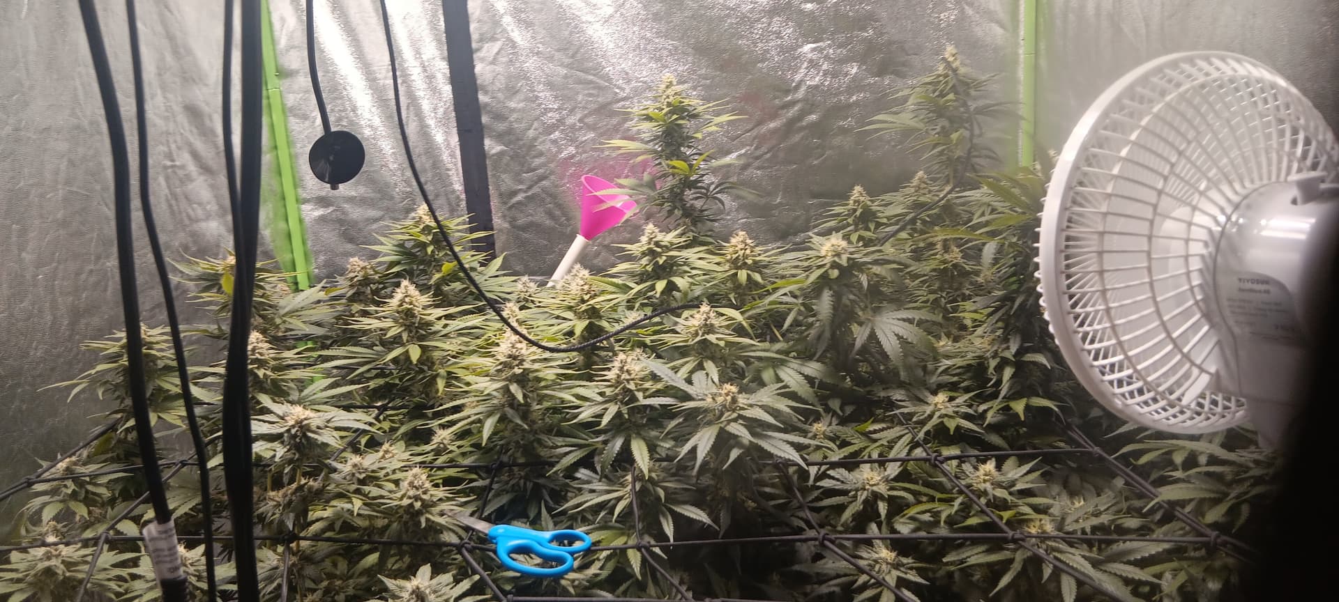 So ill be feeding 4th flower week aggressive schedule according to gh trio without calmag this or any other time probably and doing a heavy trim on the most of the rest of the fans in hopes to get a big amount of light to the rest of my buds within the next couple days at the most i have been sick.