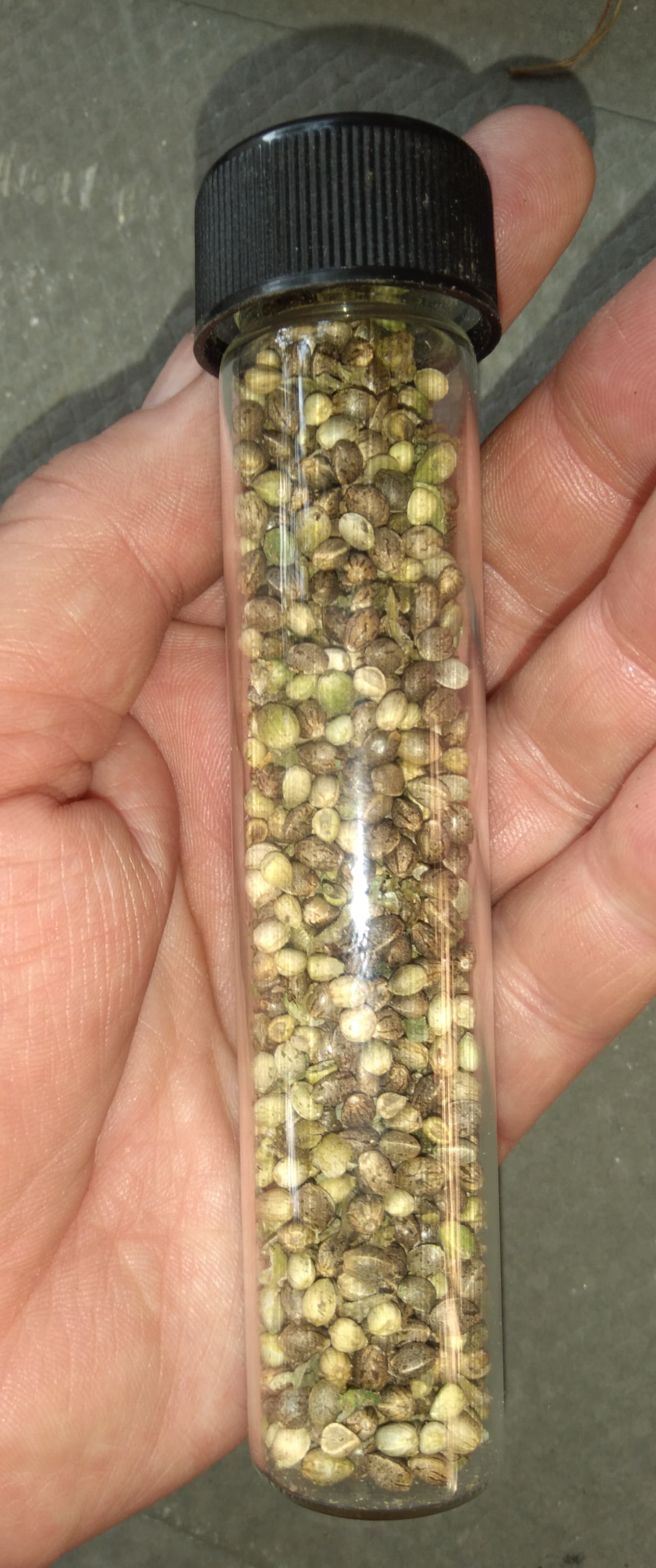 The bushy one here is the accidental revegged one. The 2nd one is kush beginning of August but now she jumped up over 4. Ft 5. The seeds. Those are only some of the seeds. I’d carry that around and pass them around!