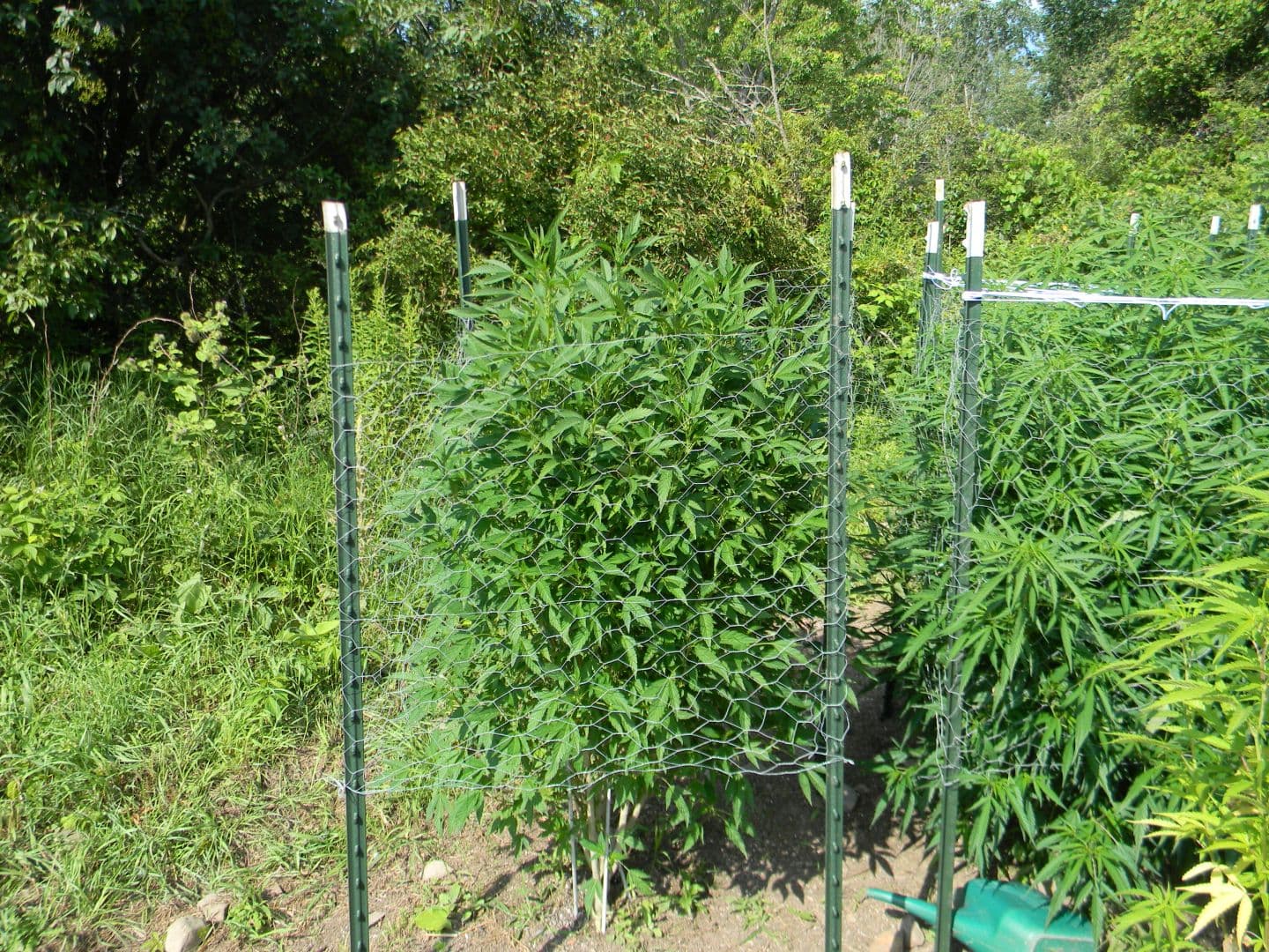 I went with 7 foot T-Post with a foot in the ground for six foot tall with chicken wire around