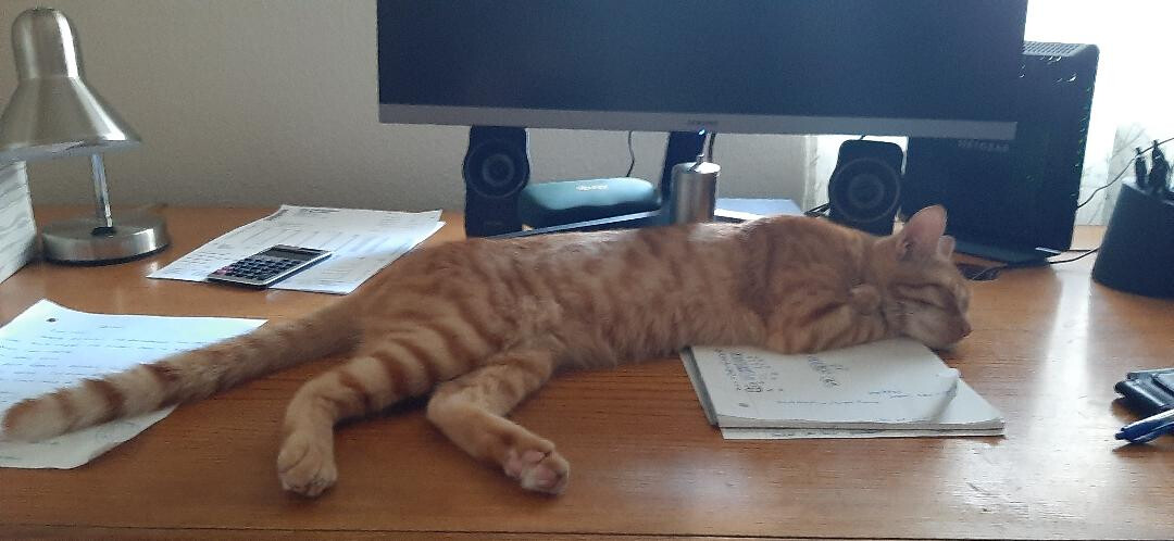 Help me in so many ways…especially keeping my computer desk clean…by knocking anything placed there BEHIND the desk…