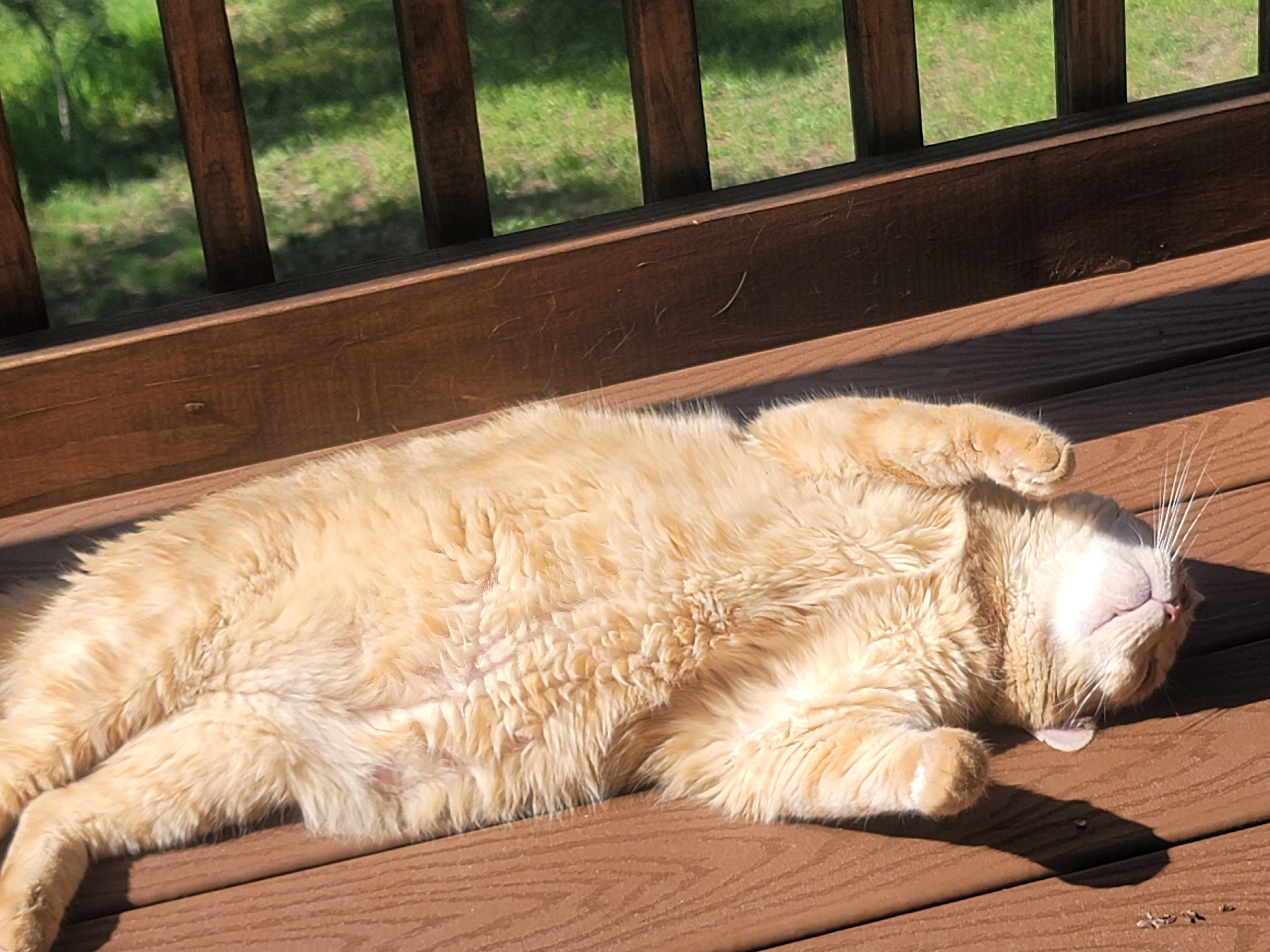 Red is a character…nose right there into everything…sleeps with his front ‘arms’ crossed!!