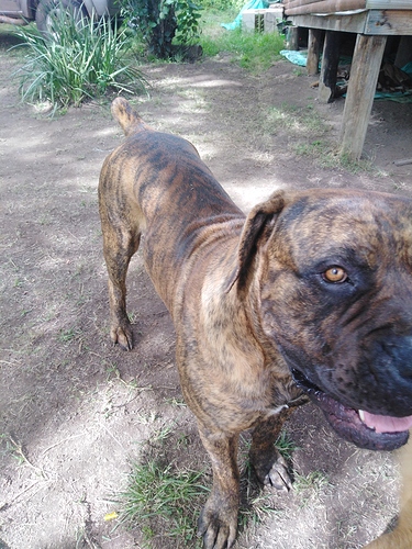 @chrisj beautiful brindle coat… Tell your mate he has a gorgeous dog… eyes say I can be nice but don’t mess with me lol