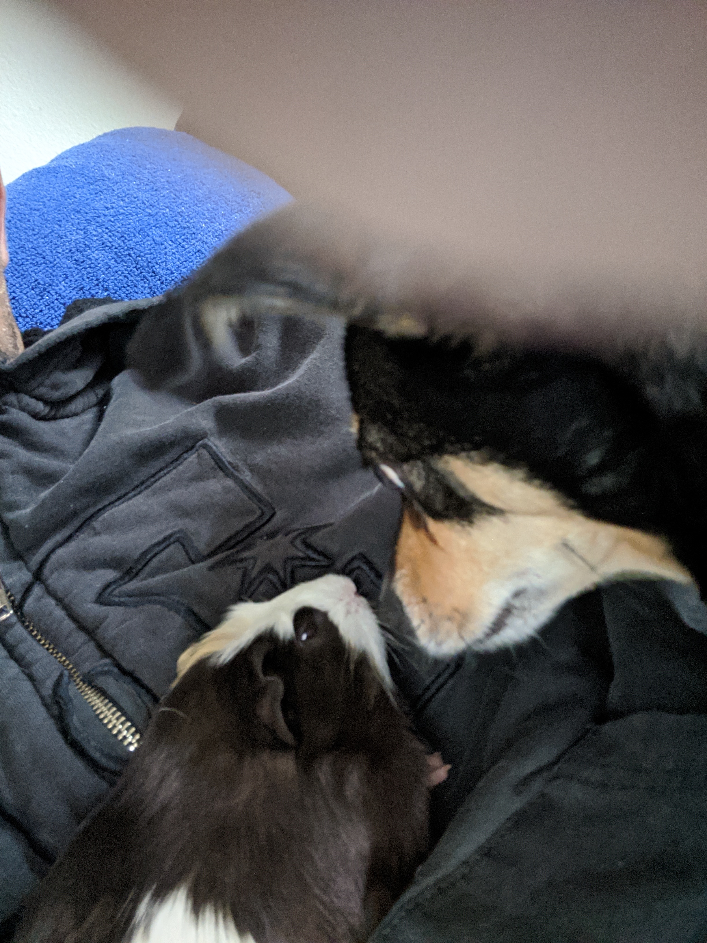 My wife and daughter brought it home… It’s same colors as our dog… It’s really chill I don’t mind it hanging out lol … The kids love it