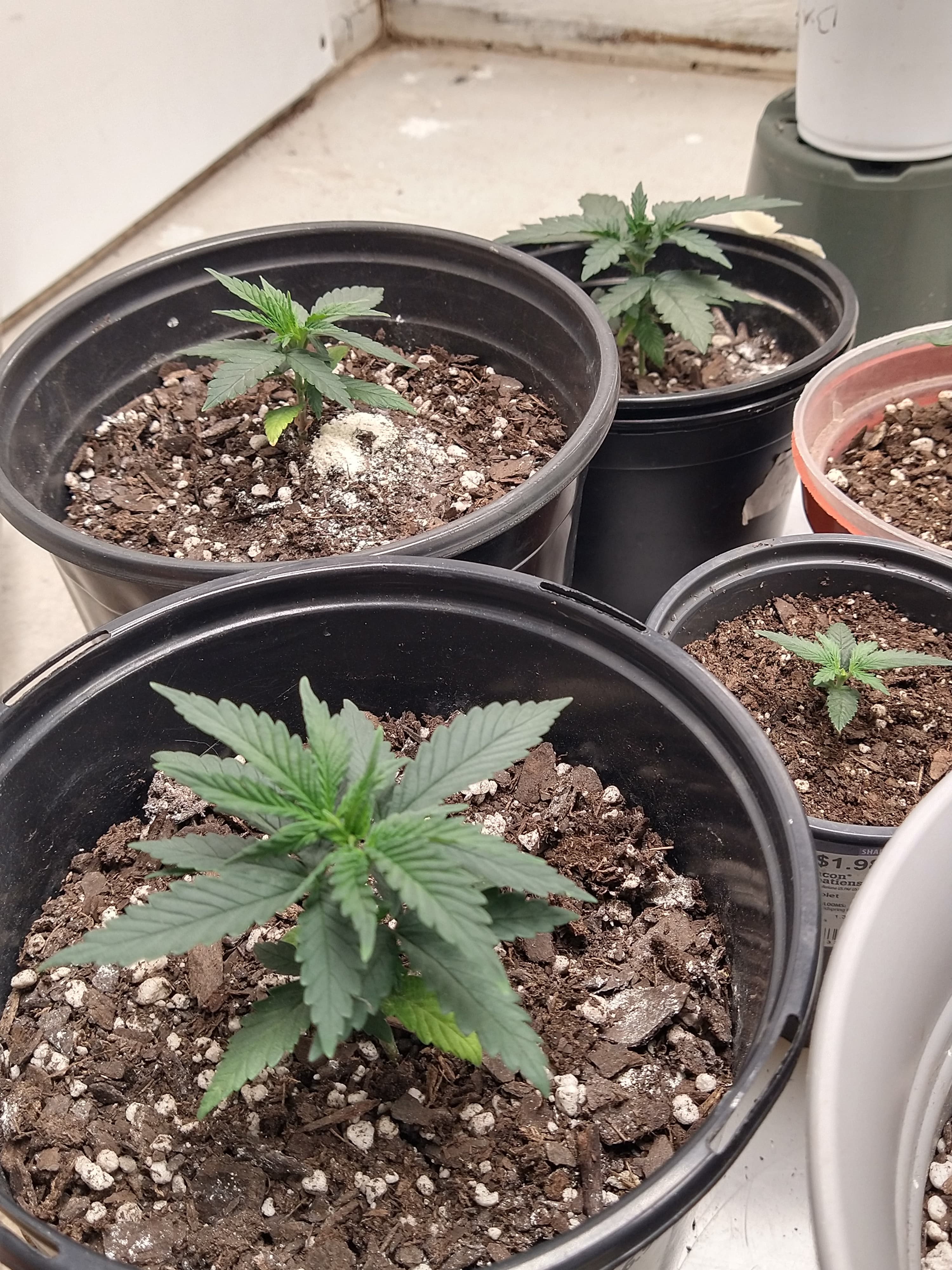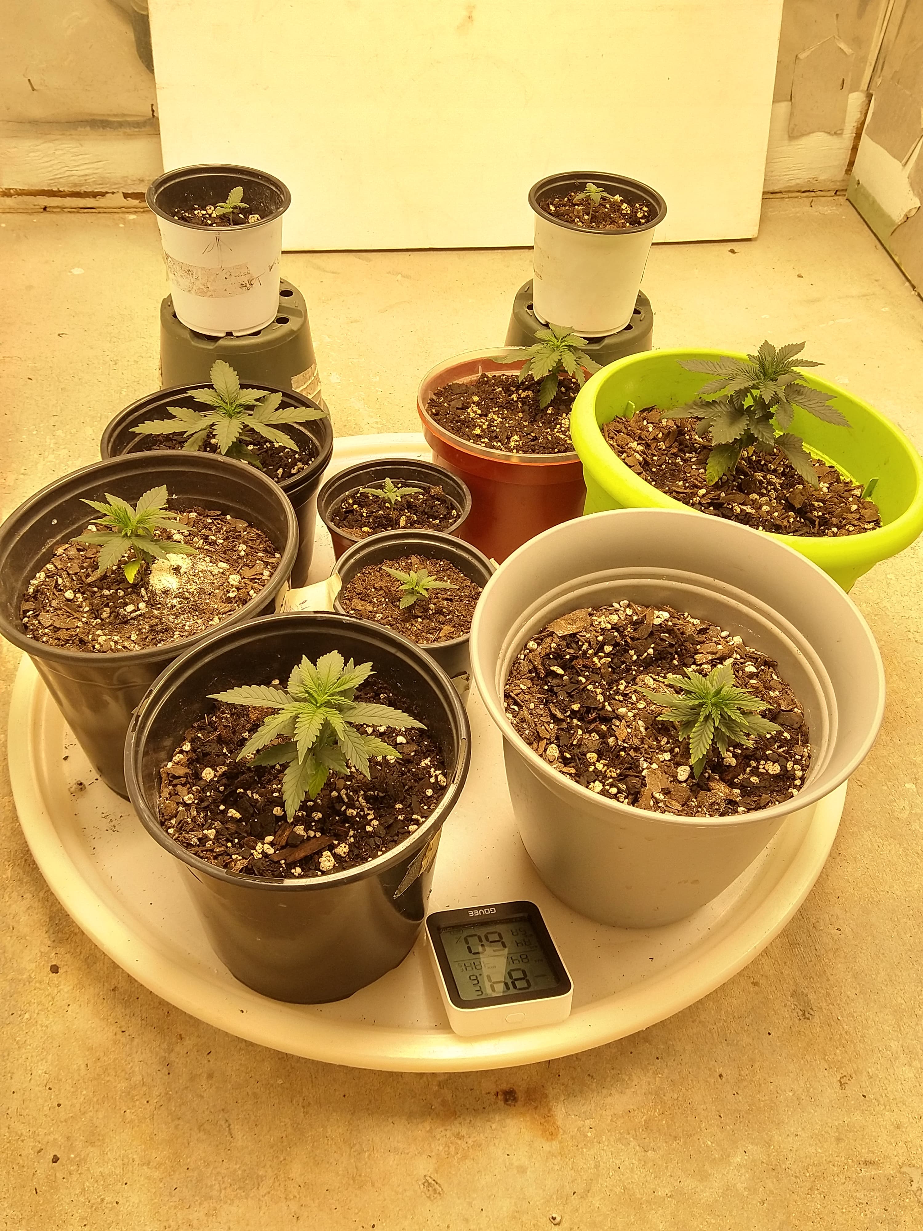 Starting to look like pot plants finally @ a month. The wee little ones are 2 weeks behind, Iām thinking Iām gonna veg everything till End of the monthish around. It will be warm here again permanently by March so - yup.