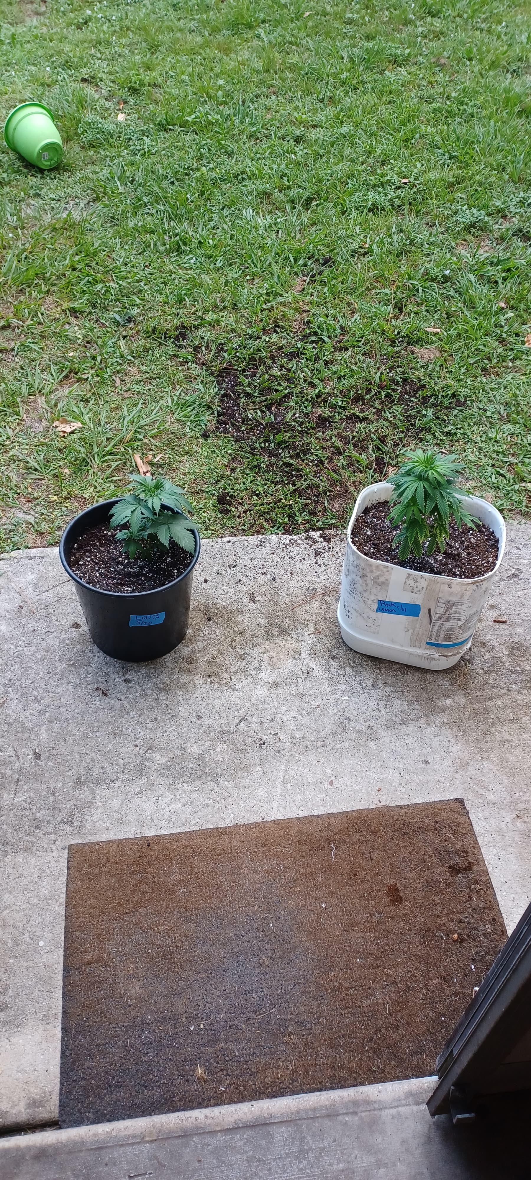 Repotted the pink lemonade X Gelato from Old soldier and the other king Lou from Ethos maybe?? Should be their forever homes on these 2 as Iām gonna flip end of this month. I cracked the latest batch of seeds about 5 weeks ago. Kinda a short veg but with this summer heat I want it to be over. Plus makes for good timing for a new winter batch.