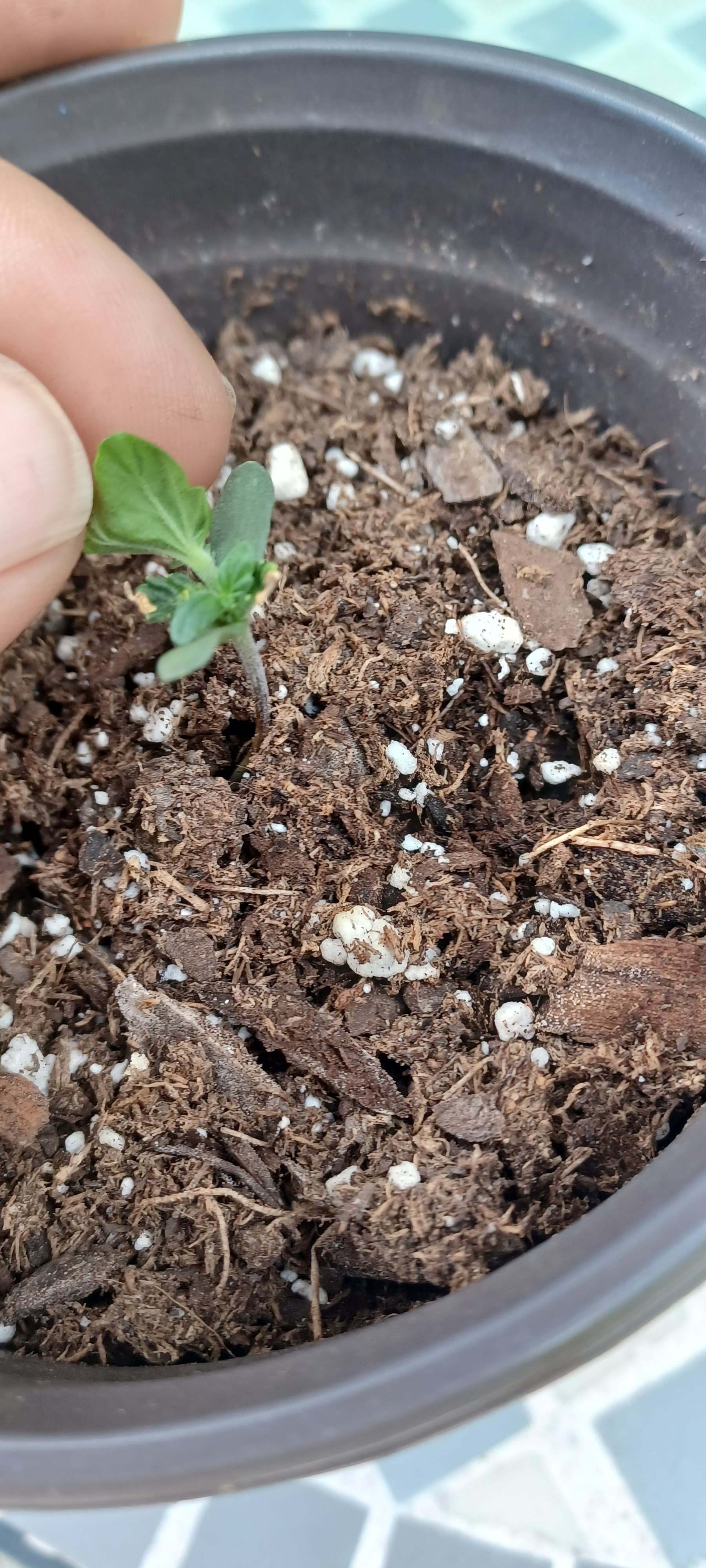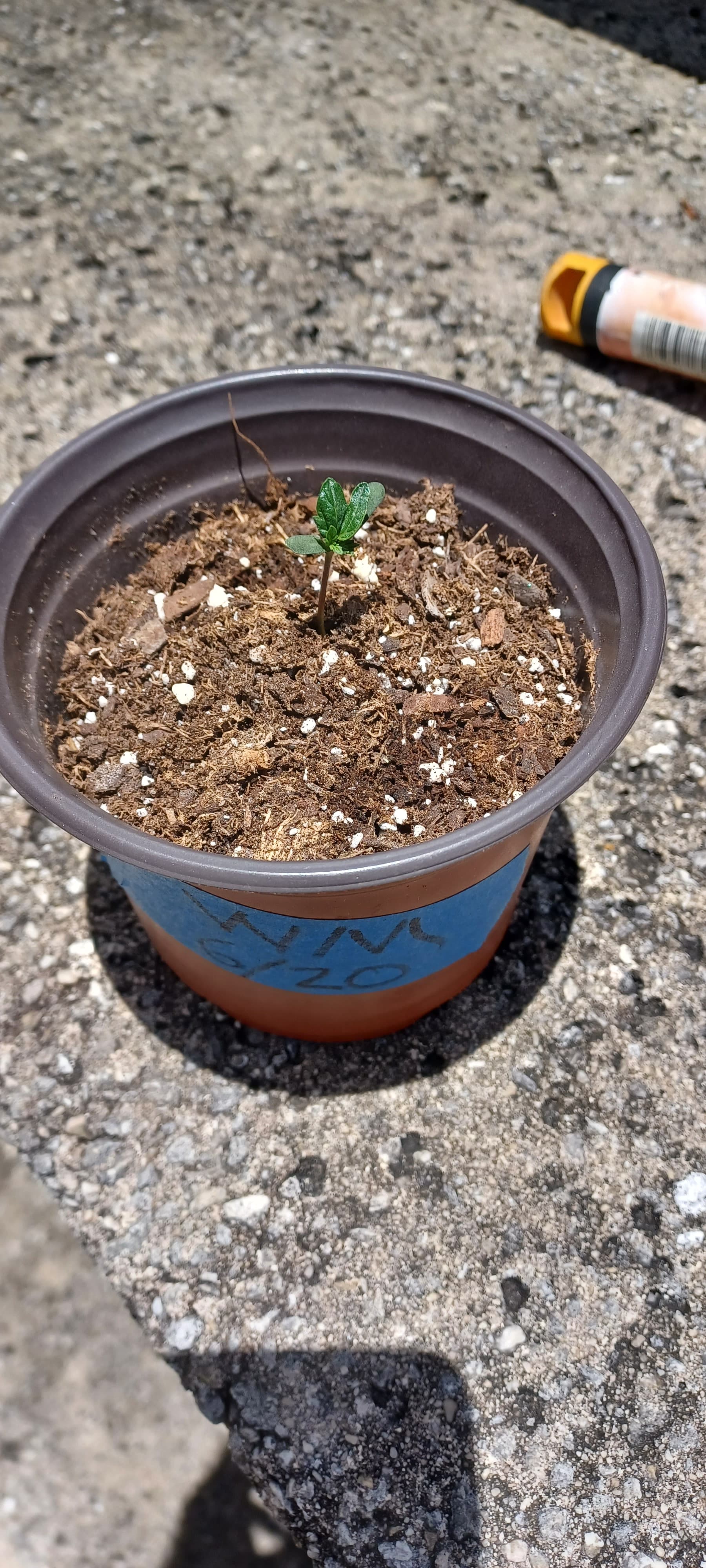 Abused the dispensary plant a little bit. Help keep her size down a bit maybe. Btw that is the one and only seed I have ever found in anything bought at the place. Itās a she too so we shall see ⦠was it self pollinated?? Donāt know how that works ⦠But out of an 1/8th - one seed! Also the pink