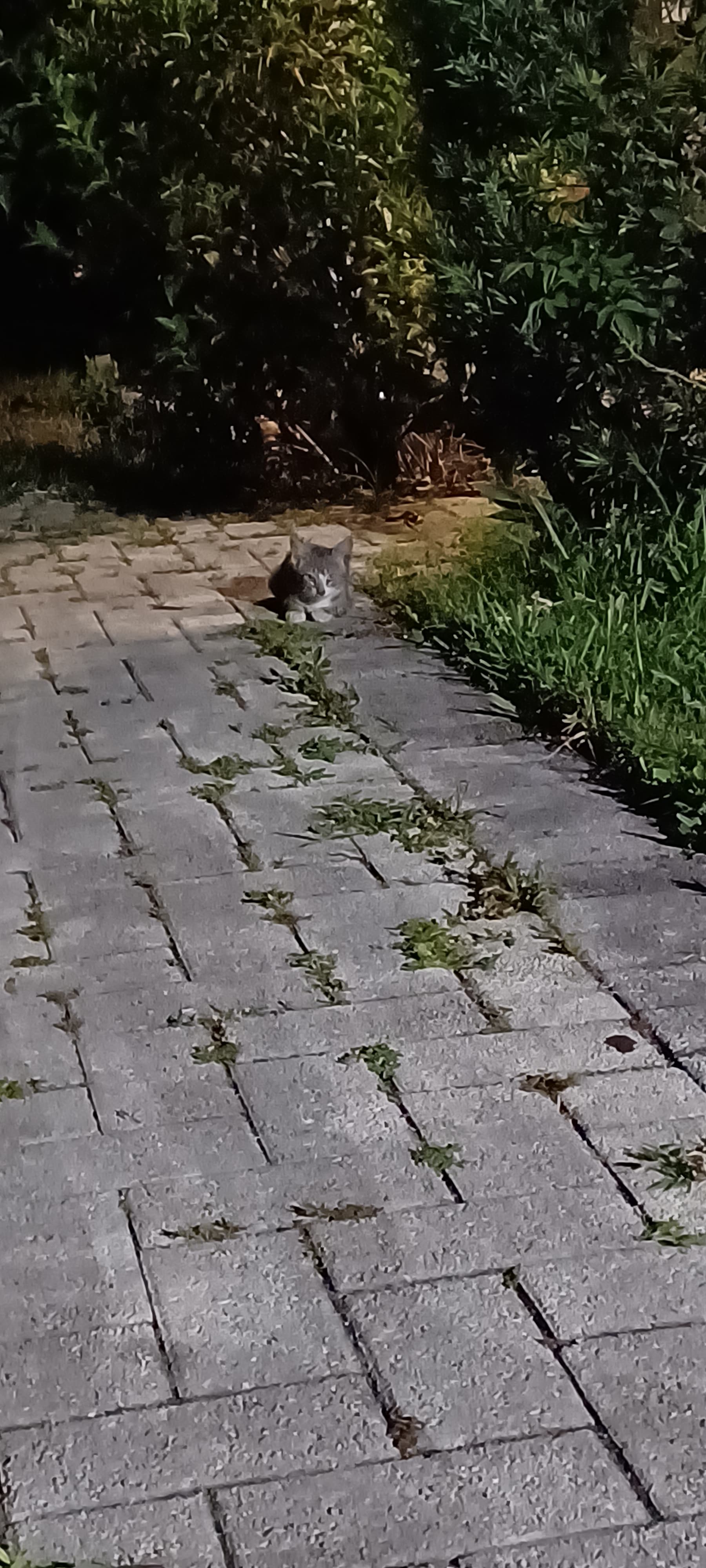 There is 1 mama cat too smart for the trap. These guys are about 2 months. Her dad watches over them like Iâve never seen. I believe her 1st litter too as moms young. But 3 of them this oneâs the adventurer.