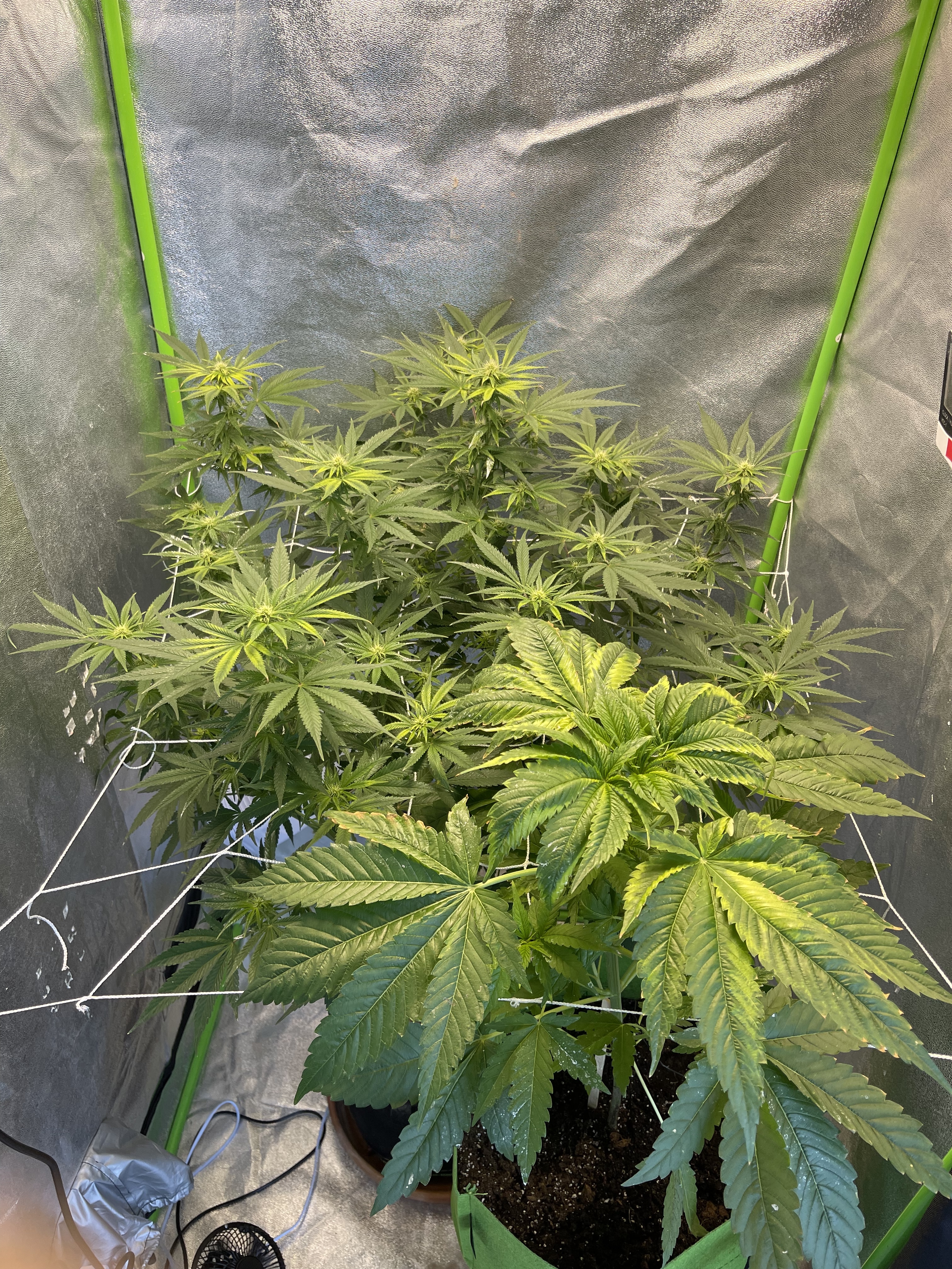 The smaller plant does not look good. I also had to replant it into another pot yesterday. I knew it was a lot of stress, especially into flowering and while having this blockout, but I had to. The soil was just garbage - did not pass any flow and I couldn’t flush. Now the soil for the small plant is better so is the pot.
