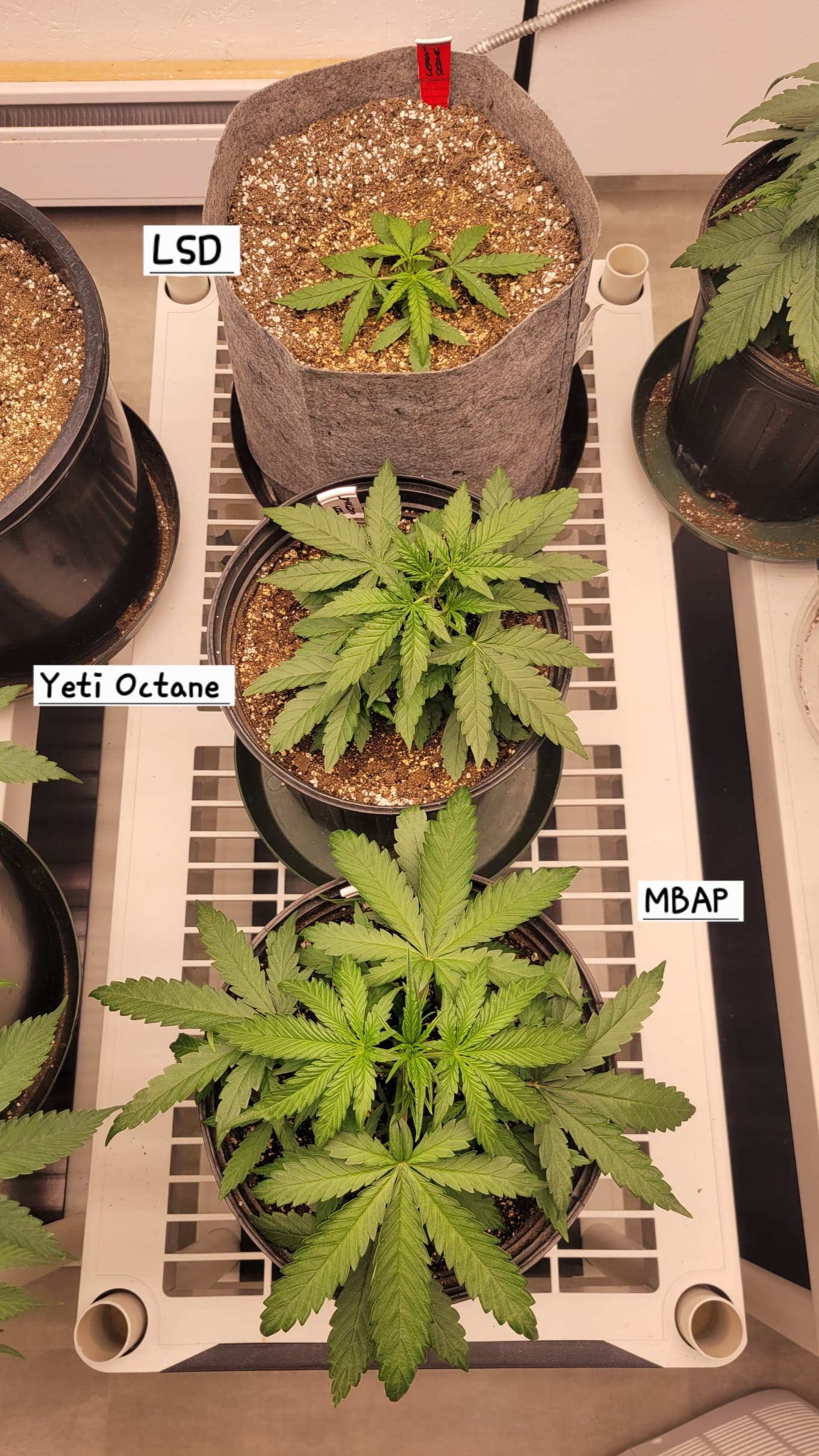 And the mother plant have been put into the flower room. Not ready for flower yet, waiting for the seedlings to grow a little. The mother plants are Grateful Breath, Green Crack, White Widow, and Ultimate.