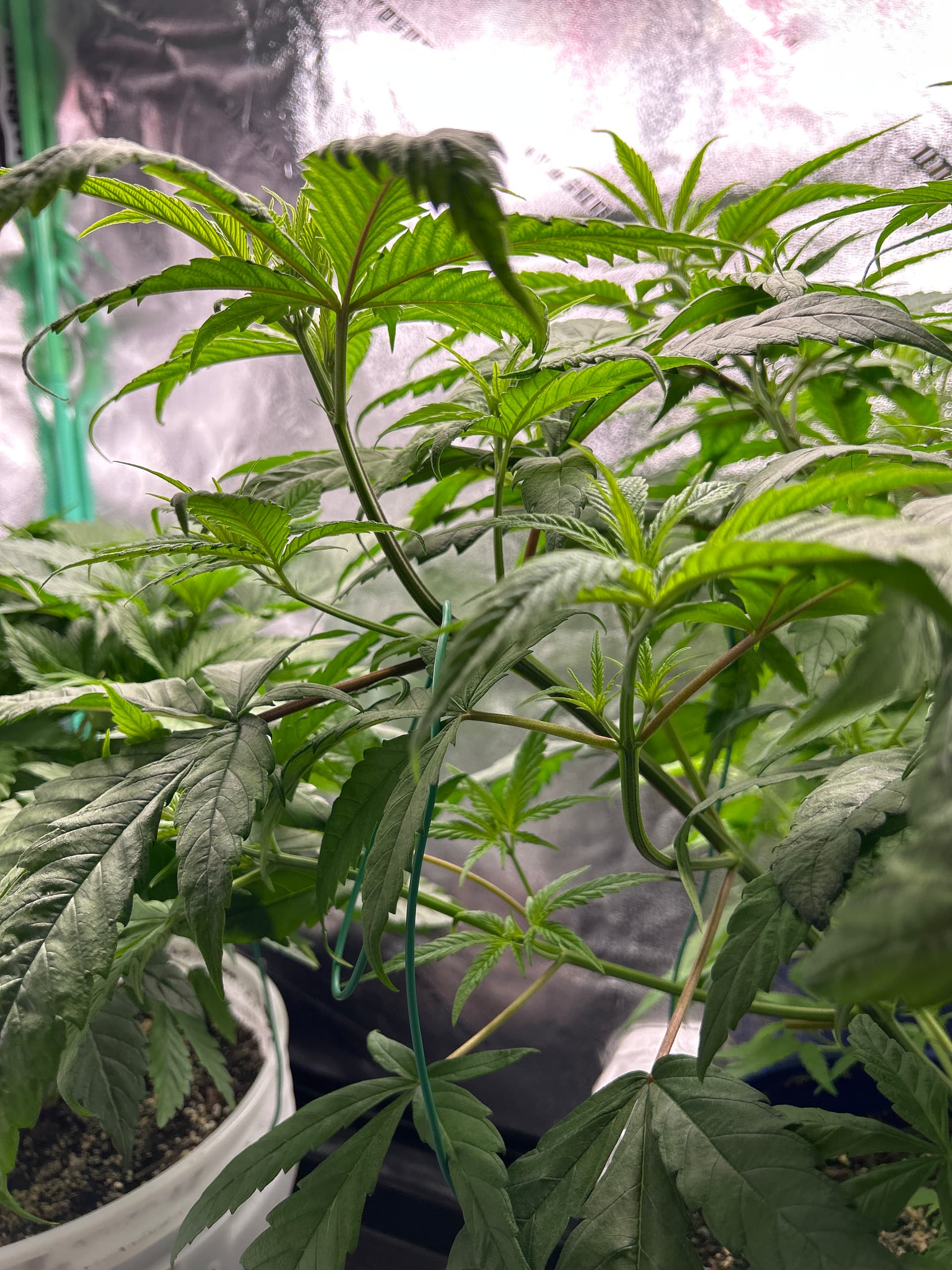 Day 2 of flowering. These ladies liked the training. Jeez! I know they’re supposed to turn right back up, but I truly didn’t expect they’d all turn back in one day!