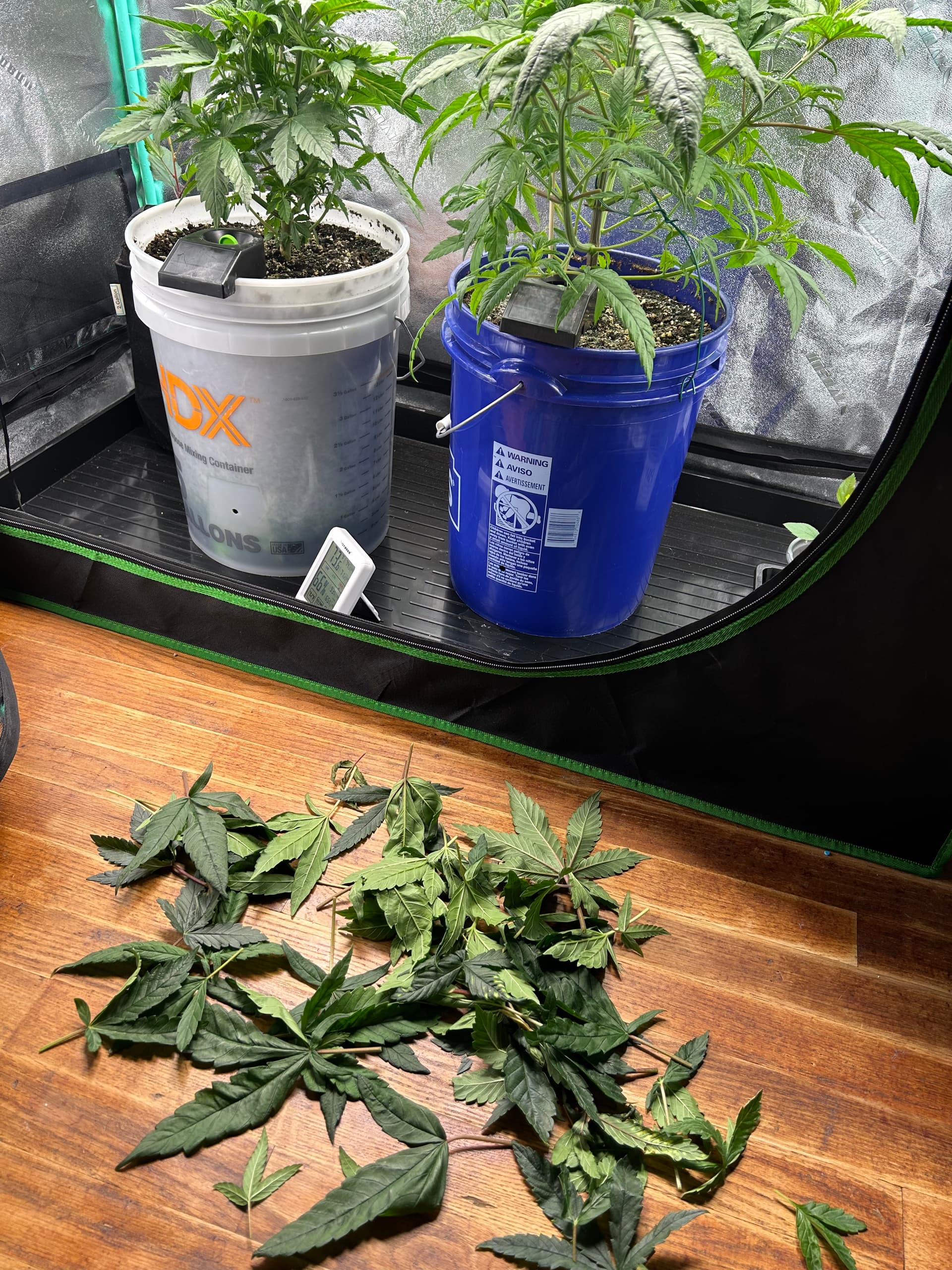 The grow goes on! I am having a great time with the GroBuckets, learning to trim/defoliate, and maxing out my tent’s height capacity.