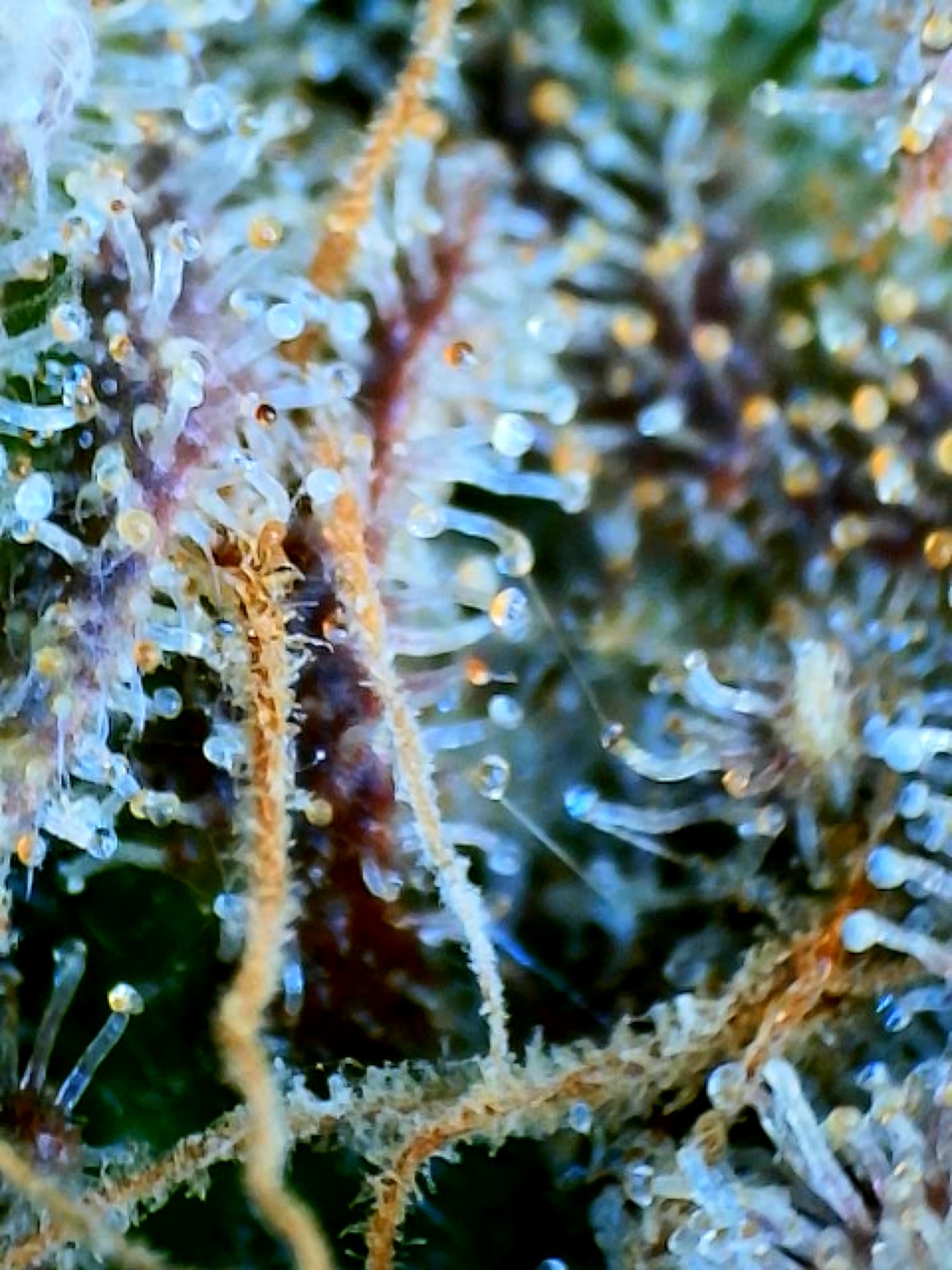 I am better with my jeweler’s loupe and had been using that one exclusively. Unfortunately, I was missing out. When I endured the frustration and finally got a few pics of the Zweet Inzanity trichomes, I see there are many ambers.
