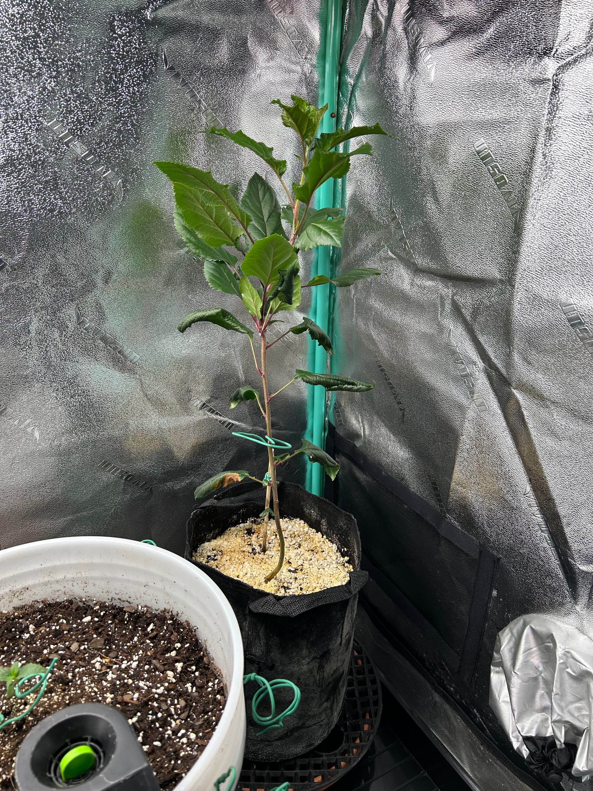 The threat of frost is pretty much over here in SE Virginia (zone 8a), so my apple tree has been getting a little time outdoors whenever the weather has been good. I think I’ll plant it in the ground this weekend.