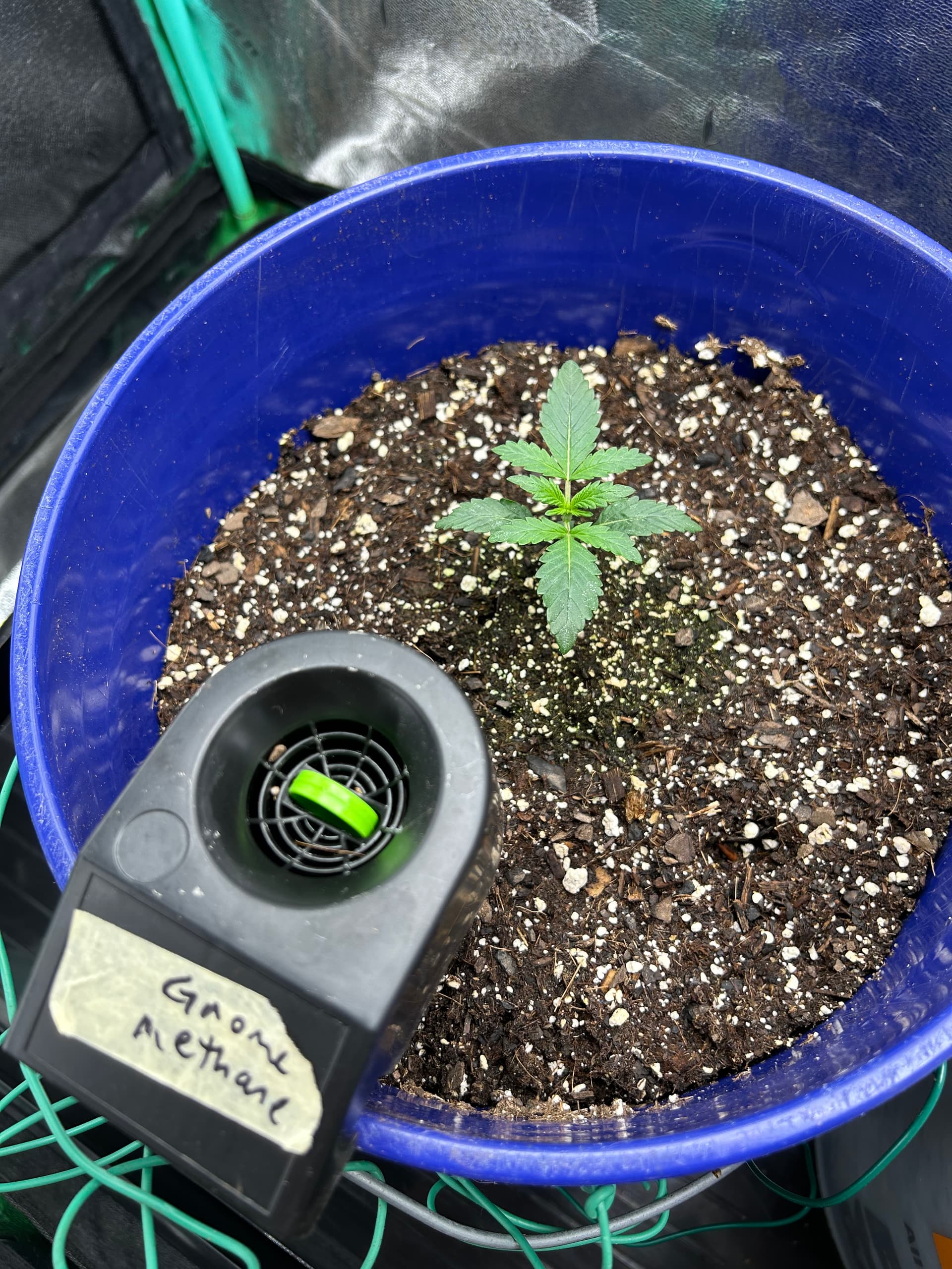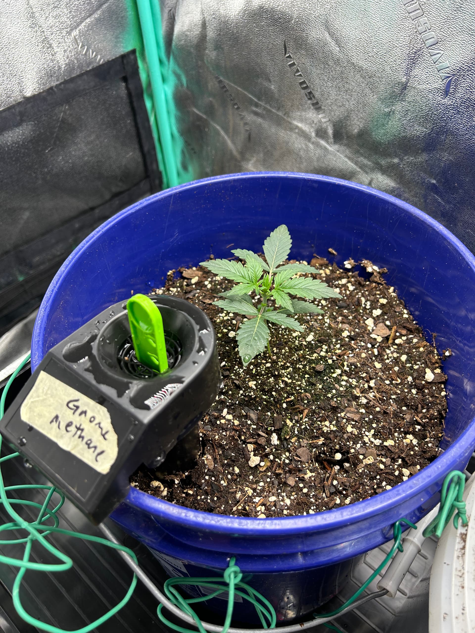 All is going along just fine with my little auto grow. I applied another dose of BBP (1.5 ml/4 oz rain water) this morning. @TheMadFlascher, thanks for your reply! I bet the rain water mix is the source of the white spots. Also, I crumbled up a chunk of mosquito dunk and sprinkled it around the top of the soil, as I’m seeing some little flies. Last and most important, I filled the reservoirs and not planning to top water any more!