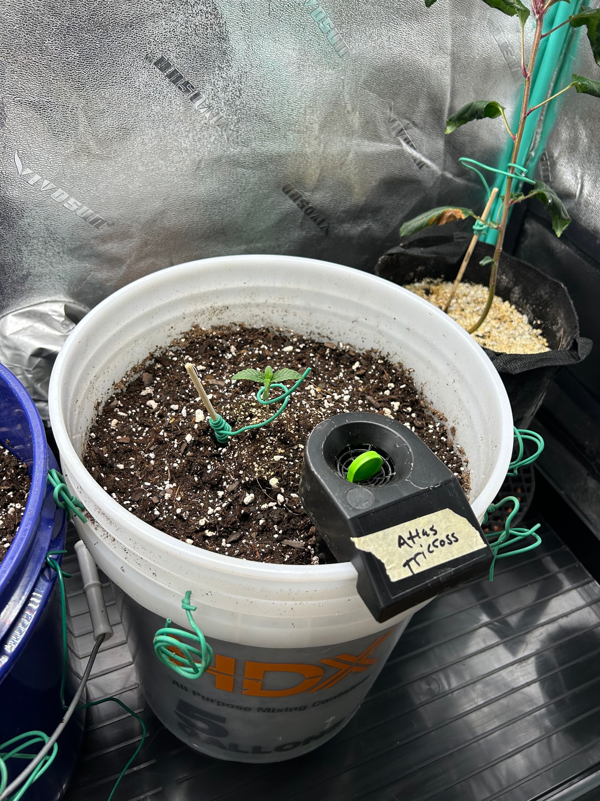 As you can tell, I repotted those baby plants very, very early. I did this in order to try to avoid stunting the plants. They are autos, so who knows?? I was able to keep the soil mostly together, despite the roots not having fully colonized. After transplanting, I watered from the top with my mist sprayer in order to avoid being too rough. I’ll top water again this afternoon and then start watering from the bottom. Right now, the light is about 18” above the plants and set to about 40%.