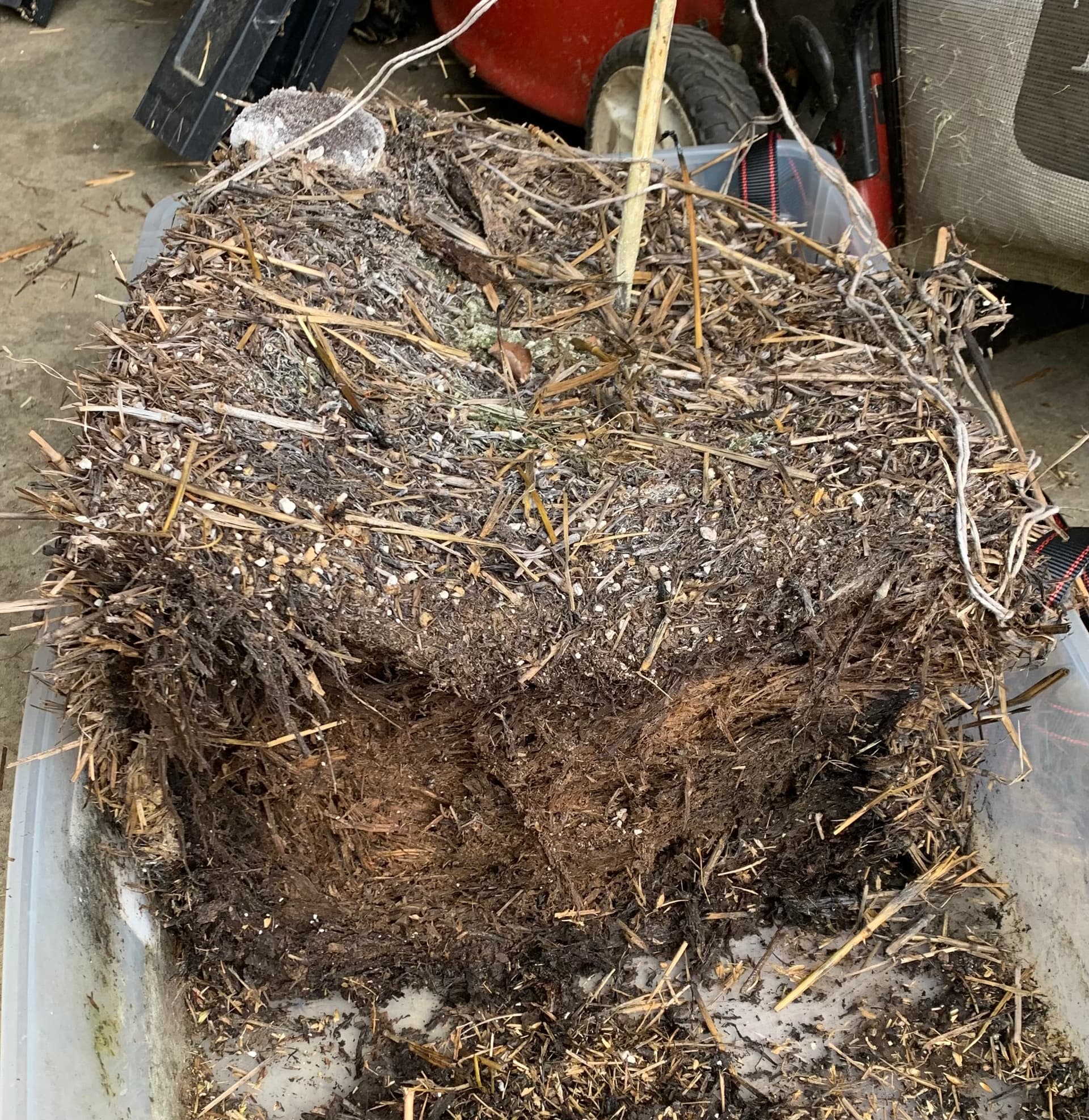 Since I’m going to be busting up the rest of this bale to use in my living soil project, I pulled this little bit off to save.