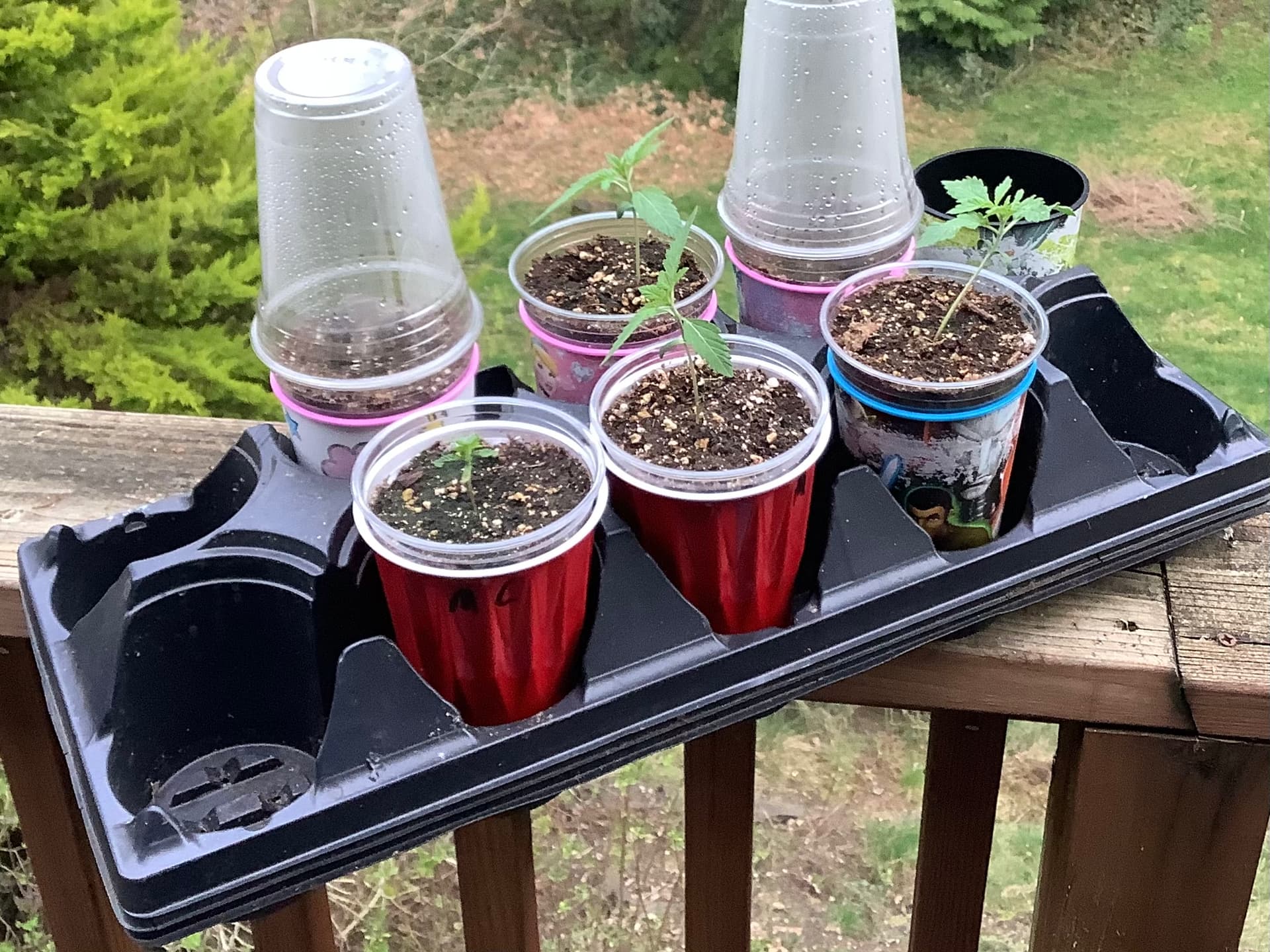 2 Here’s where we have to start rearranging pictures. Here the clones are this morning. They stayed outside all day and got a little rained on as a bonus.