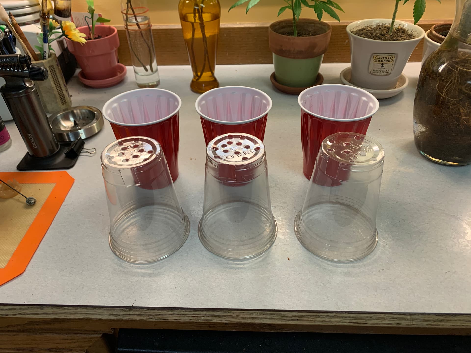 omg! that gives me an idea! and now I have to remember to go to lowes or home depot tomorrow to try and get some of those 8-pack solo-cup planter holder things. Thanks for the idea @happilyretired !