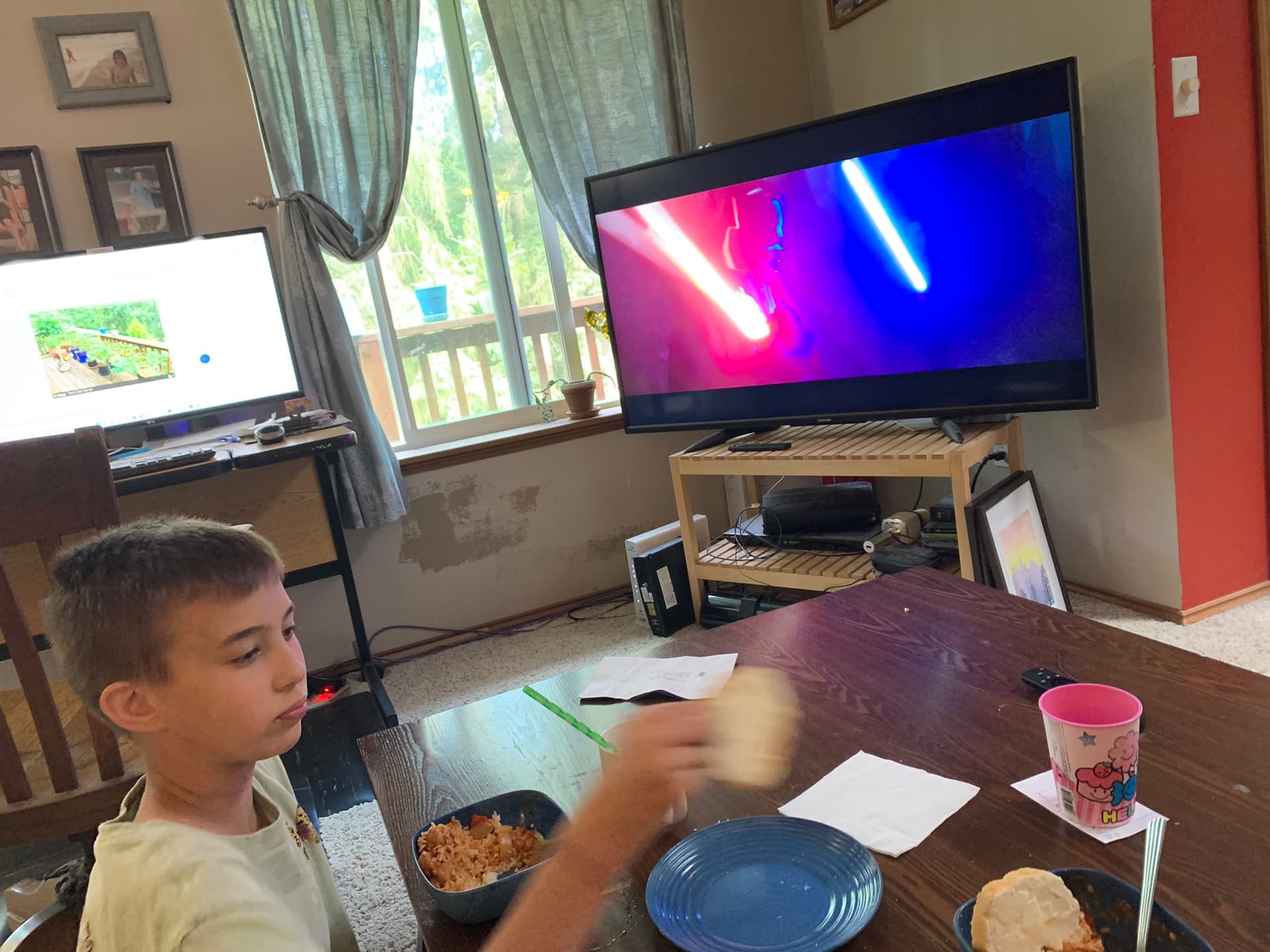 My daughter had the nerve to look at me in the middle of this lightsaber duel and ask me “who won?”