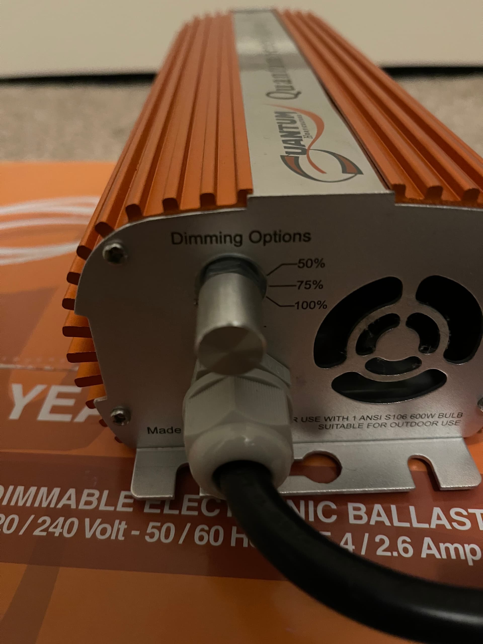 Quantum 600W dimmable electronic ballast. 120/240 volt - 50/60 hertz - 5.4/2.6 amp