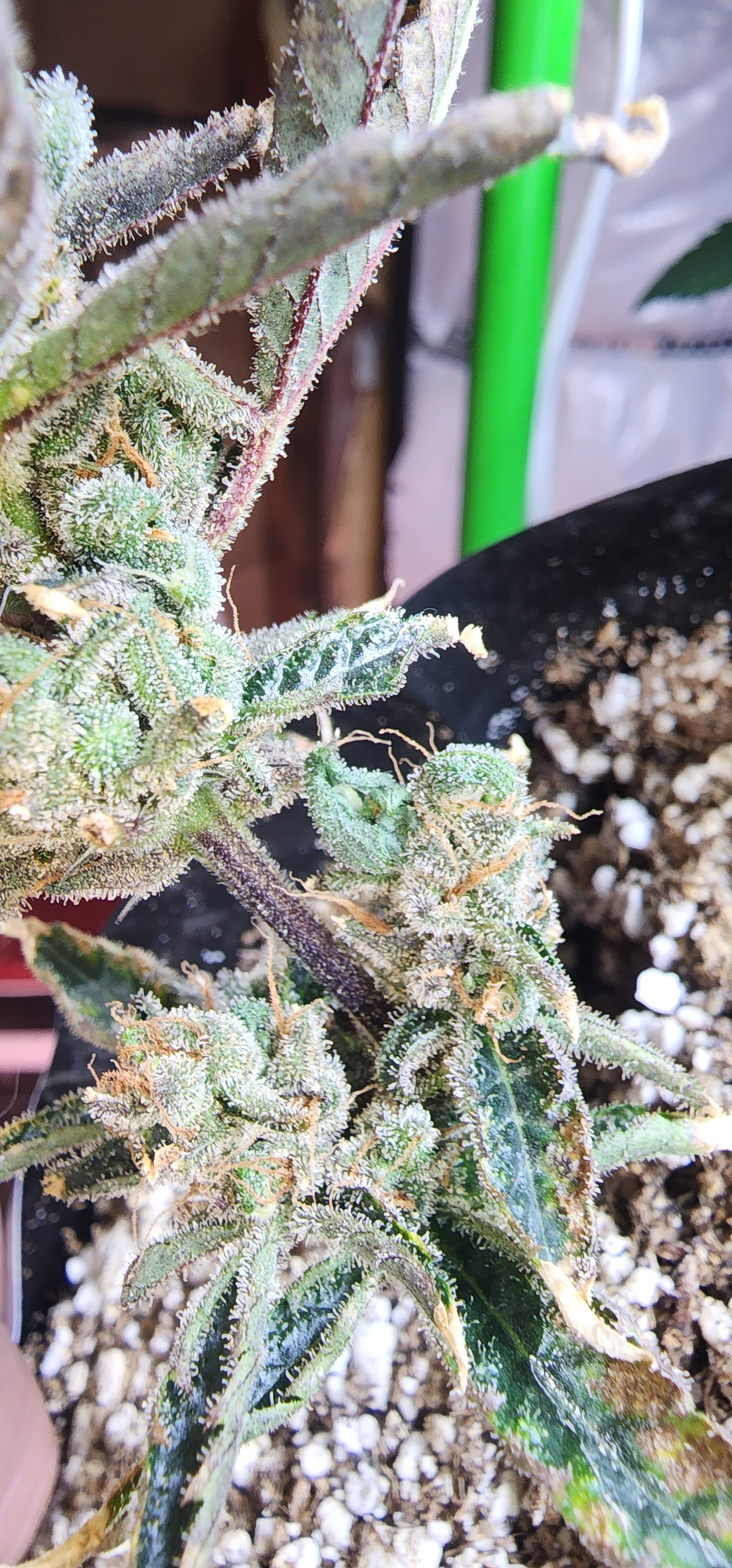 These 2 are struggling but there definitely finally morphing. Its hard to see but there are a few bracts that are forming into leaves. the top of the last pic the top is trying to morph into a leaf. Over the next 2 days we should see more action.
