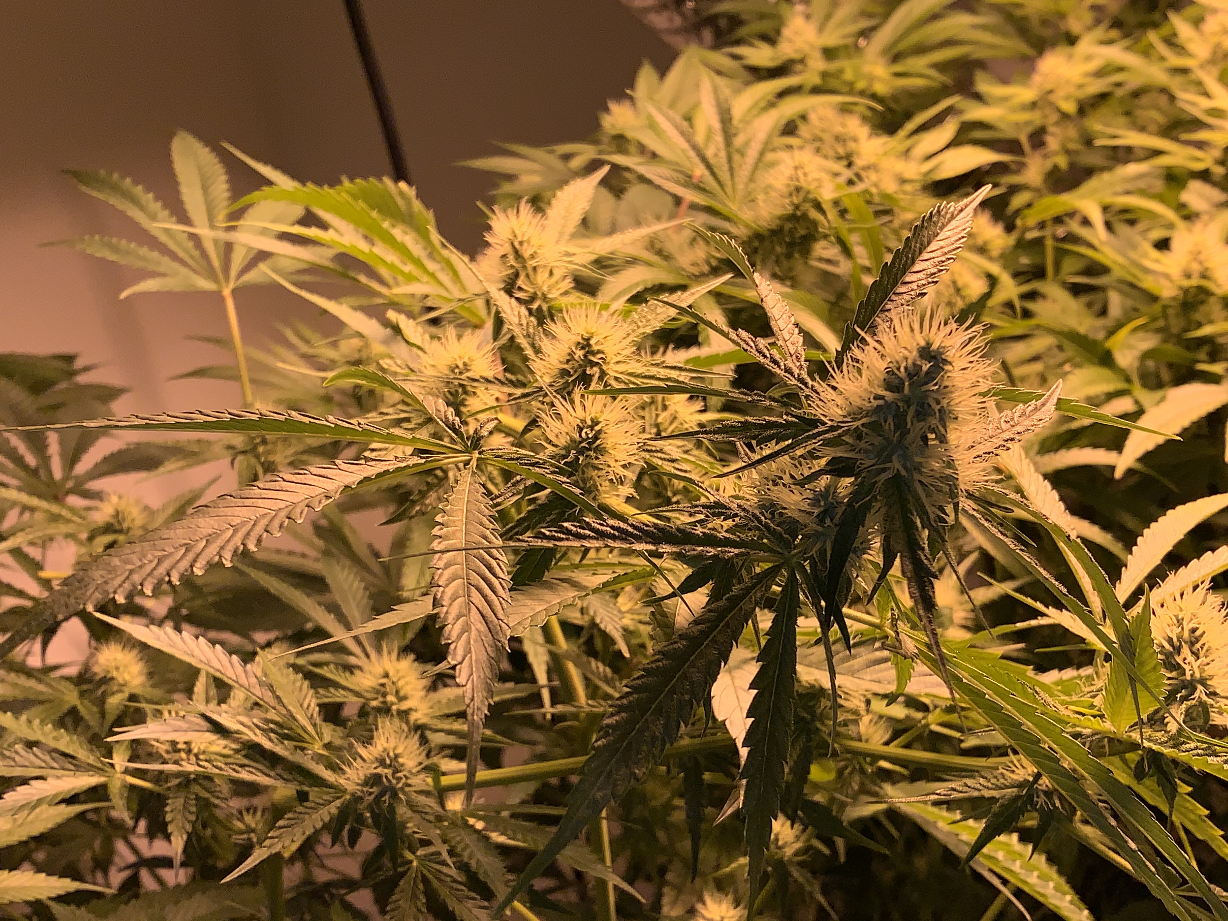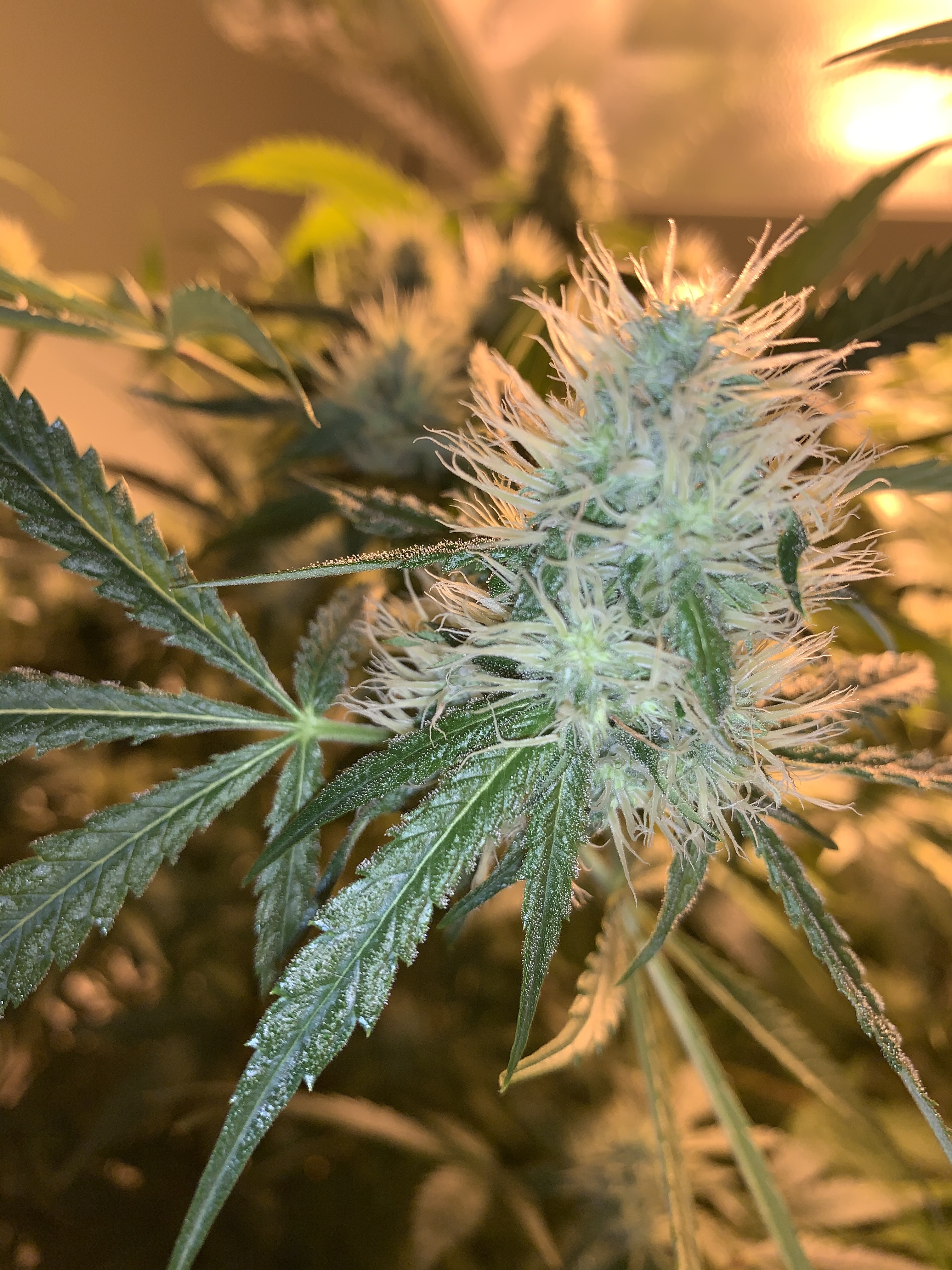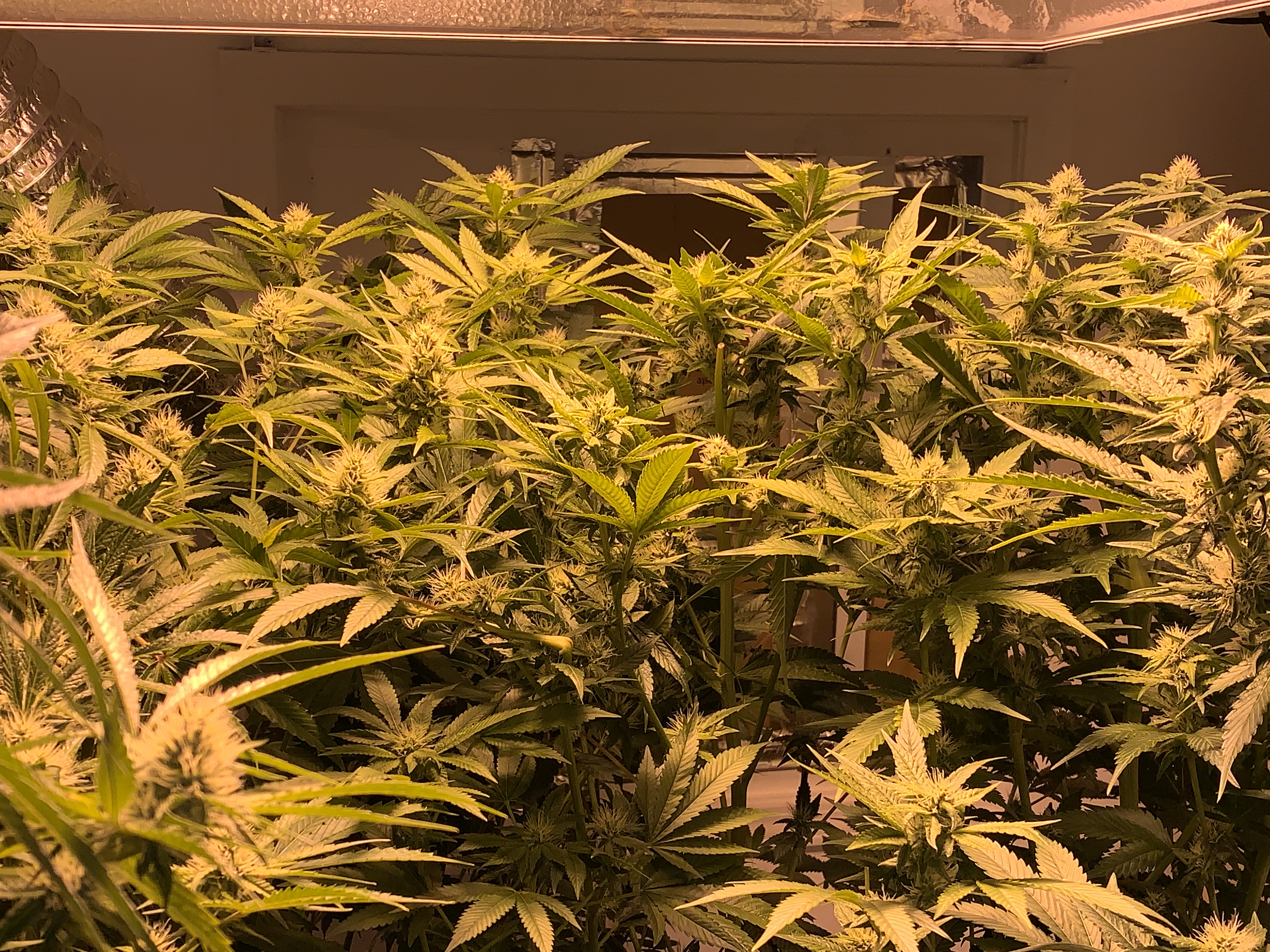 Few New pics, buds getting frosty and fattening up. Adding 10 gallons of water every other day to the hydro reservoir, dirt ladies getting watered every other as well. Did some lower end clean up. Cleared out the centers some more let the lowers I left get some more light