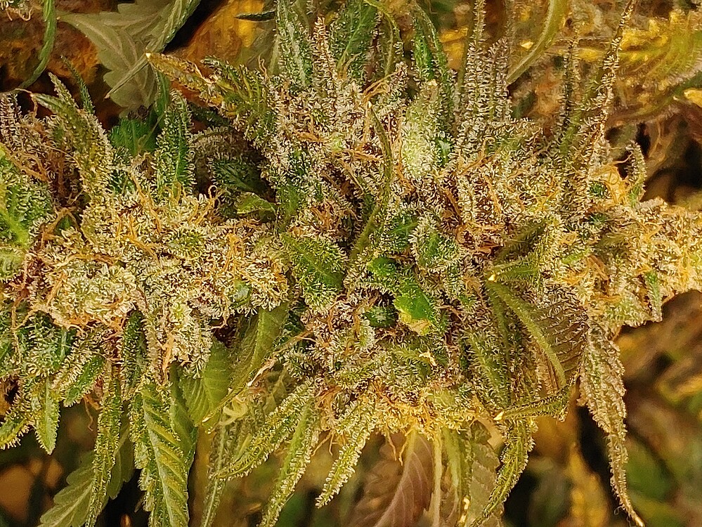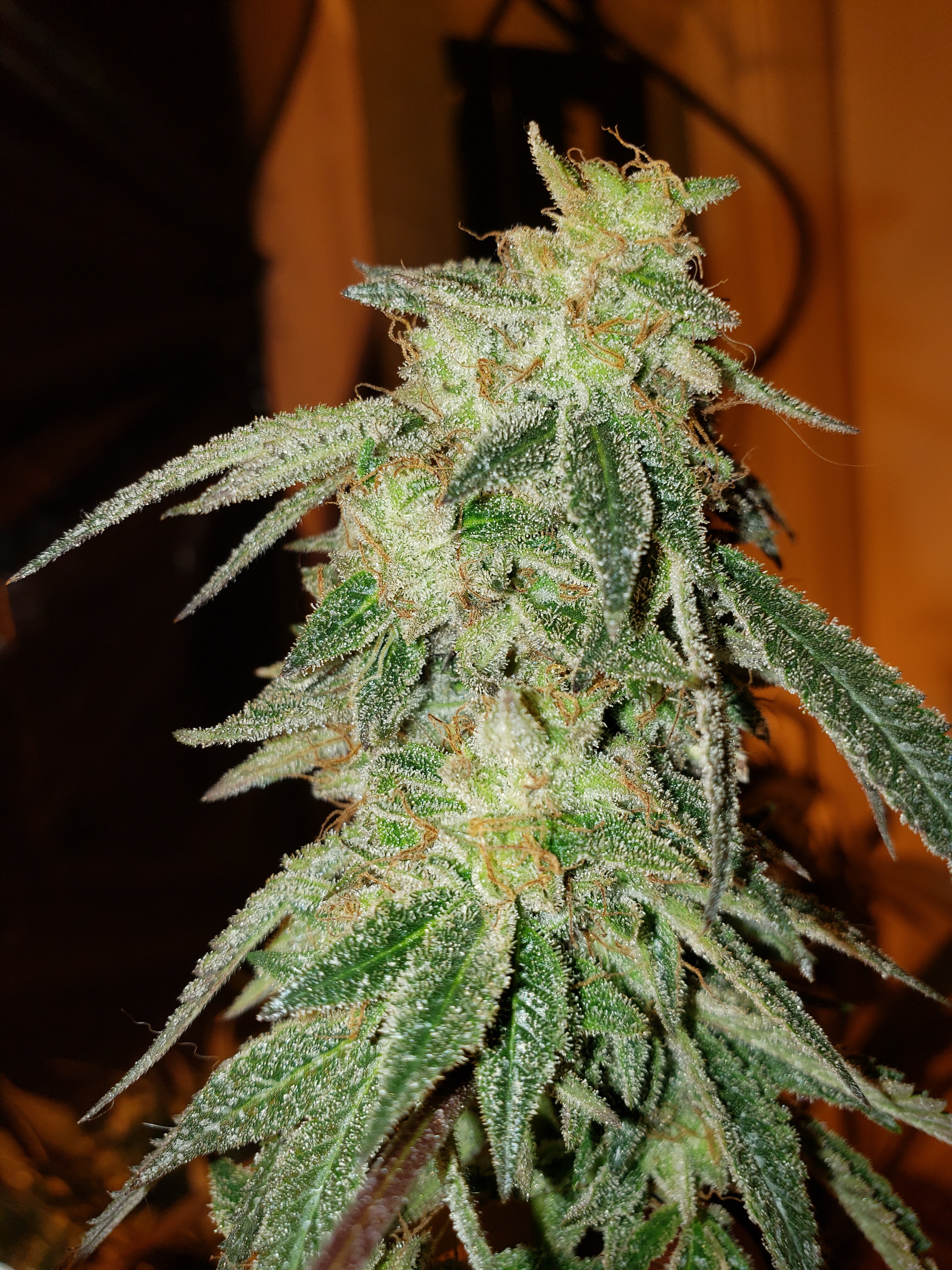 This strain has an earthy kush terpene profile going on. After curing for 10 days I’m starting to catch a faint gassy smell coming out now. Very unique