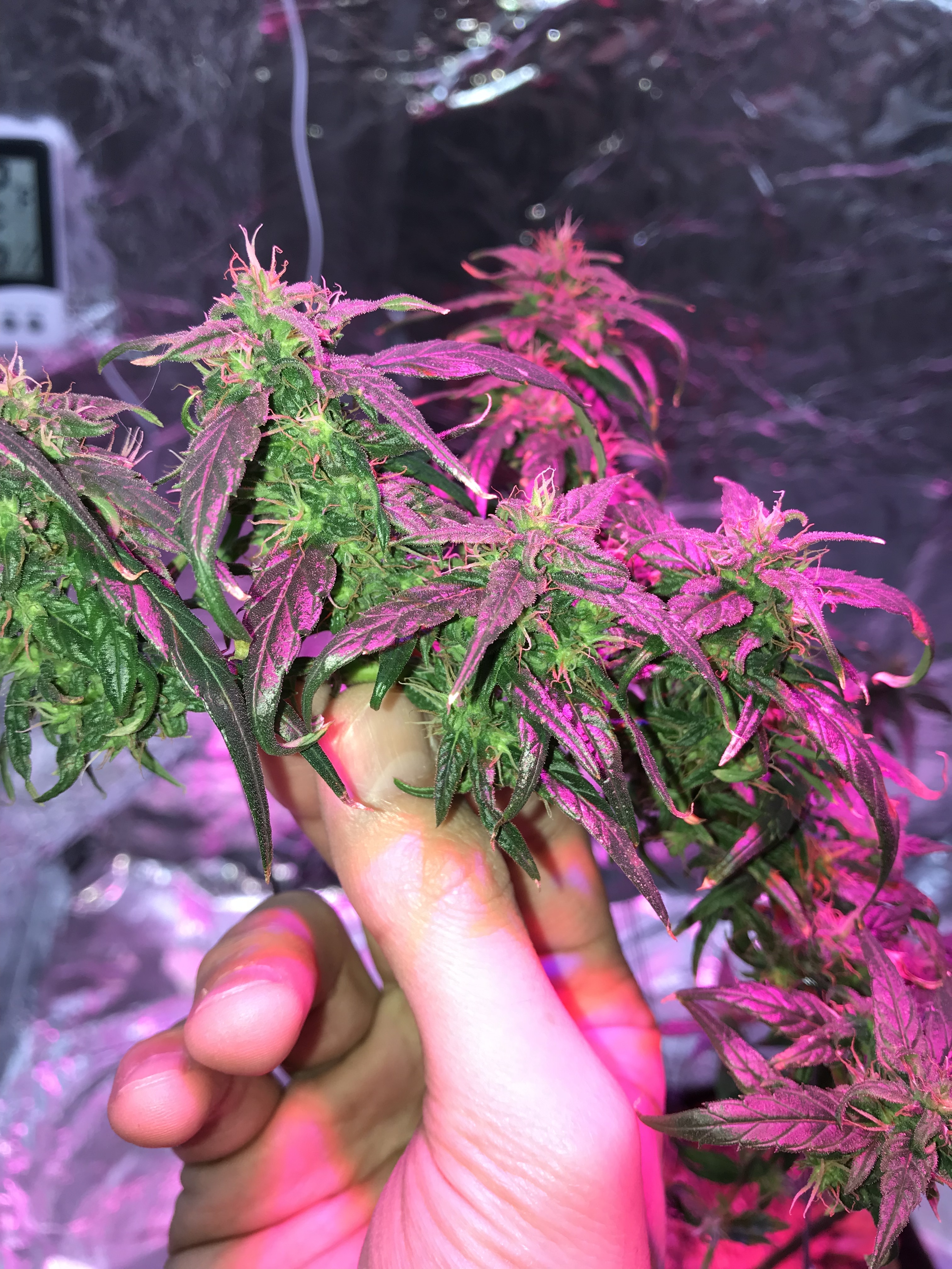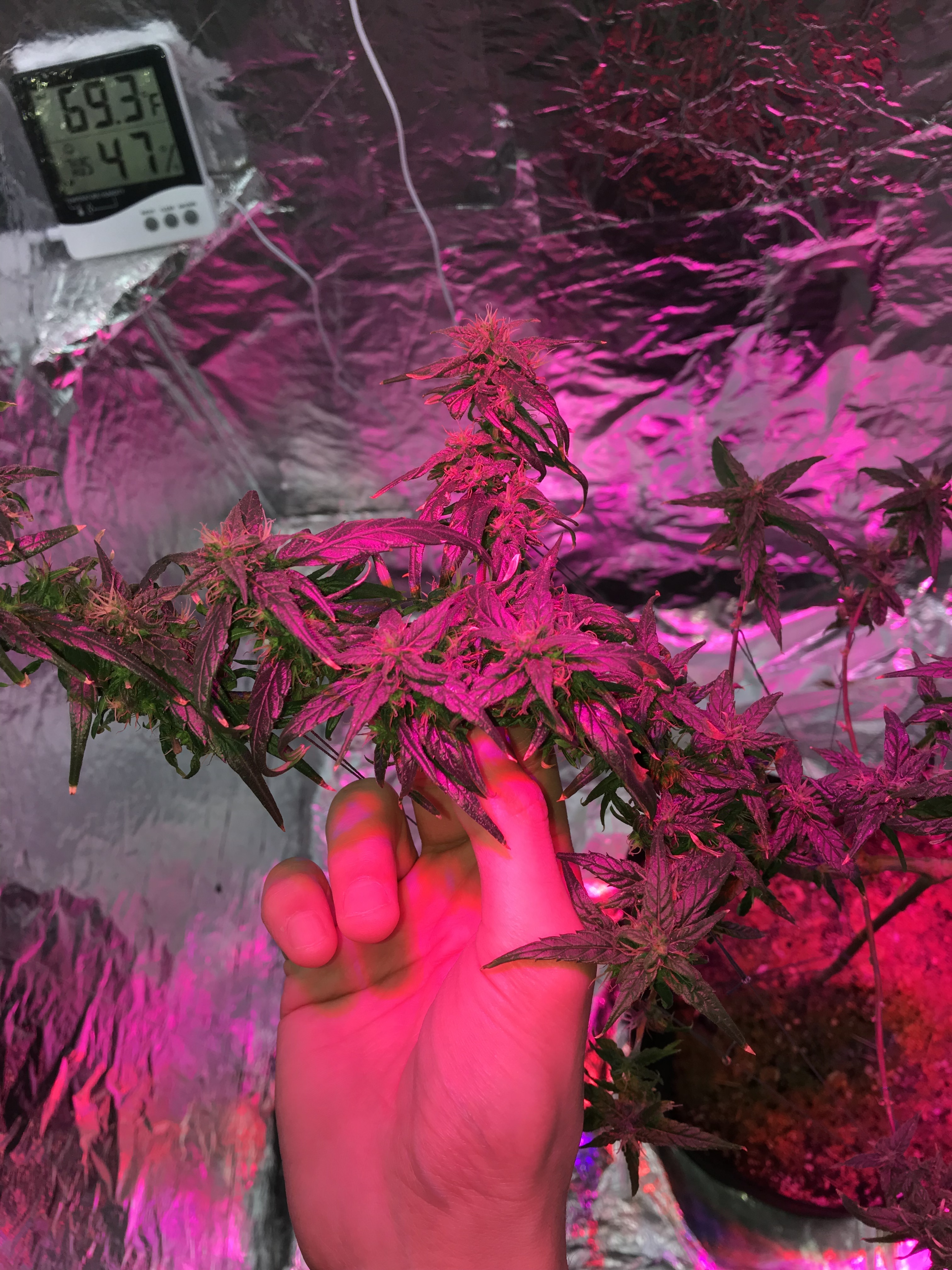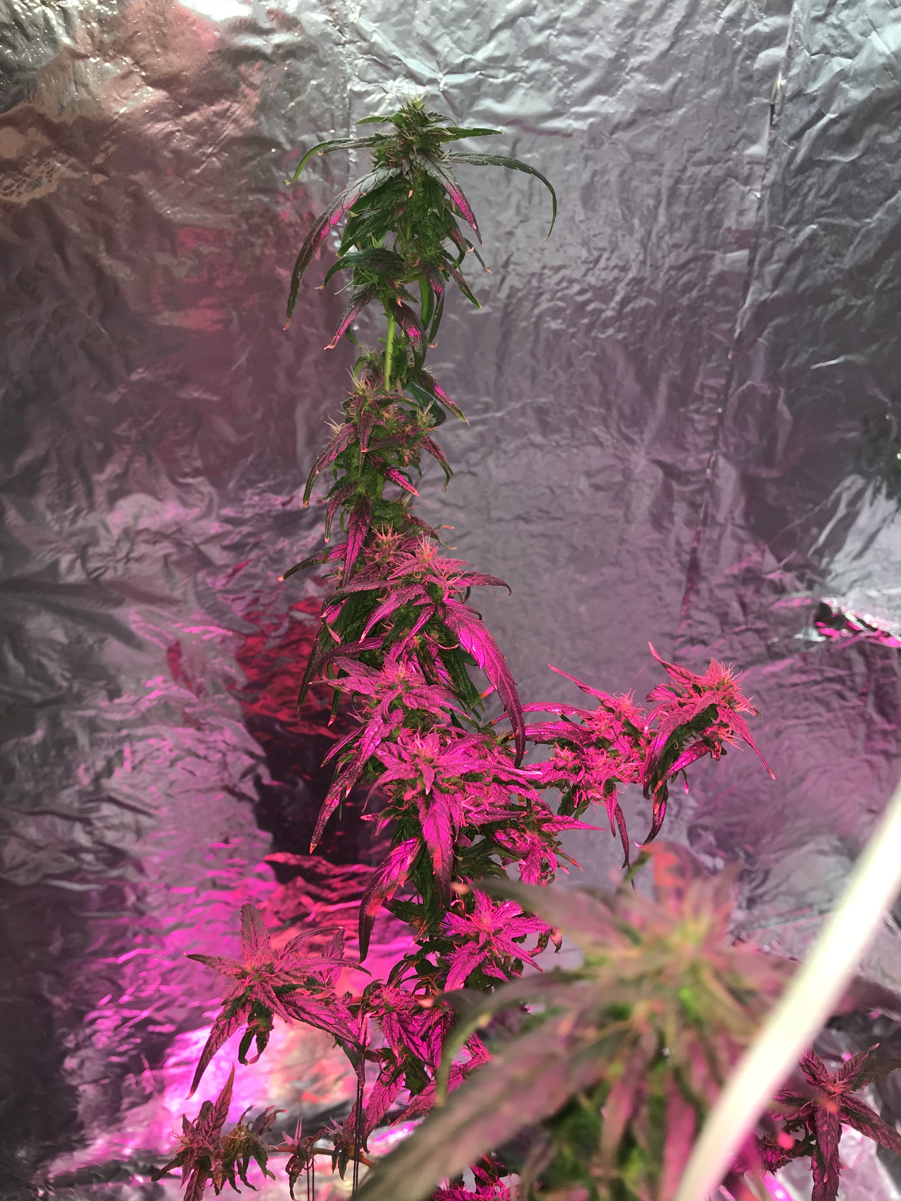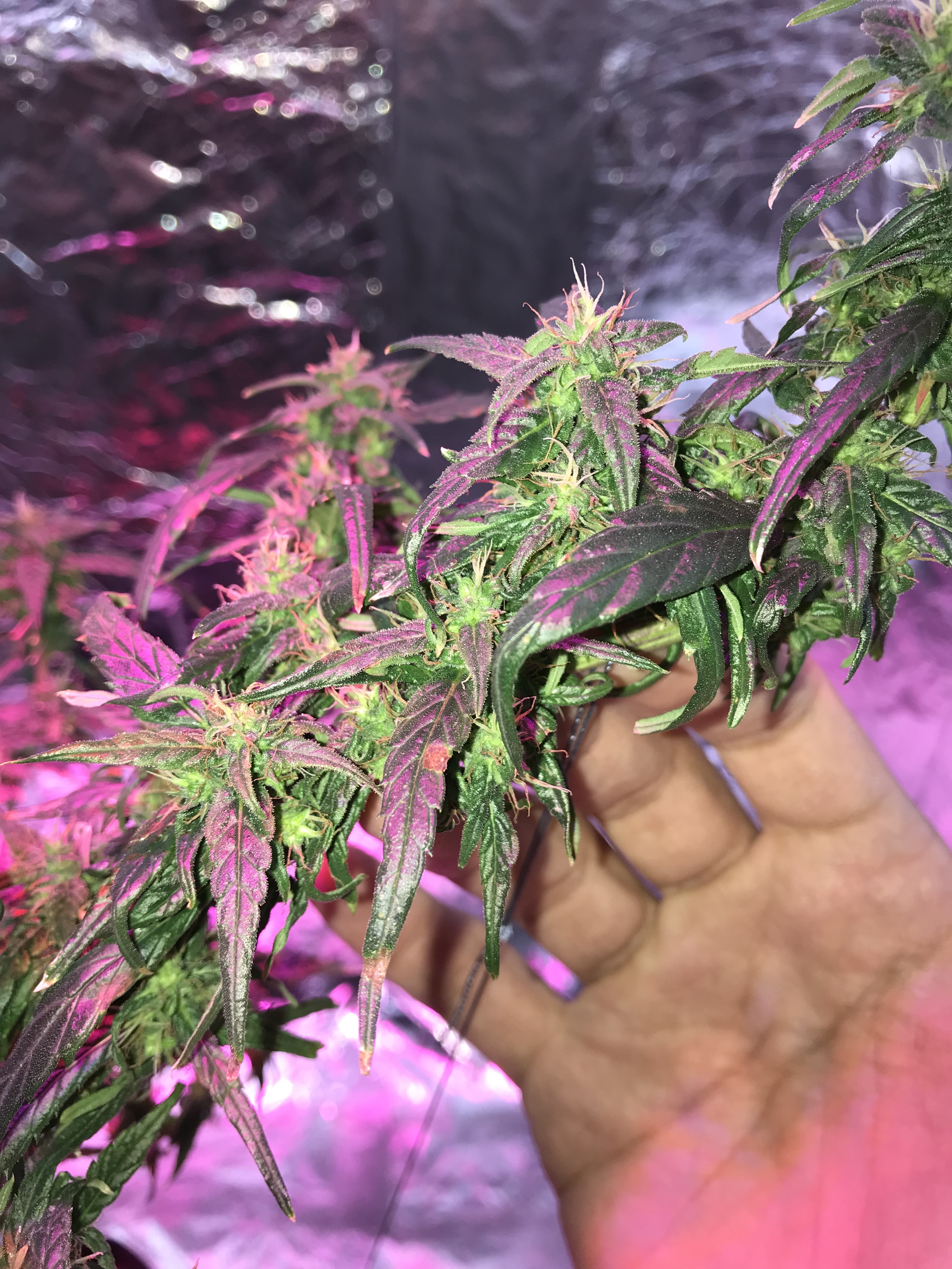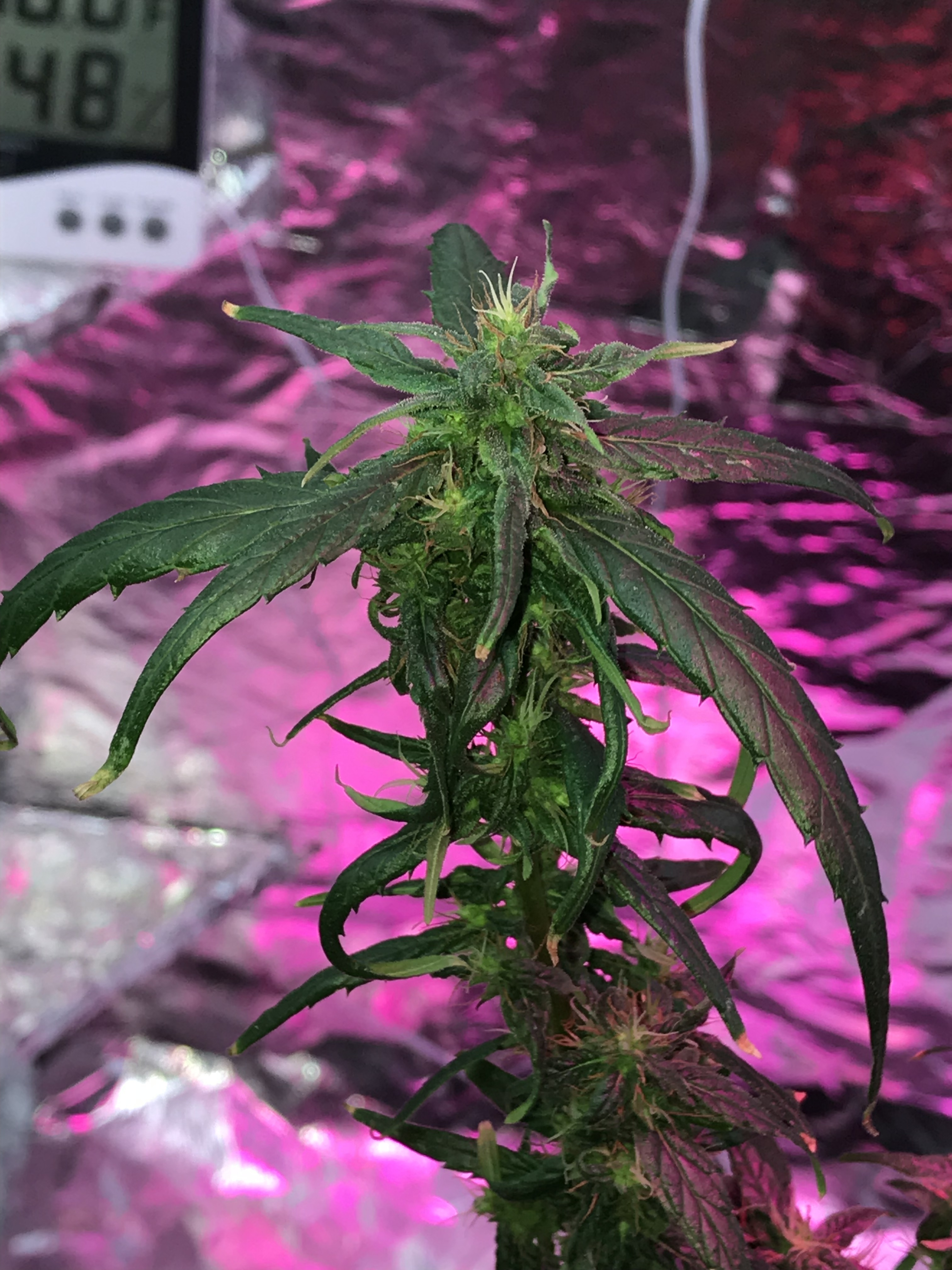 Day 38 of flowering state, and so far so perfect growth. I supplied the plant with some of crushed Galangal roots, I think to sterilize the plant’s rhizosphere and the soil, and to support the whole plant with more powerful in the same time. Additionally, supplied her with some of crushed Moringa leaves, I strewed that all together on the soil surface, and then I sprayed it with some of water to allow the plant absorb that powder gradually, once every day, to avoid the overabundance of watering till the all powder dissolve. Also to avoid the plant absorb the overdose of the crushed Galangal roots which I strewed it, because it’s so spicy.