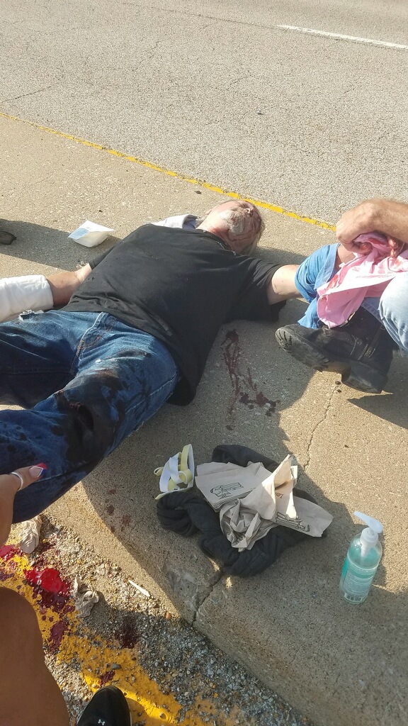 Yeah pretty gruesome this was at the hospital it was worse when it happened. These are his bike and me taking care of him after he went down.