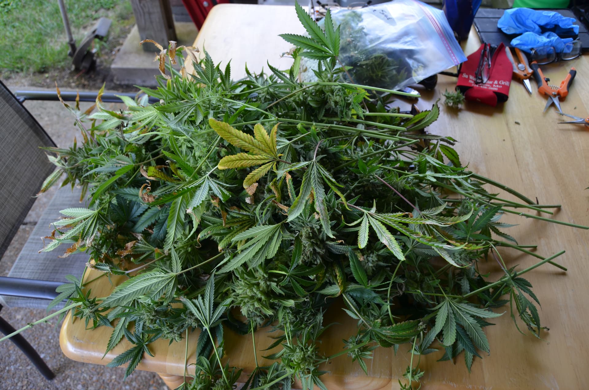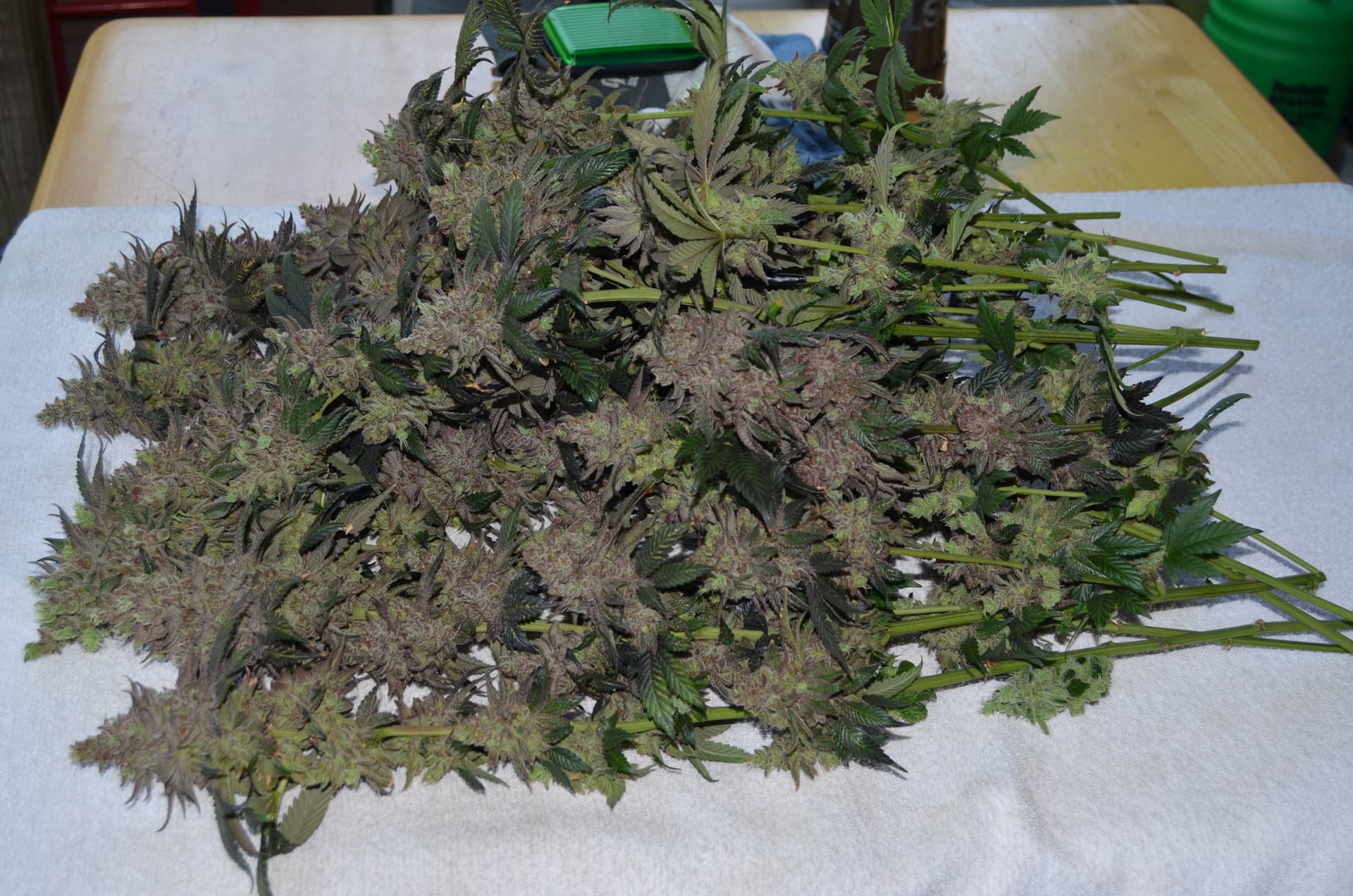 Took down the biggest of the Bruce Banner. Did the initial trim before dry and cure. This was about half of it, the other half was hanging. Nice yeild.