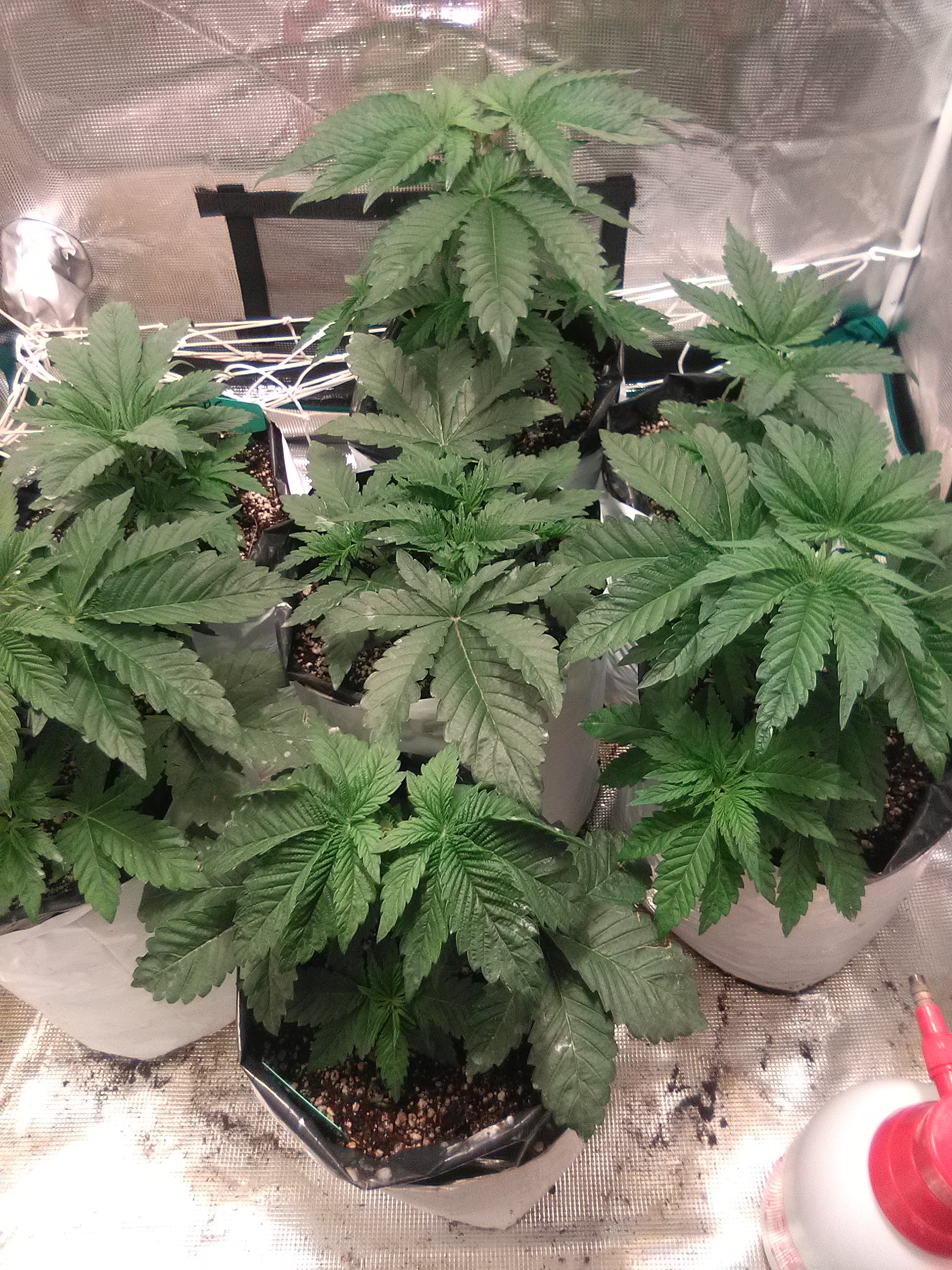So I believe I have the plants for the review in place. I think we are around week 7-8. Sex is just about visible on all plants. These girls have had heavy defol. And some HST. They are being preped for net training. Will be keeping a eye on them in the coming weeks to make sure they are 100% female.