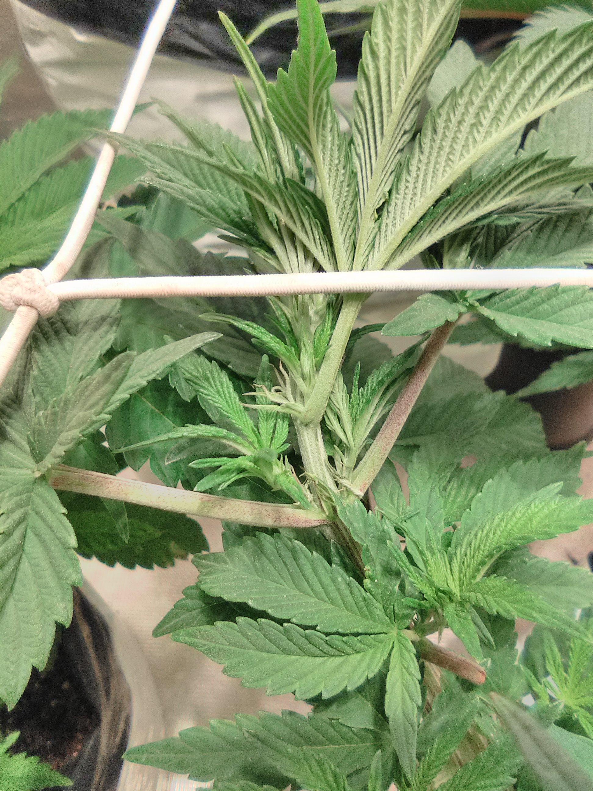 So here is the start of the secondary growth beginning. This as well as tertiary growth is key to heavy yield. Indoor growing takes time to get the results you want. Lots of hands on. Lots of TLC. I have one other to prep a little more. Will post her soon. This is the plant on the right. I have raised the net about a half inch off. Tucked a few fans. And defoled any in the way. We still want to remove any inward facing leaves, but that’s the next major defol before flower. For now we just took anything that was blocking nodes or new growth.