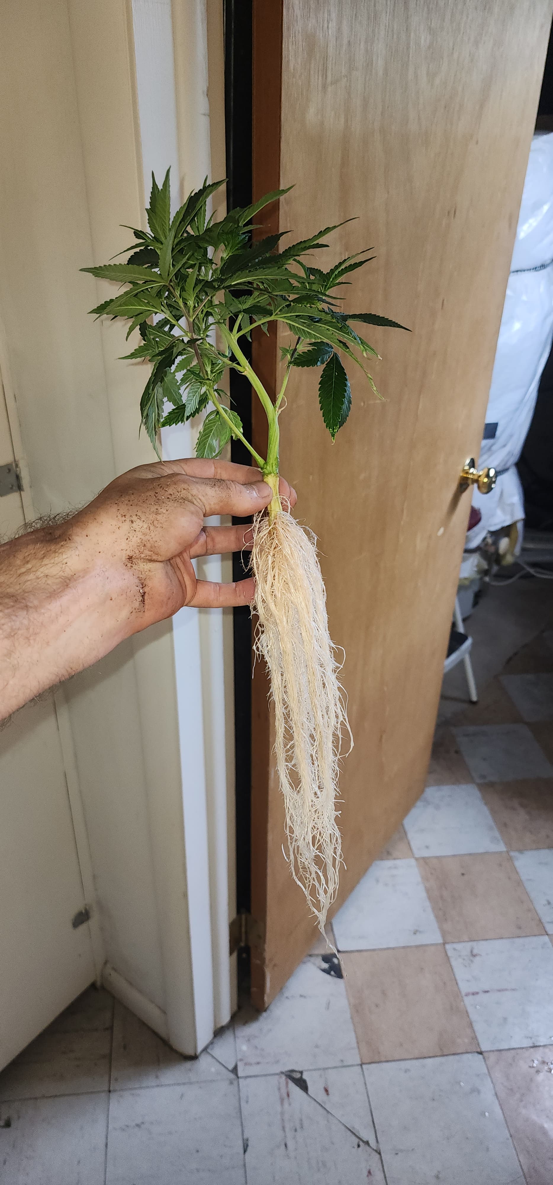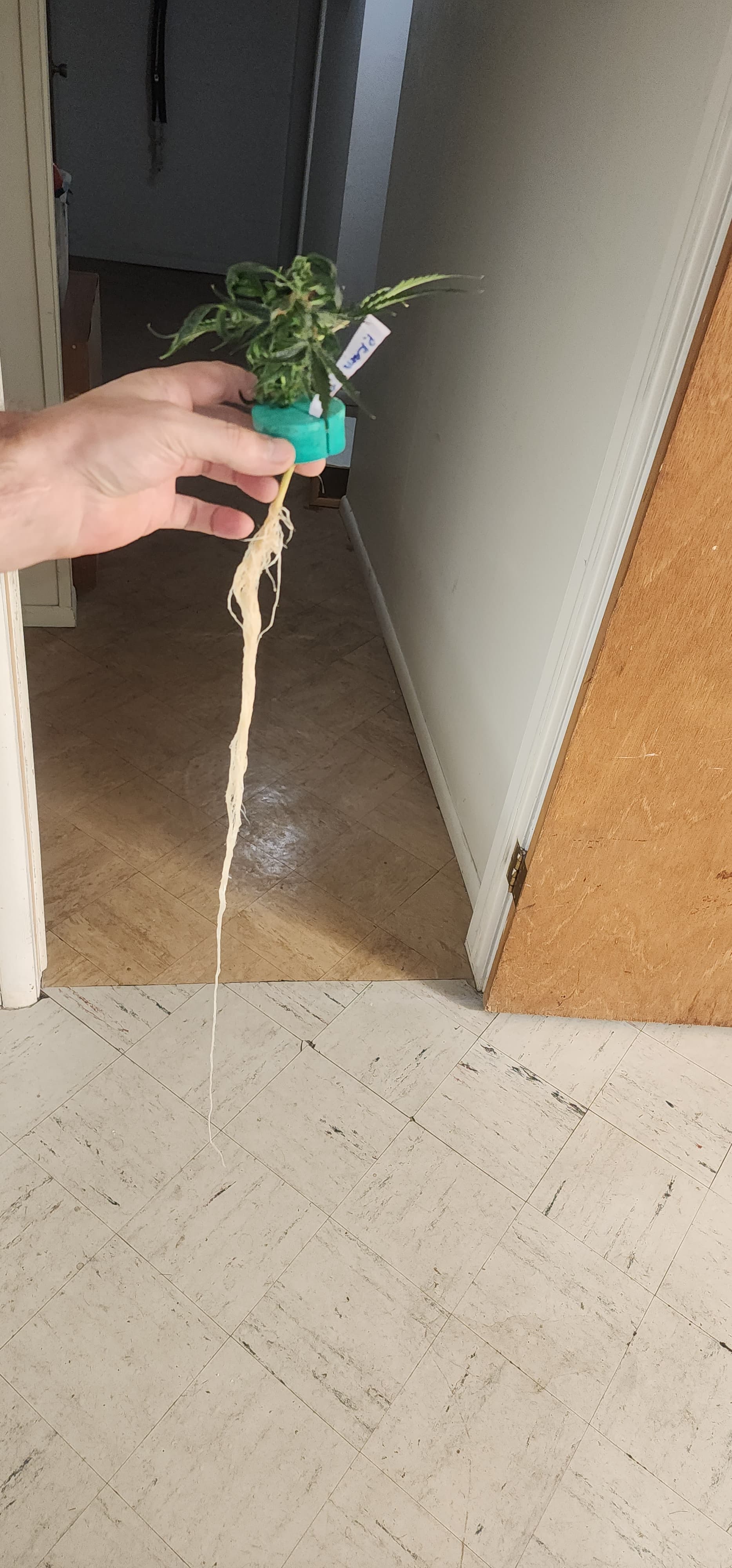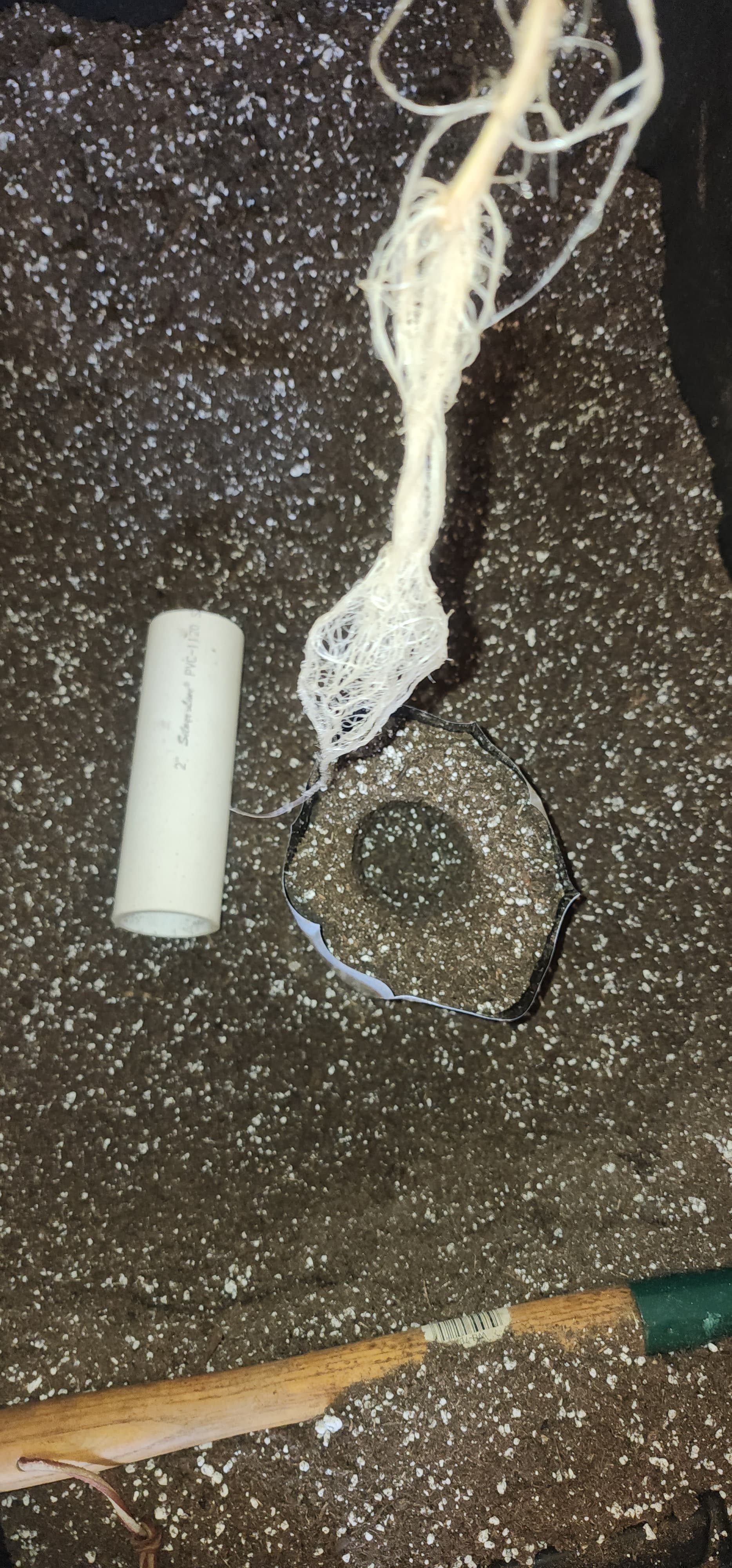 Got some longggg roots. I use this piece of pvc tube to make a nice hole for the clones roots. I always keep it in my promix container. Its awesome and saves me time.