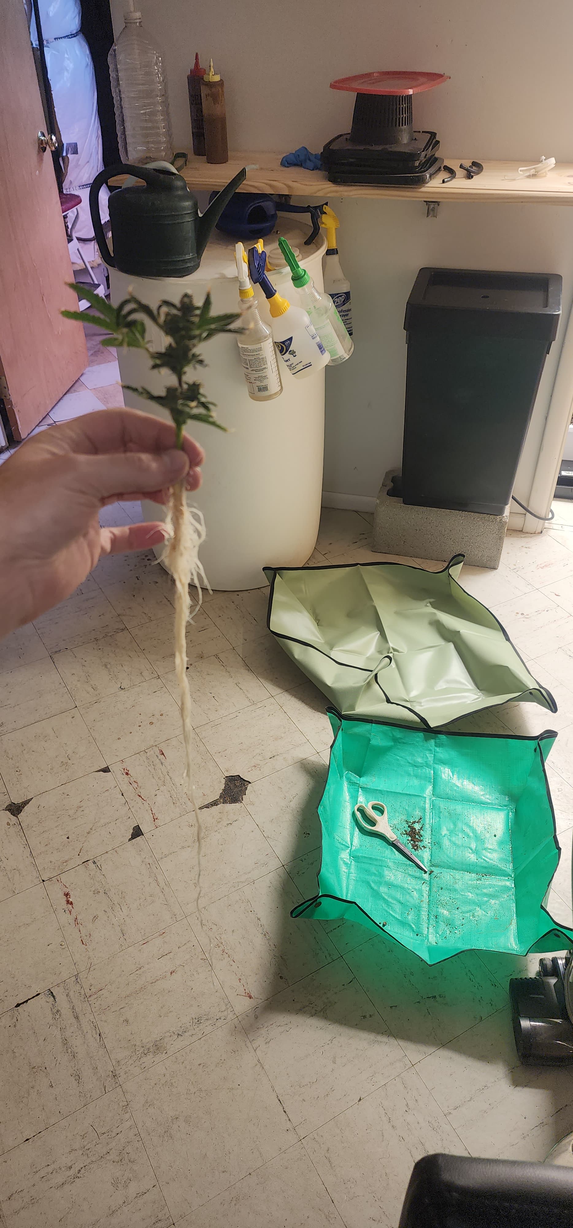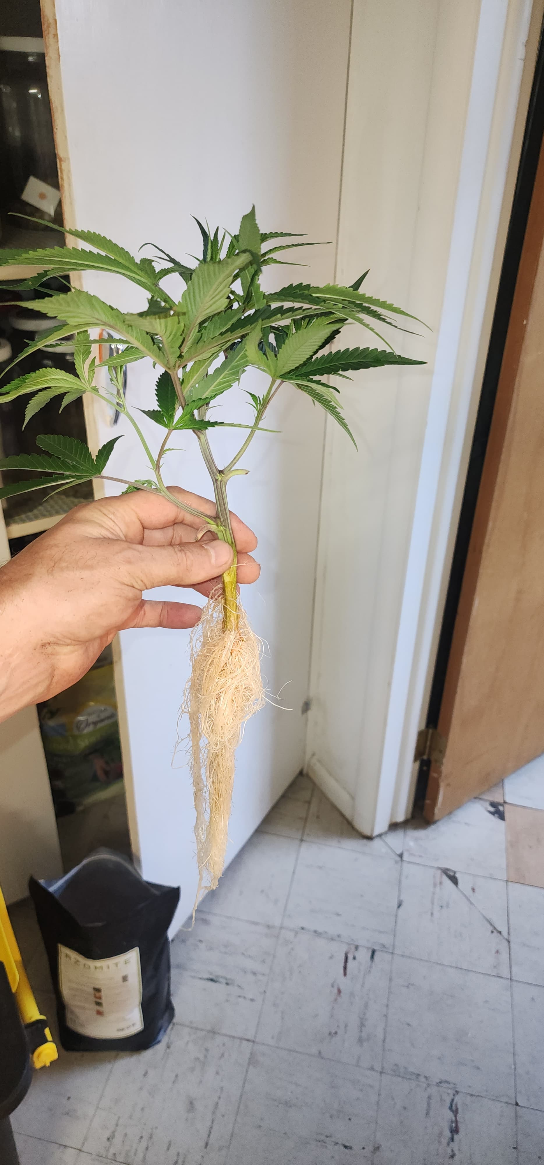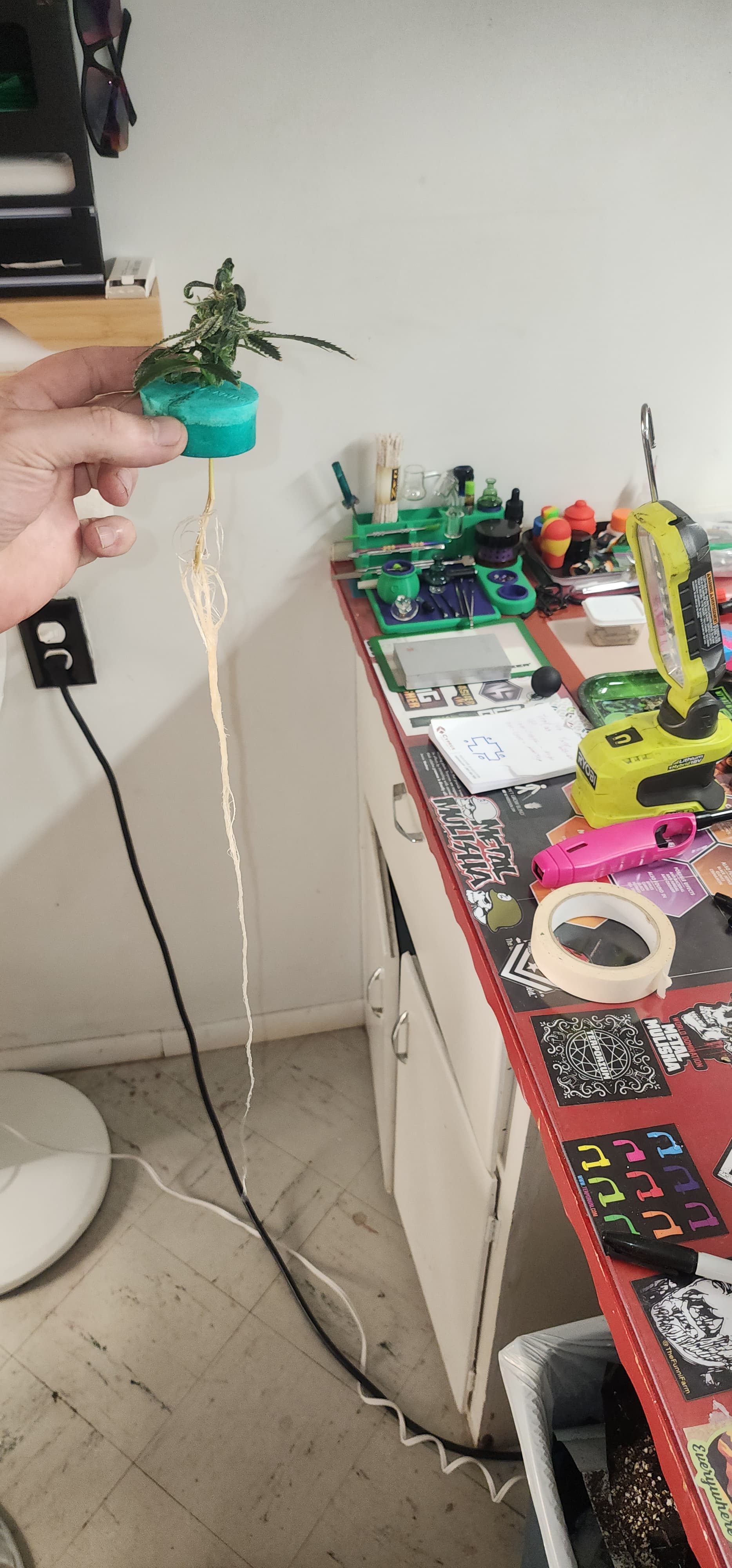 Got some longggg roots. I use this piece of pvc tube to make a nice hole for the clones roots. I always keep it in my promix container. Its awesome and saves me time.