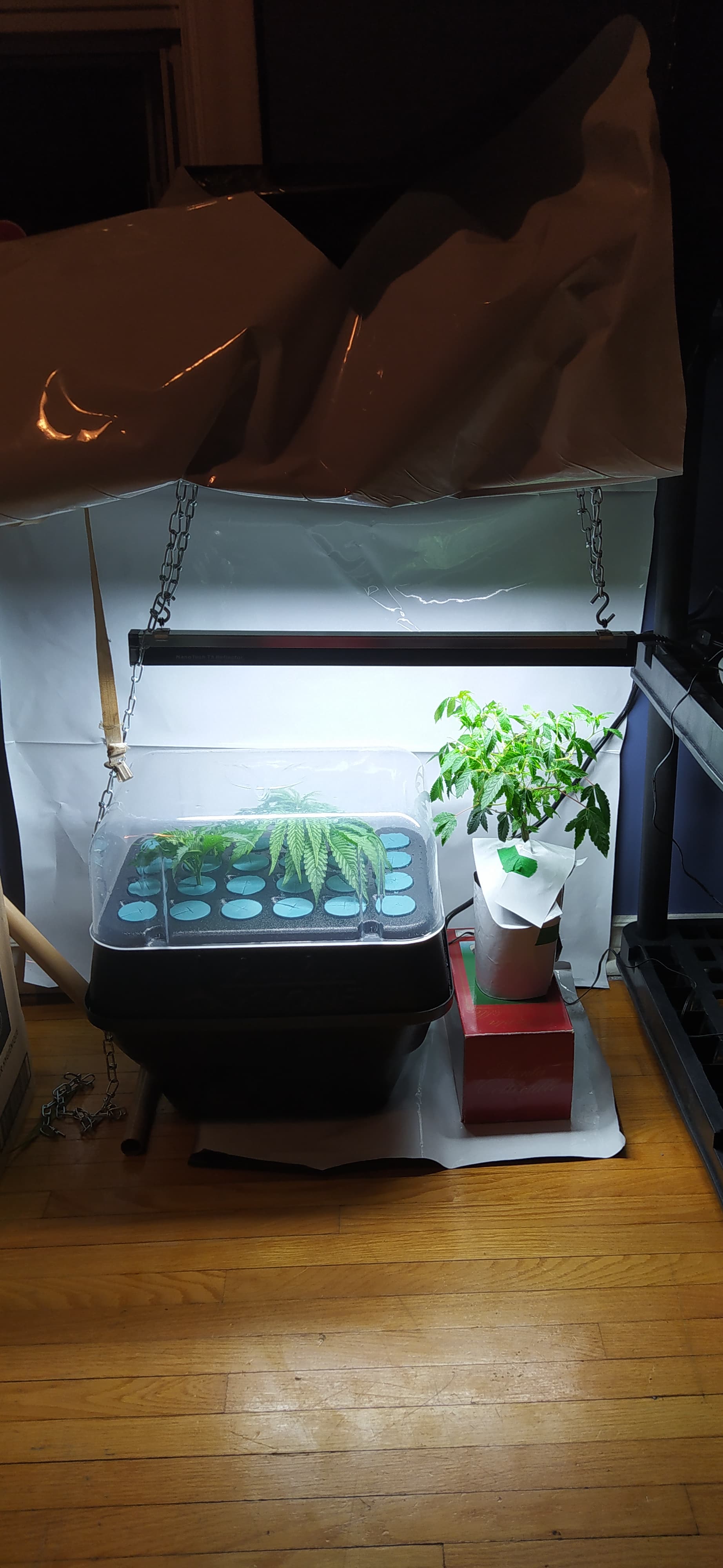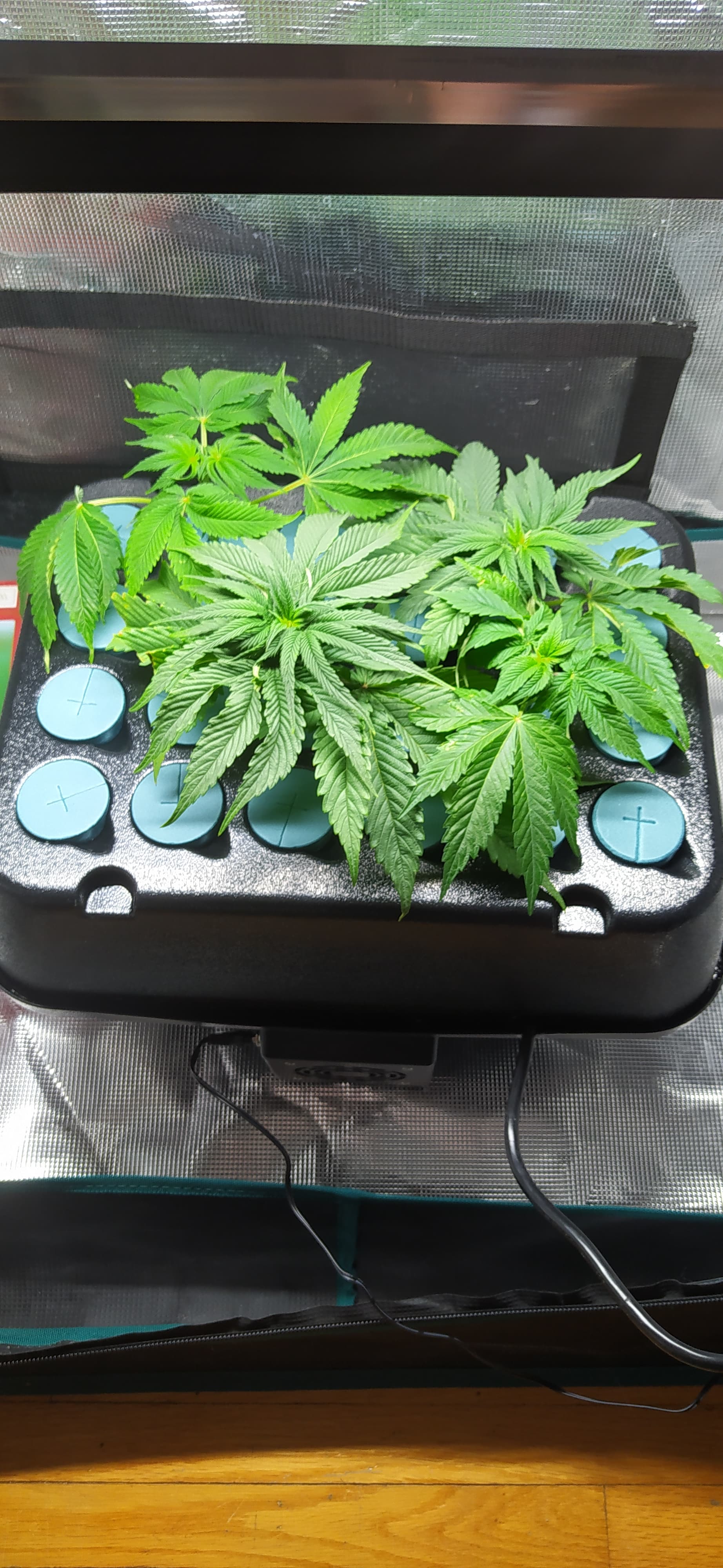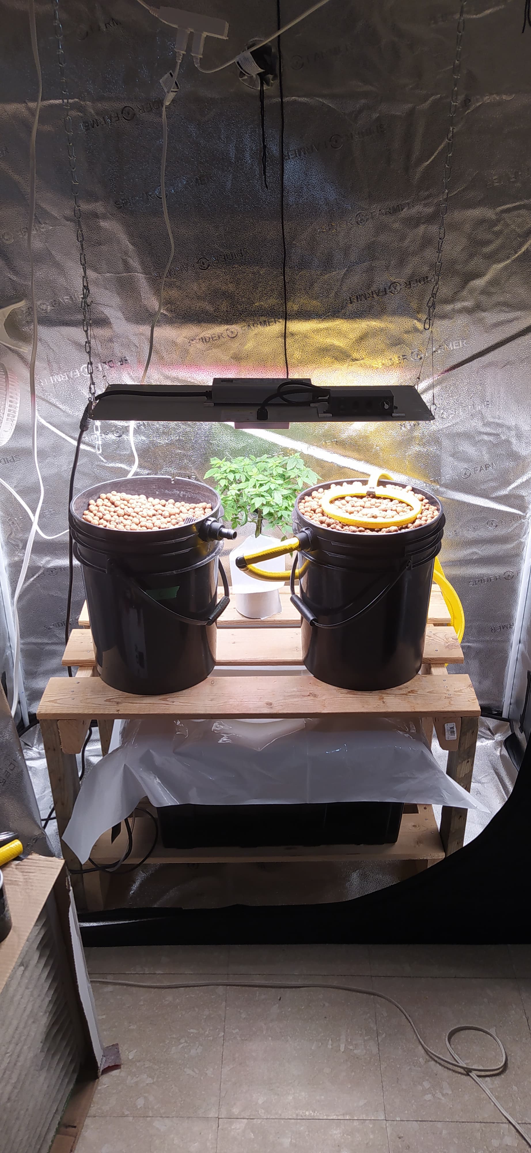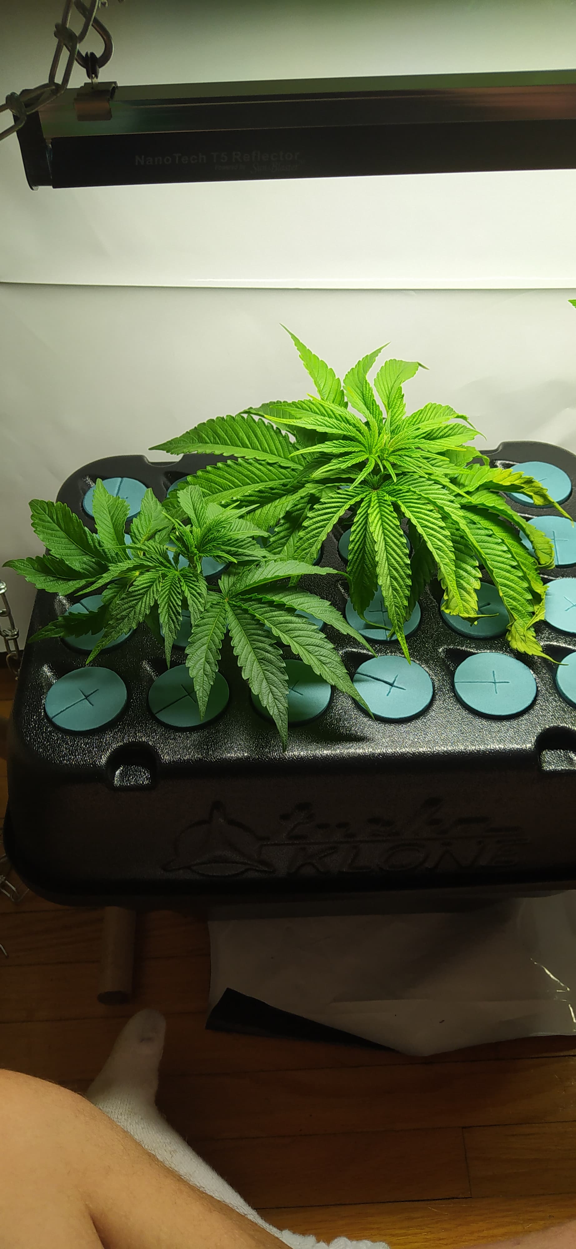 I put the Cement shoes clone into a 5 gal ebb and flow bucket a few days ago after she started needing daily water changes in the jar. She’s looking a bit rough but I think she will bounce back as she gets used to the new setup. The Hindsight seed by twenty20 mendocino is on day 5.