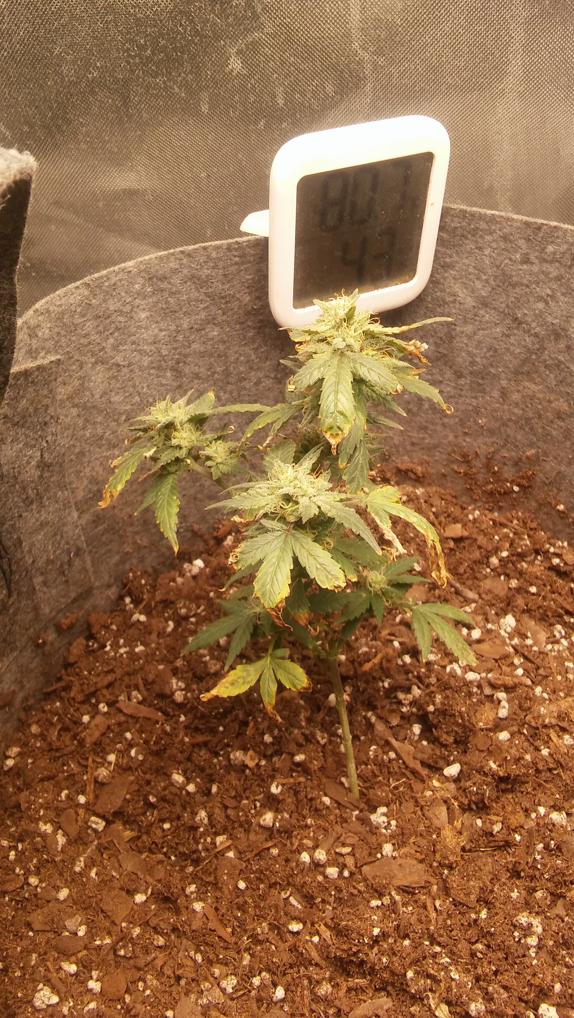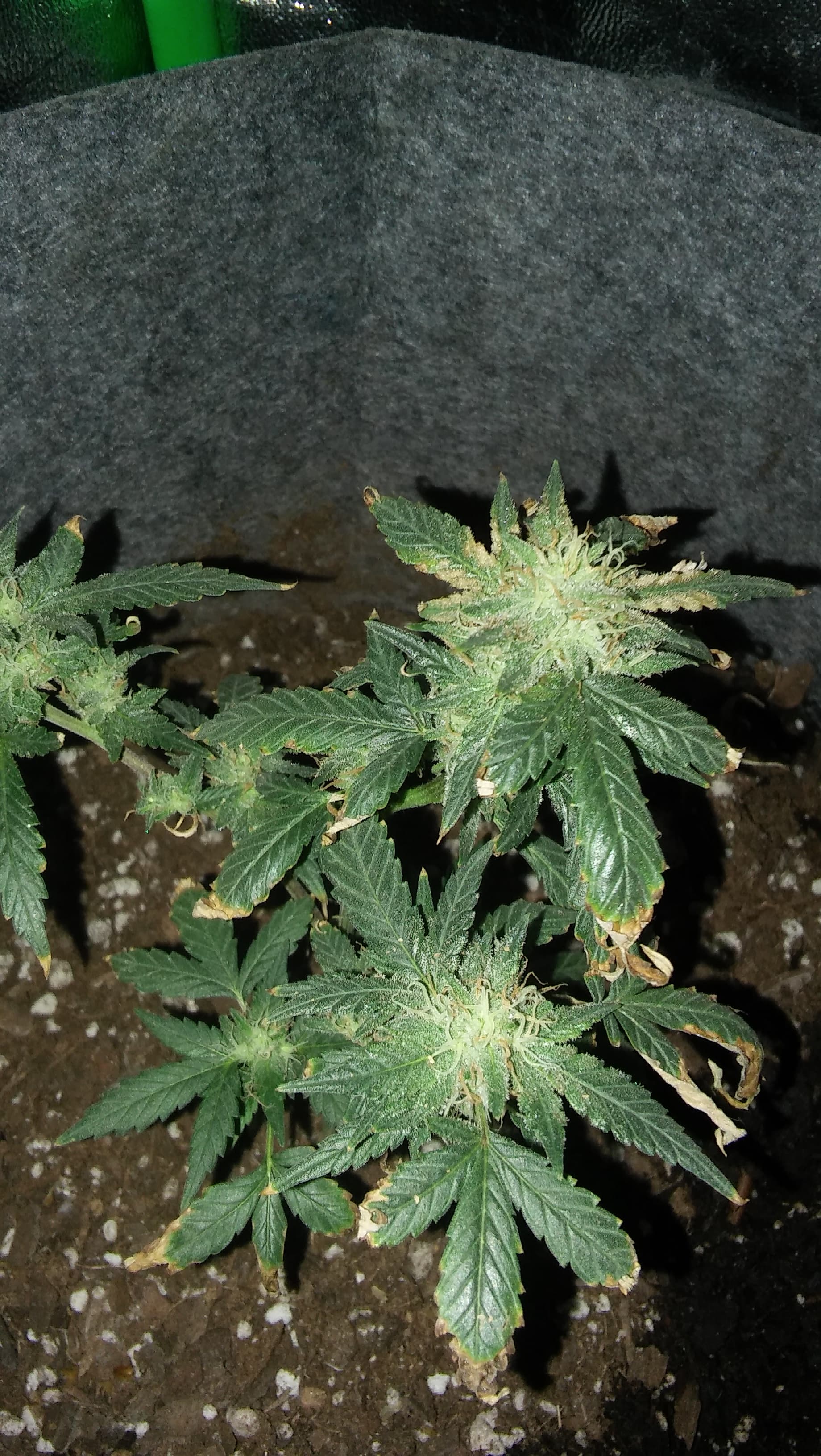 Ppl keep recommending smaller pots but I can’t see what size your using, if your growing autos I don’t see any problem having em in a 3-5 gallon pot, that’s ideal and best to have em directly in em as soon as they sprout, autos don’t handle transplanting well at all and I’ve grown em in up to 10 gallon with only Bruce banner #3 ever filling it, wouldn’t suggest more than 3-5 gallon though. Another concern I read is your reusing your soil and throwing trimmings in with it, u got the concept right but missed the approach, those trimmings need to compost first, best way would be getting red wiggler worms and feedin the trimmings to them first so they can break em down and actually be soluable to the plants then feeding the casting to the plants top dressing or mixing in your soil potting things